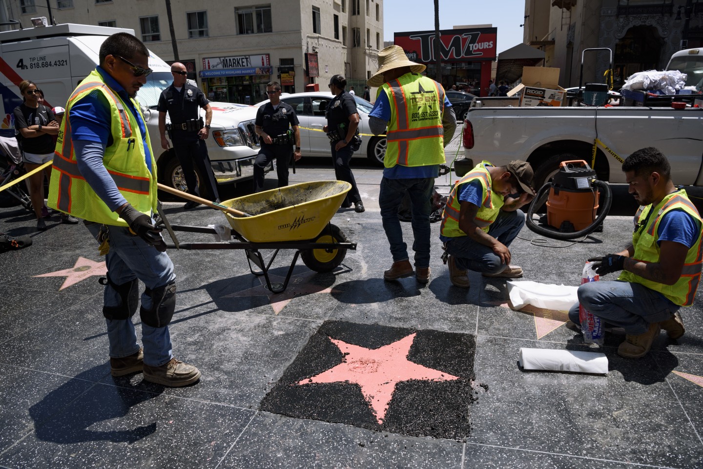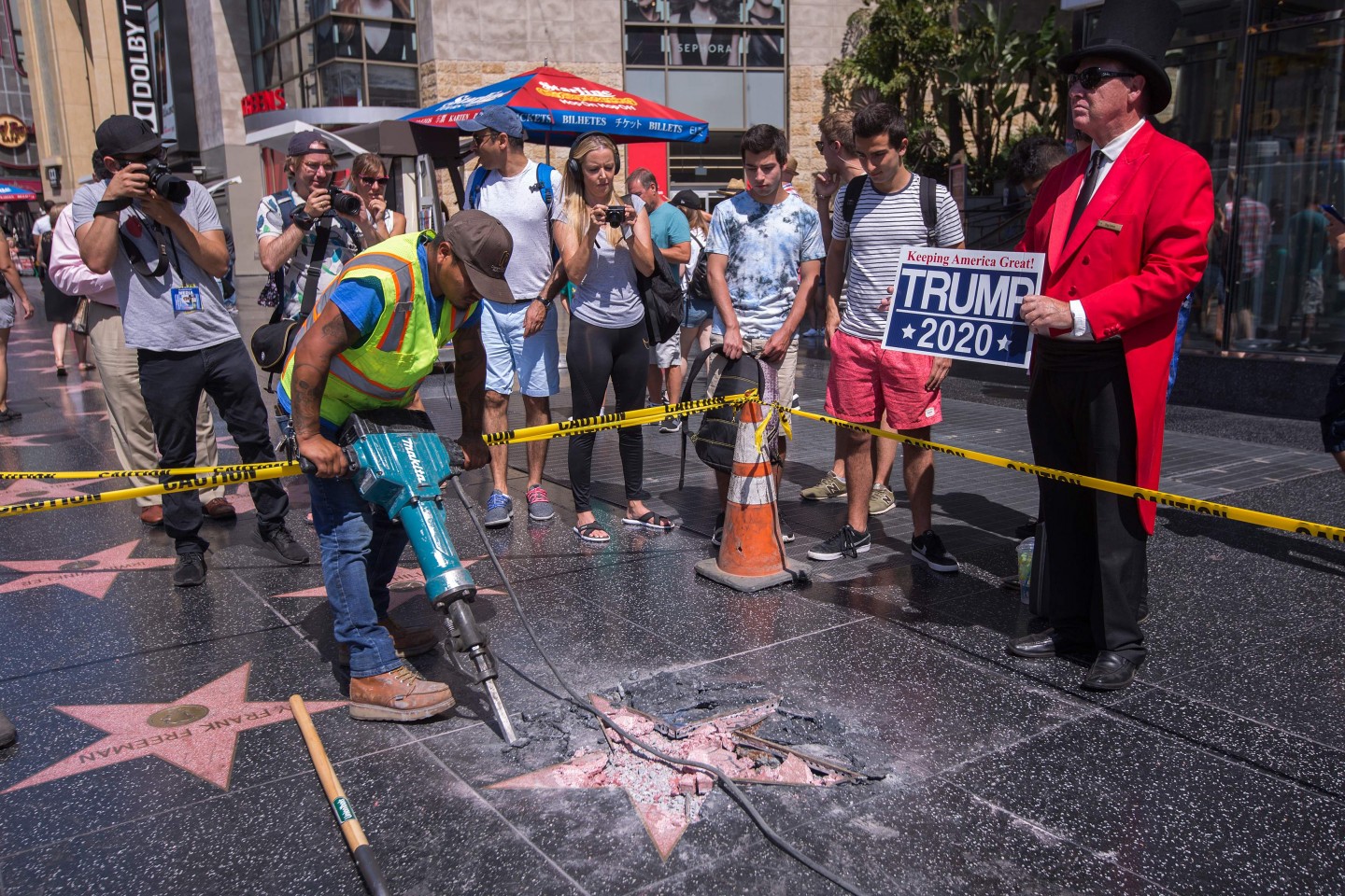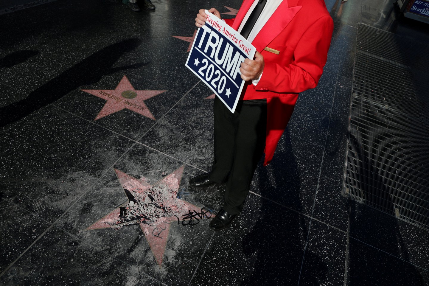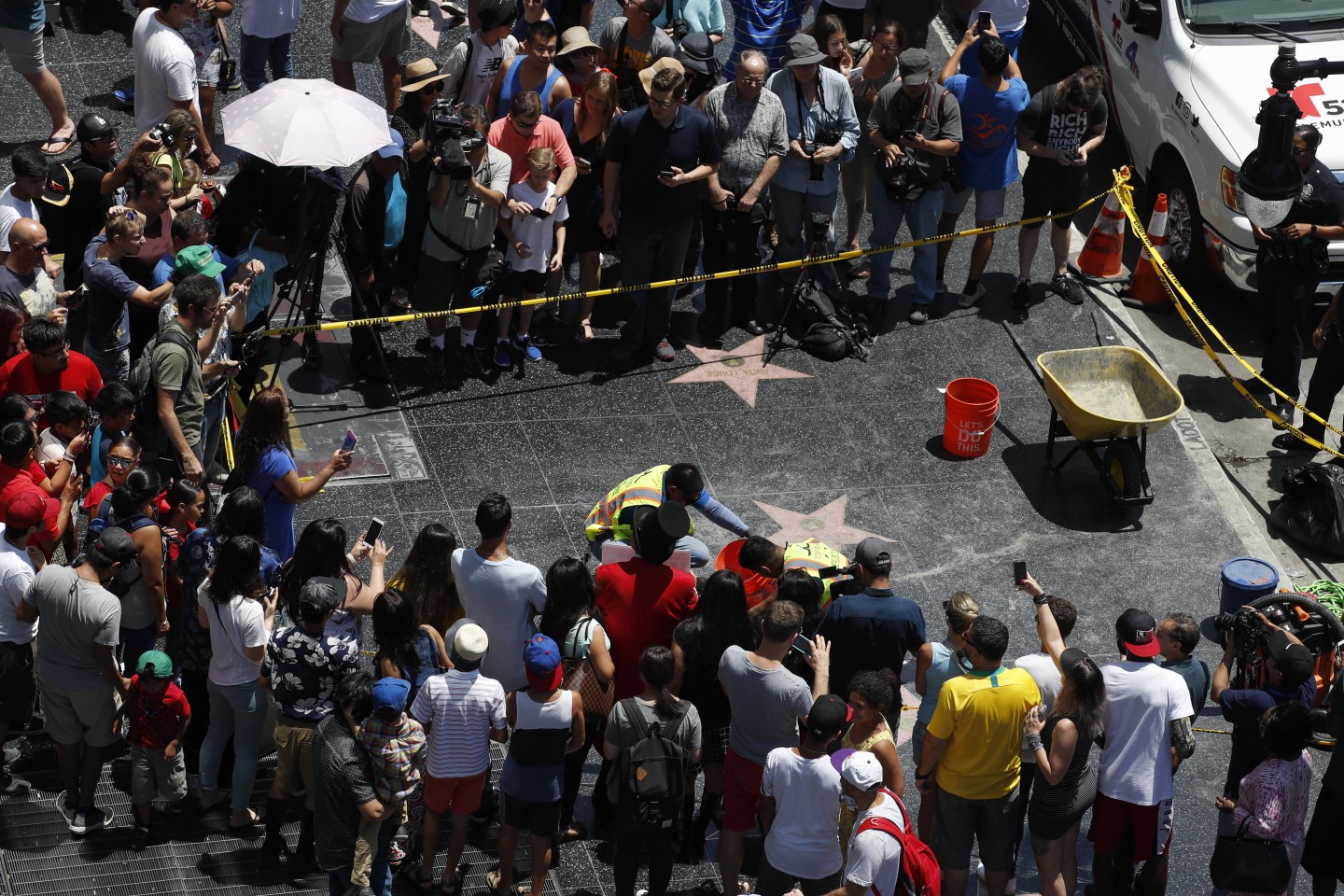Otrdien vandāļu uzbrukumu piedzīvojusi ASV prezidentam Donaldam Trampam veltītā zvaigzne Holivudas slavas alejā, Losandželosā. Strādnieki parūpējās, lai Trampam būtu atkal jauna zvaigzne!