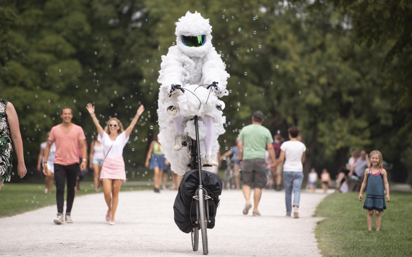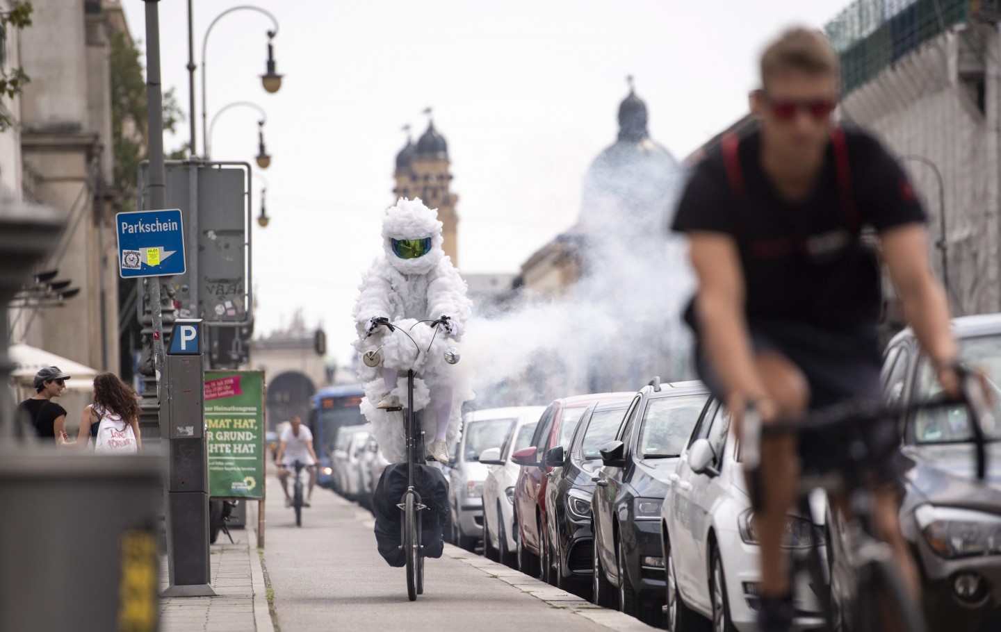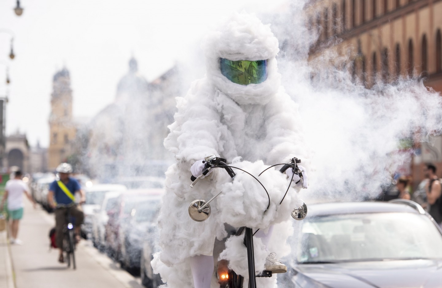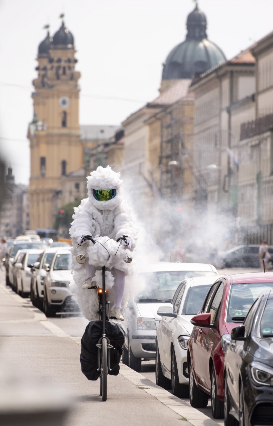 Vācijas pilsētā Minhenē ielās uz velosipēda devies mākslinieks Martins Nothelfers, kurš iejuties ''mākoņu riteņbraucēja'' lomā. Lai parādītu, kur pilsētā gaiss tīrs un kur nav, viņa velosipēds izpūta ziepju burbuļus, kad tas nav piesārņots, vai arī dūmus, kad ir.