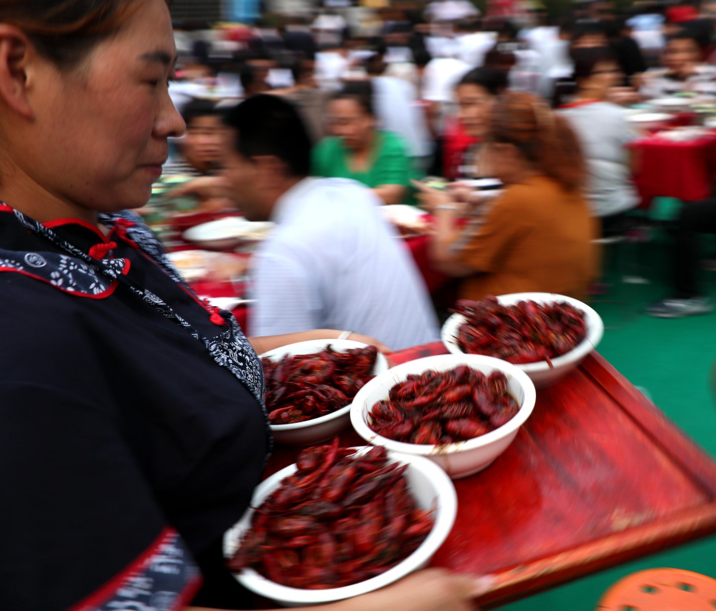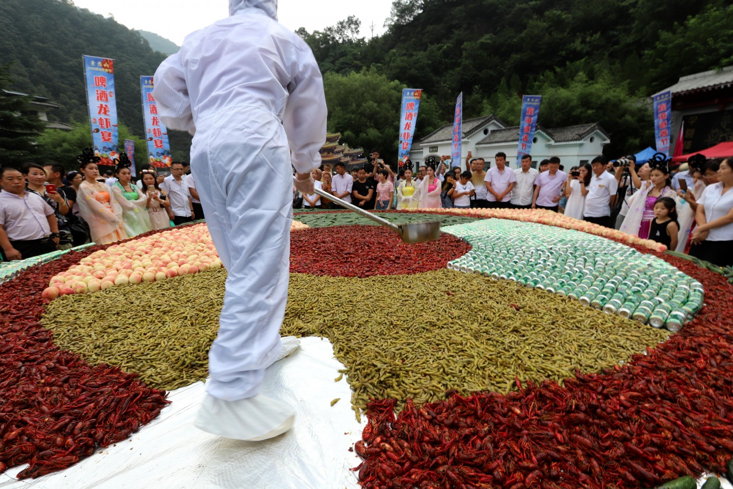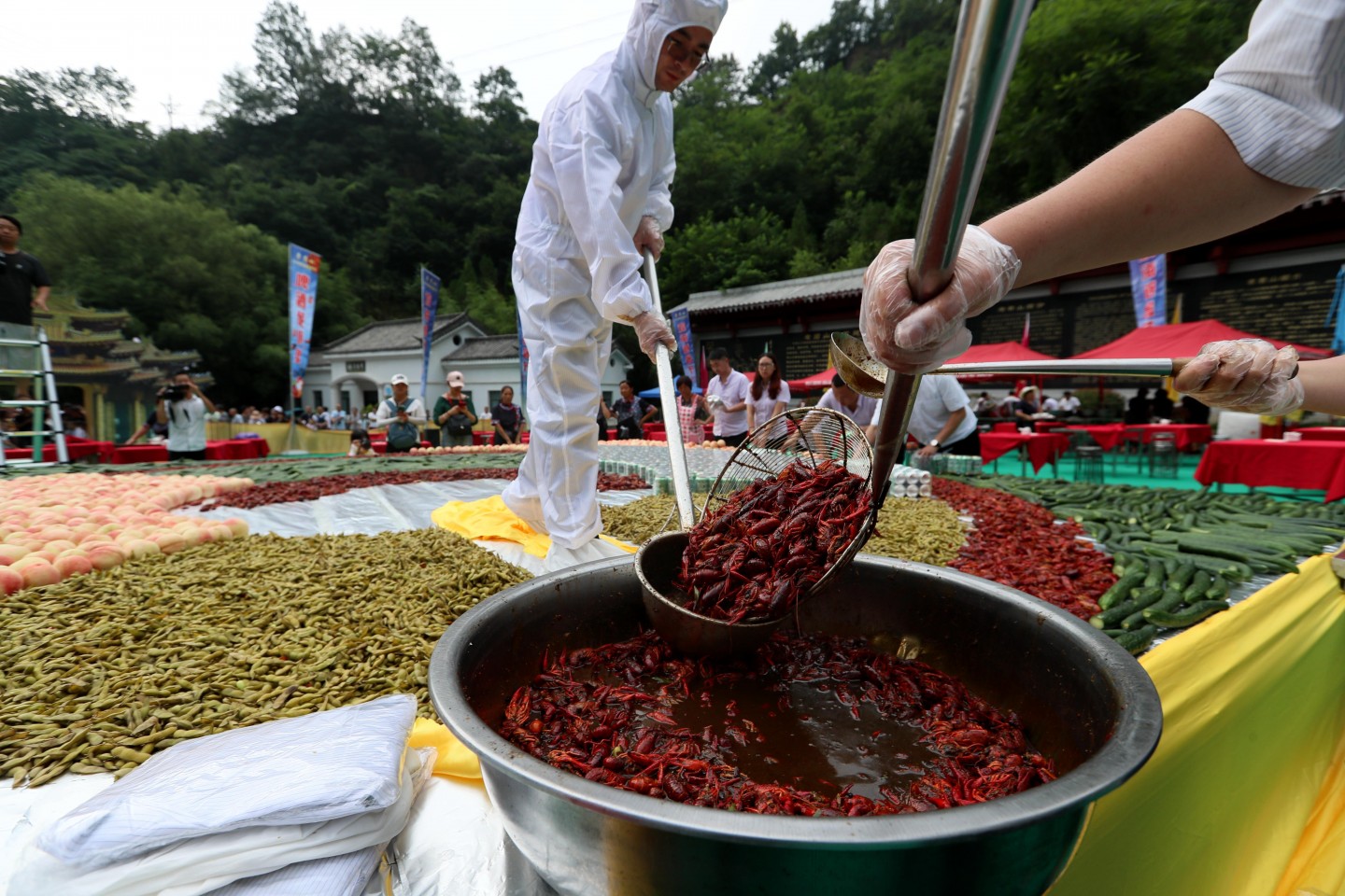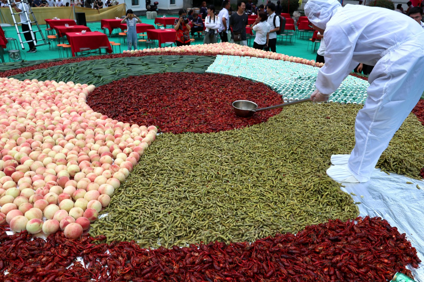 Ķīnas pilsētā Lujangā, par godu vēžu mielastam, tapis divas tonnas liels ēdiens, kura tapšanā izmantoti vairāk nekā 1000kg vēžu, augļi un alus.