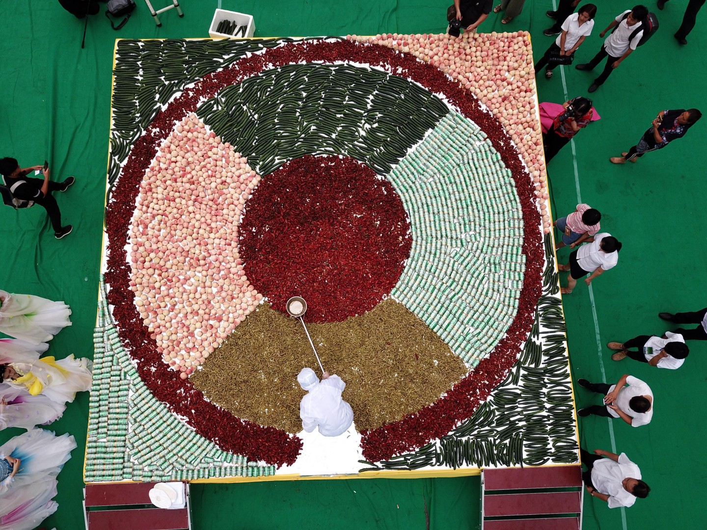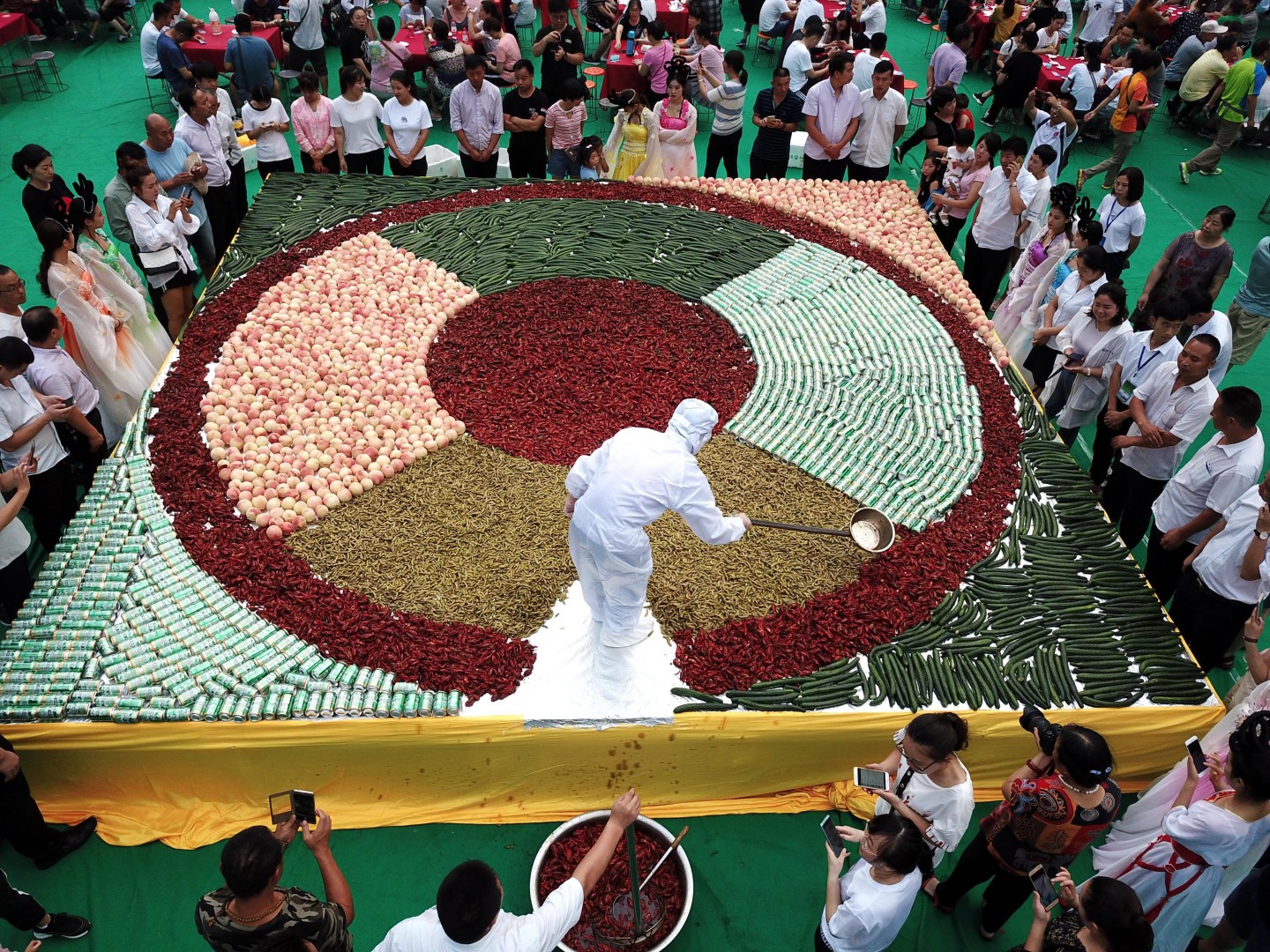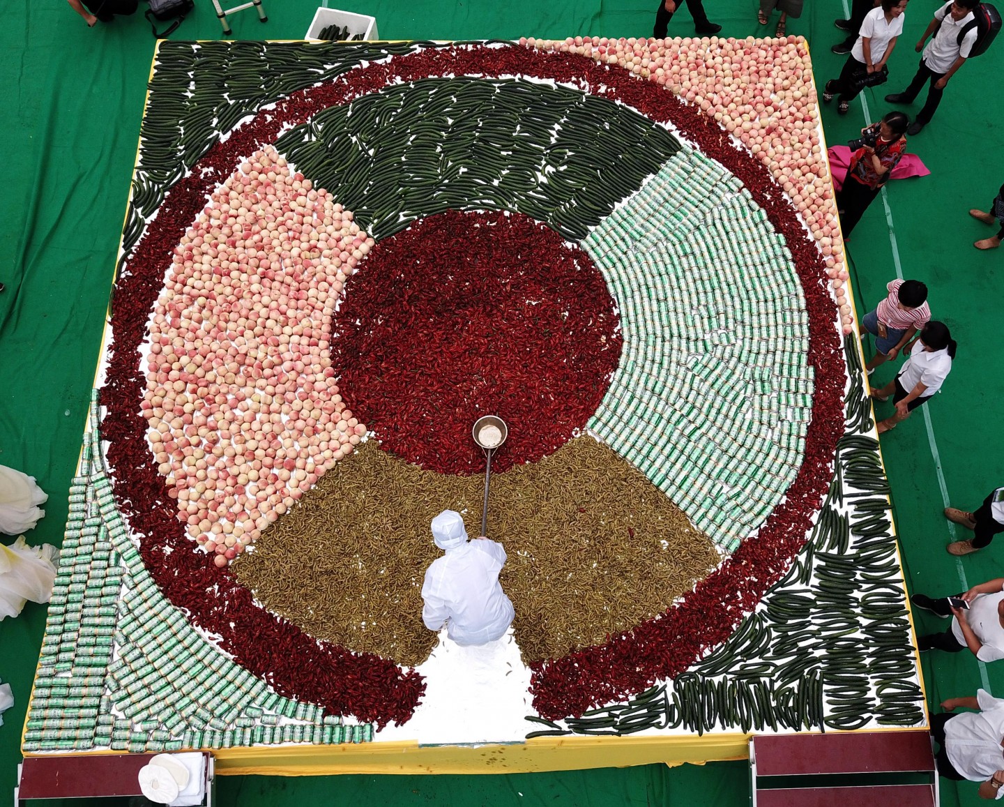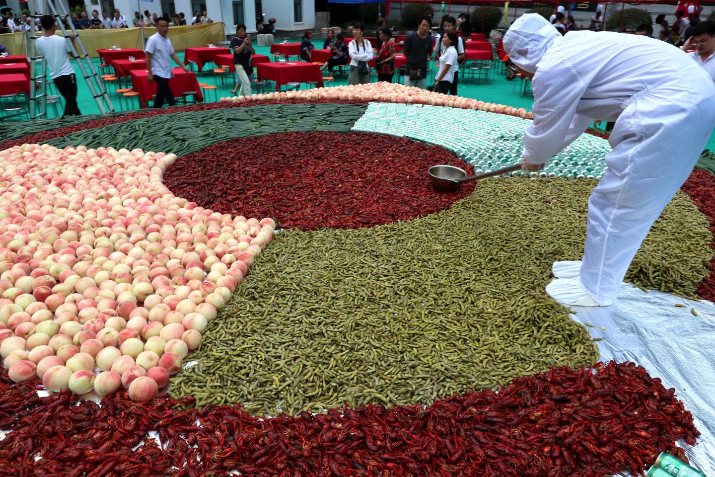 Ķīnas pilsētā Lujangā, par godu vēžu mielastam, tapis divas tonnas liels ēdiens, kura tapšanā izmantoti vairāk nekā 1000kg vēžu, augļi un alus.