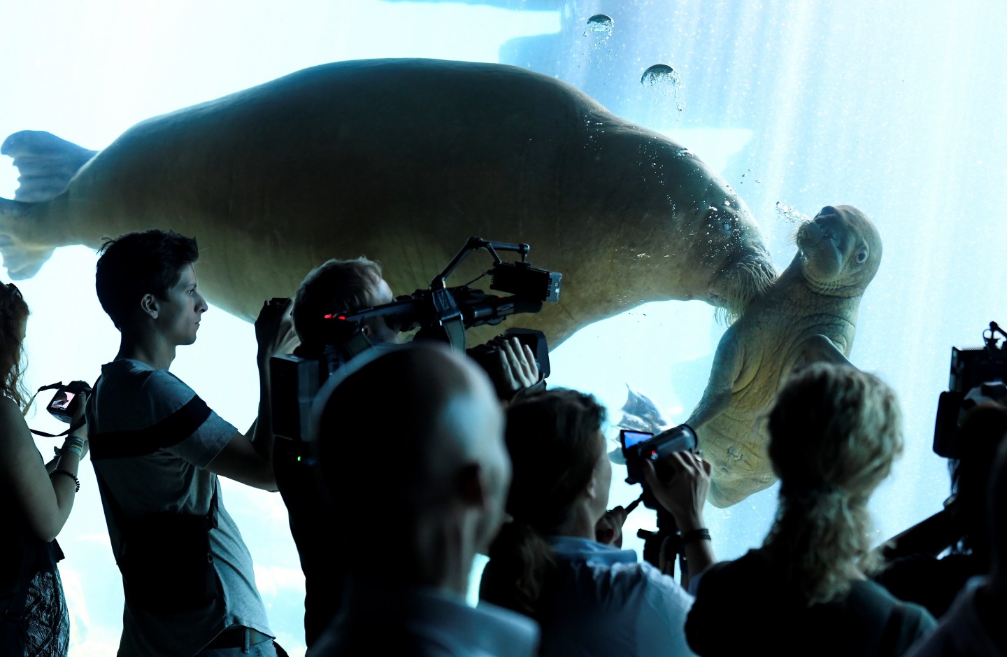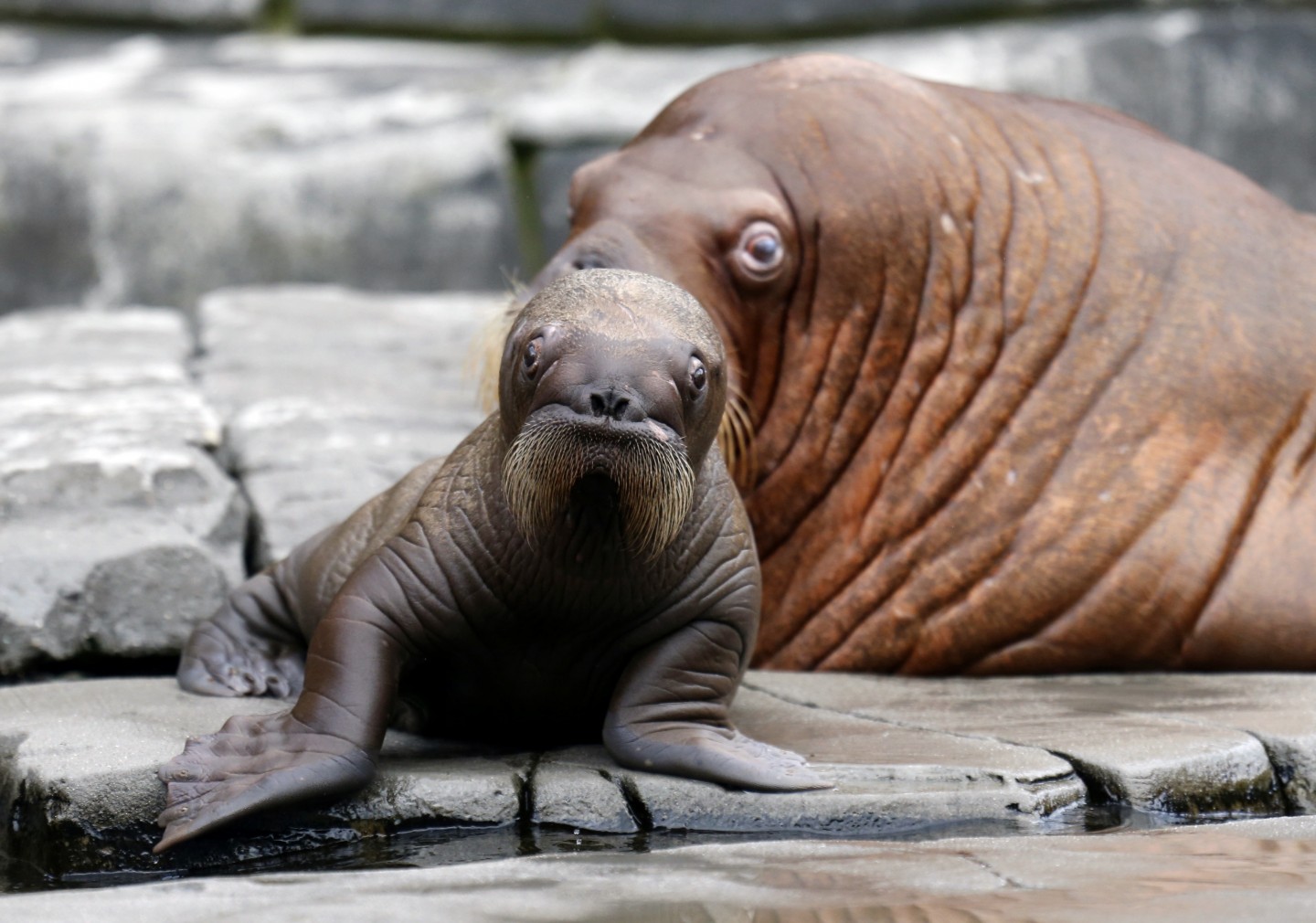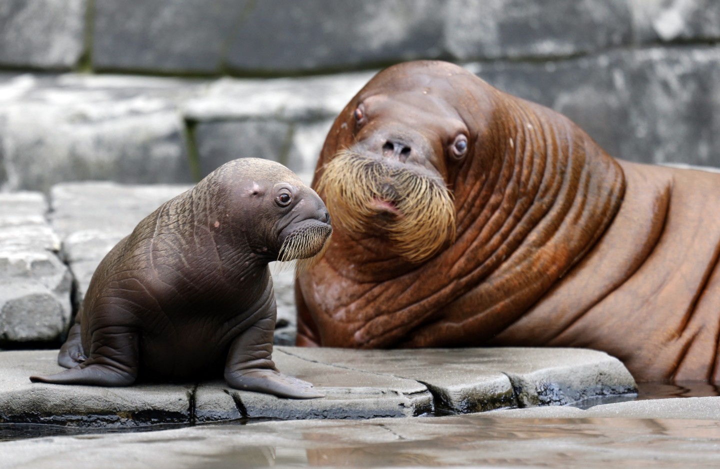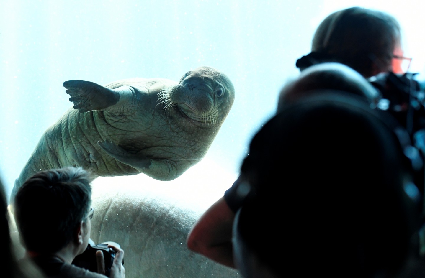 Vācijas pilsētas Hamburgas zooloģiskajā dārzā pirmo reizi apmeklētājiem atrādīts valzirgs Dina un viņas jaundzimušais mazulis, kurš pasaulē nāca 17.jūnijā.
