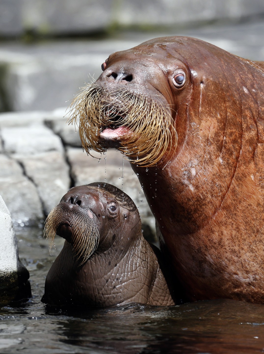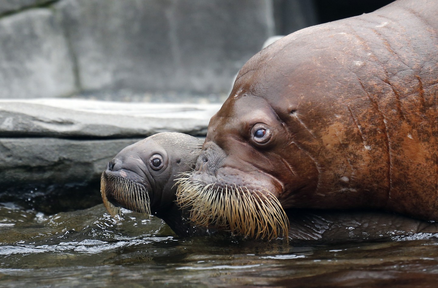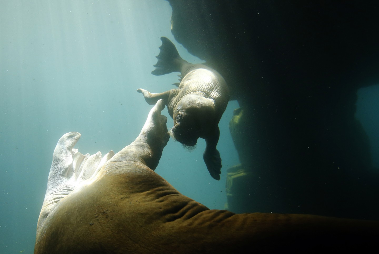 Vācijas pilsētas Hamburgas zooloģiskajā dārzā pirmo reizi apmeklētājiem atrādīts valzirgs Dina un viņas jaundzimušais mazulis, kurš pasaulē nāca 17.jūnijā.