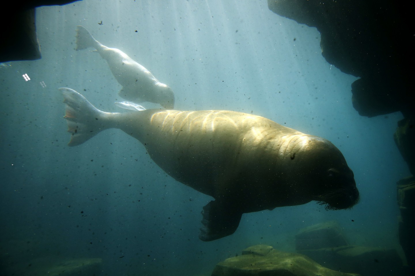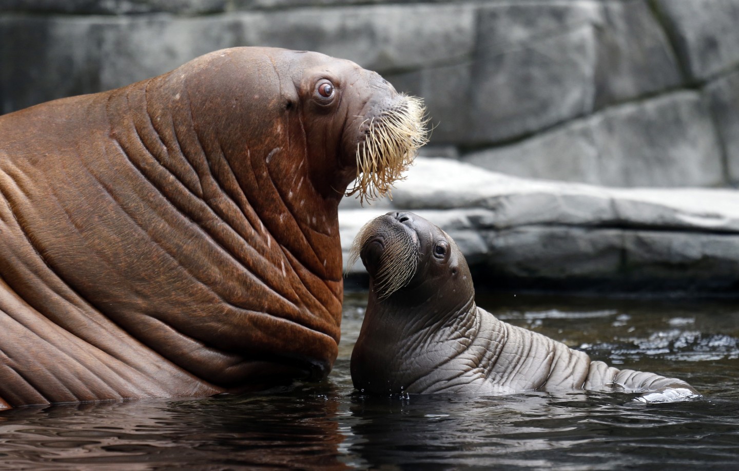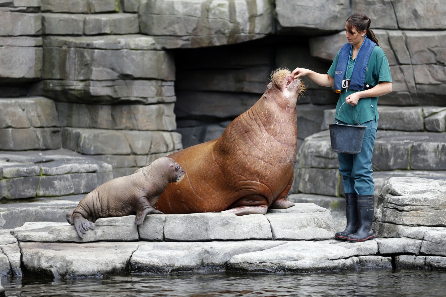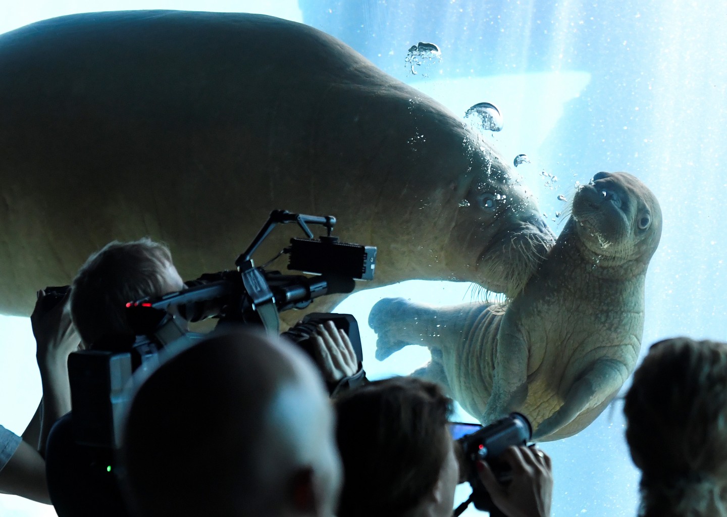 Vācijas pilsētas Hamburgas zooloģiskajā dārzā pirmo reizi apmeklētājiem atrādīts valzirgs Dina un viņas jaundzimušais mazulis, kurš pasaulē nāca 17.jūnijā.