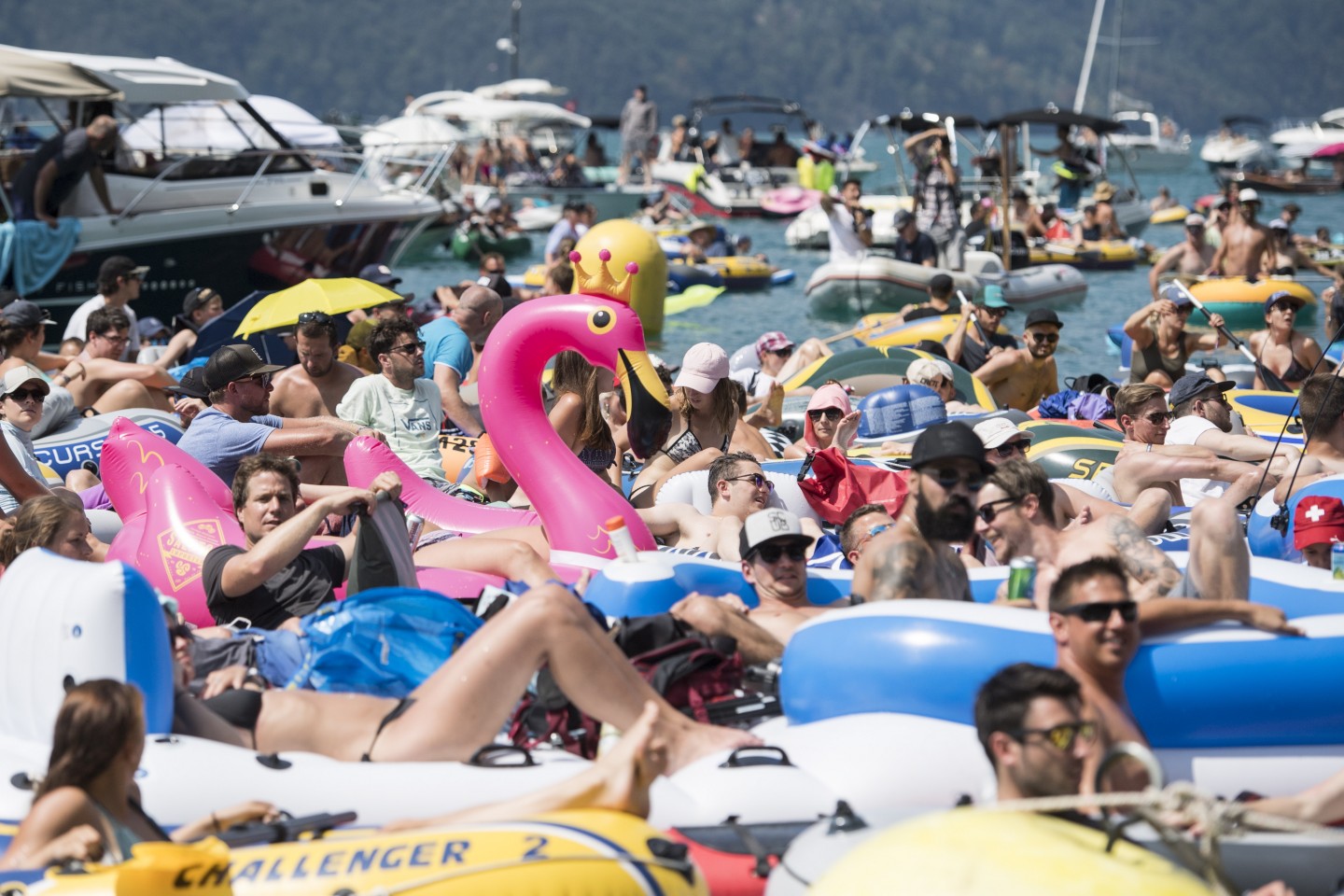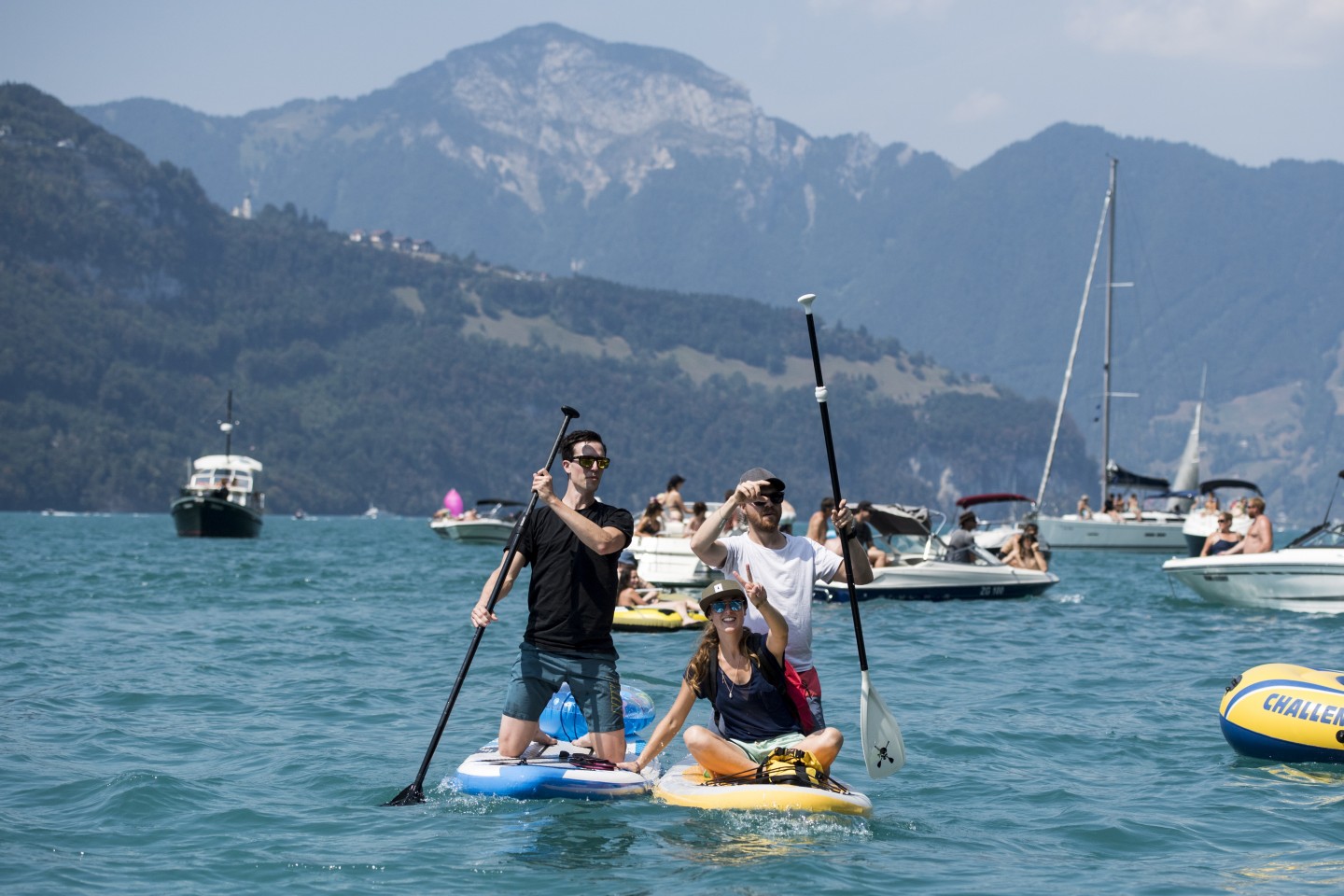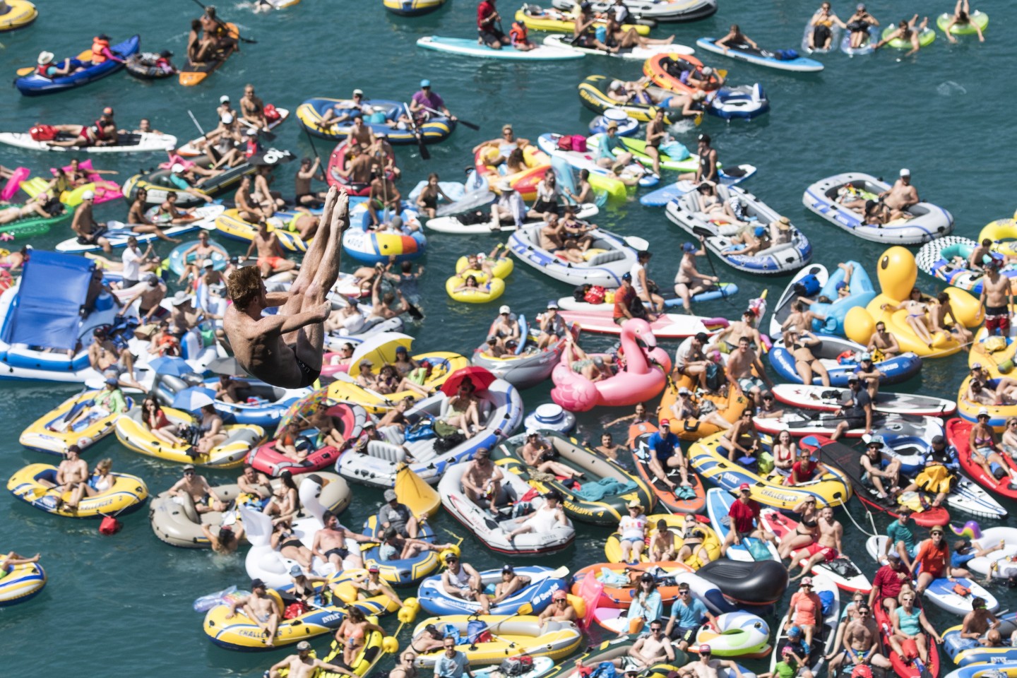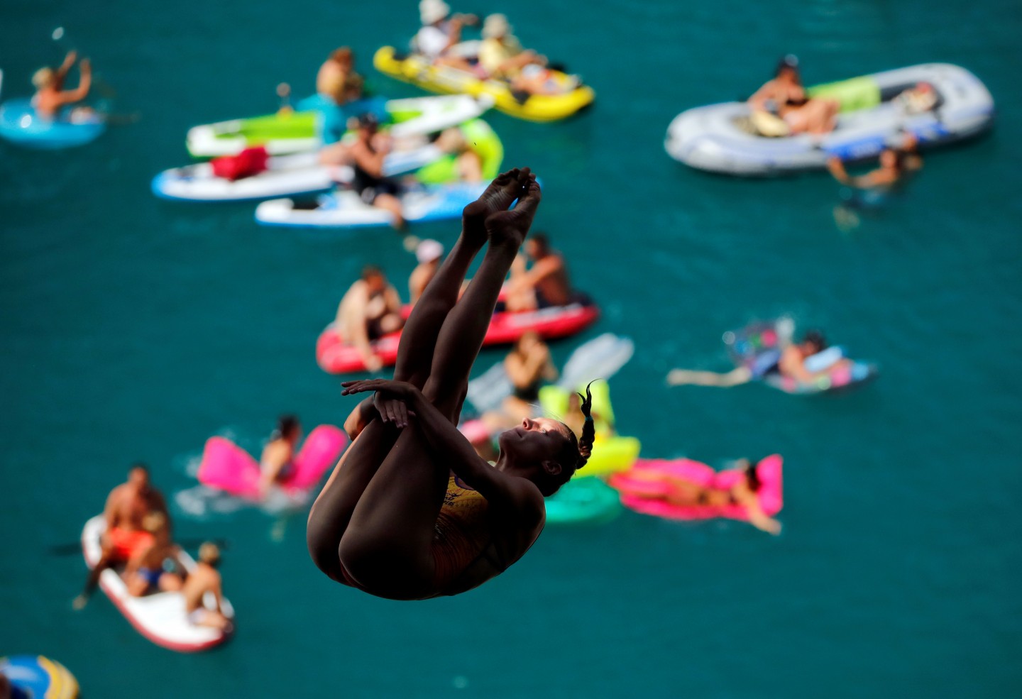 Red Bull Cliff Diving sacensību posmā Šveicē notikuši lēcieni no 27 metrus augstas platformas iekšā Lucernas ezerā.