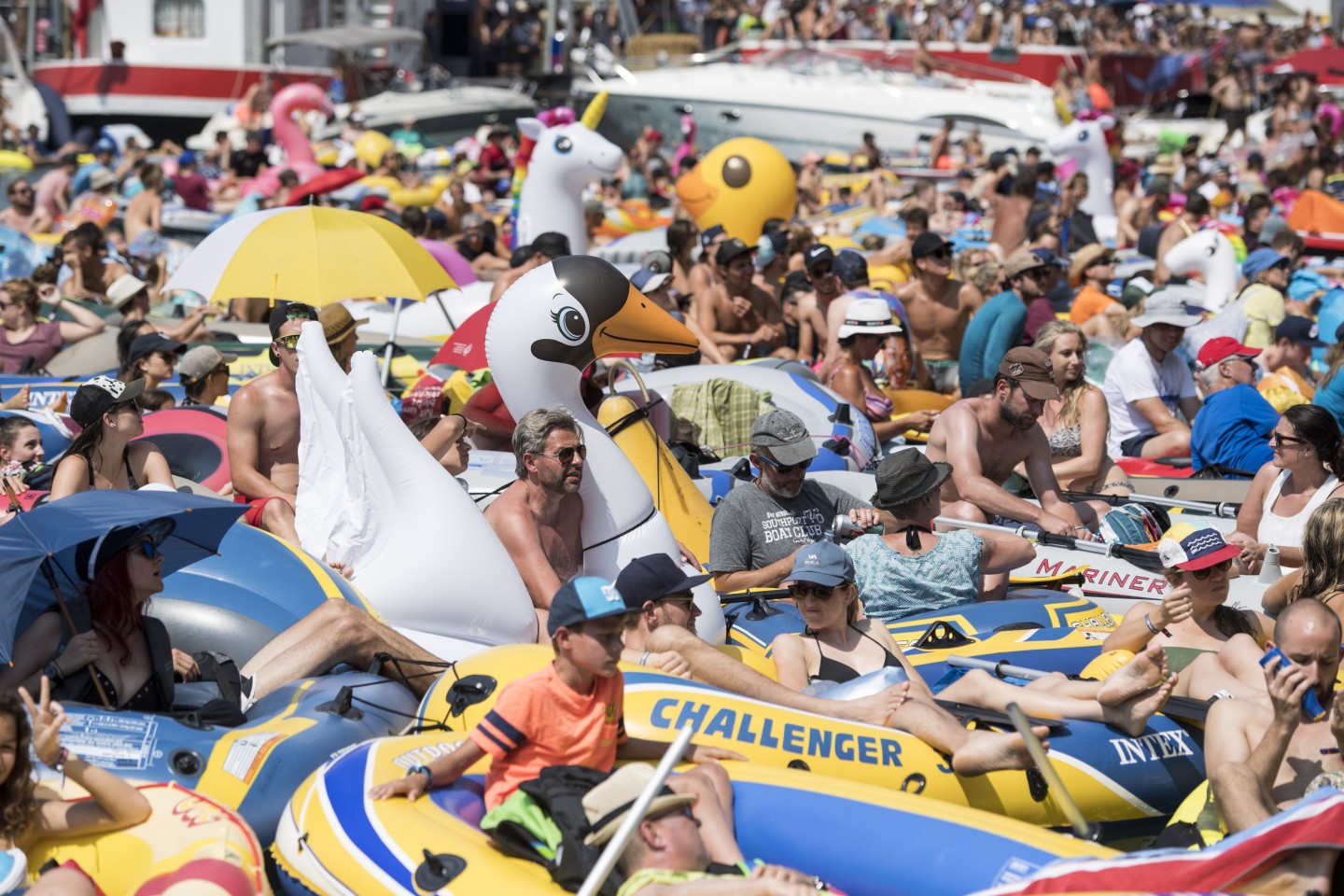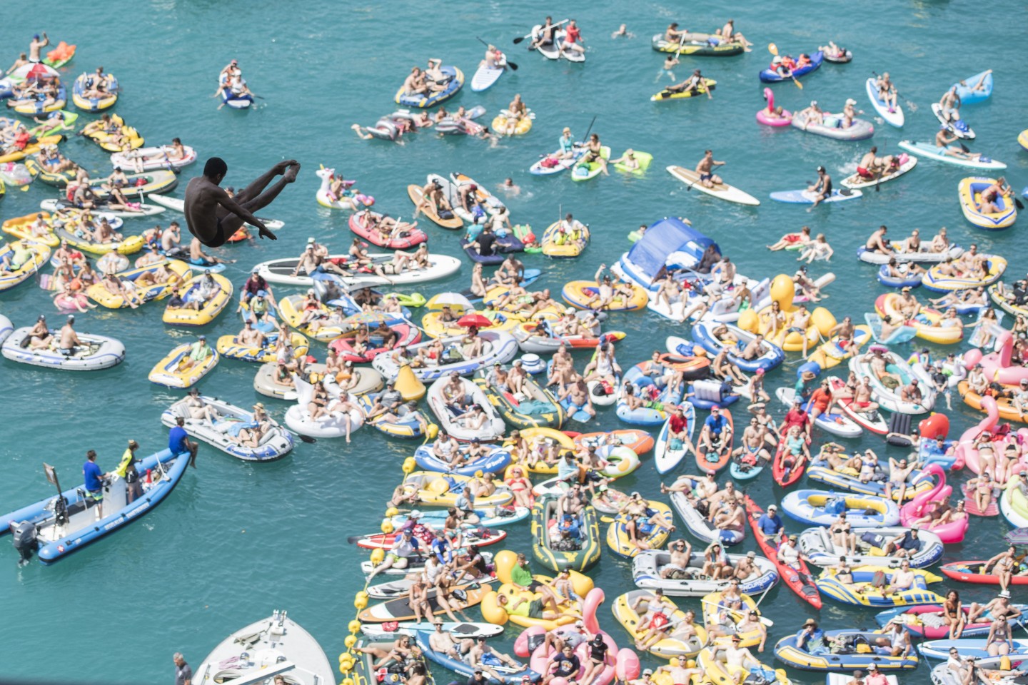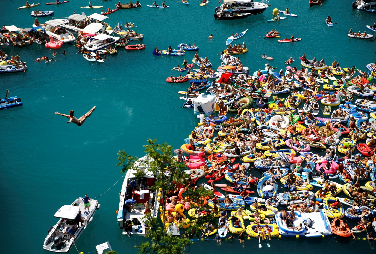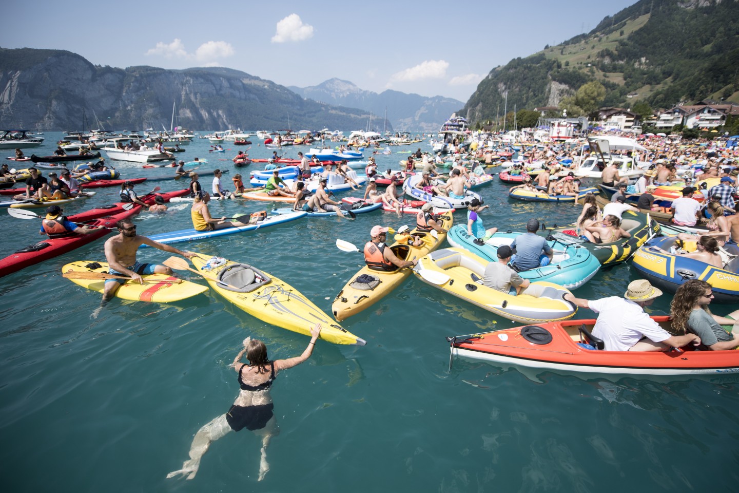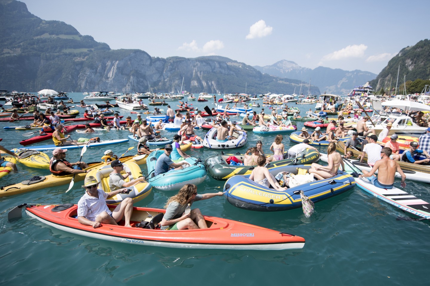 Red Bull Cliff Diving sacensību posmā Šveicē notikuši lēcieni no 27 metrus augstas platformas iekšā Lucernas ezerā.