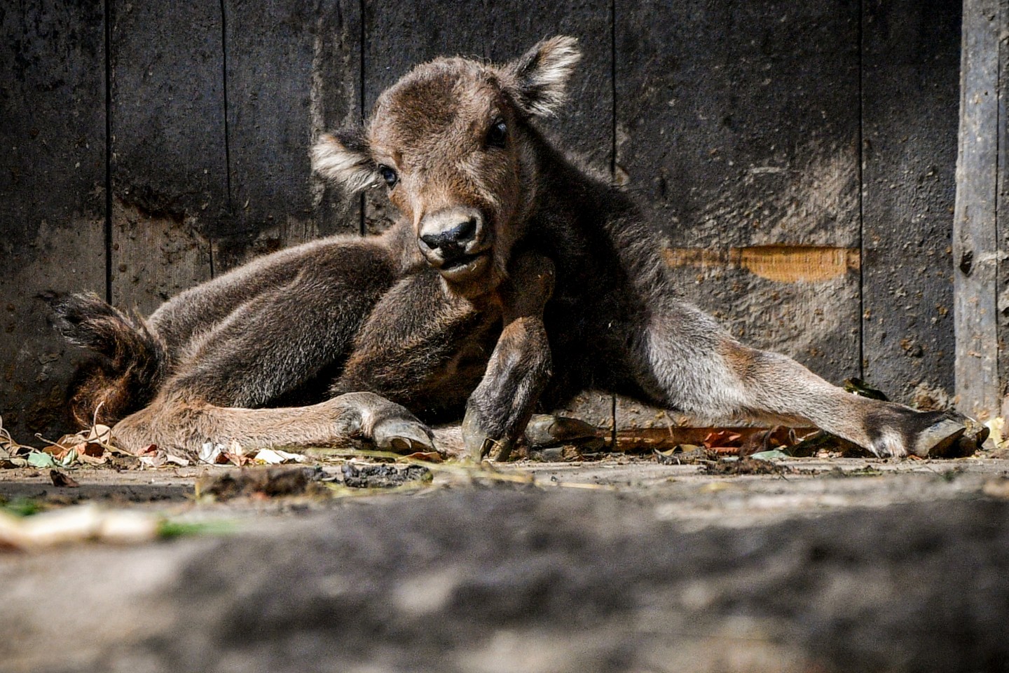 Vācijas pilsētas Dīsburgas zooloģiskajā dārzā Eiropas bizonu mātītei piedzimis mazulis, kurš nu izgājis ''sabiedrībā''.