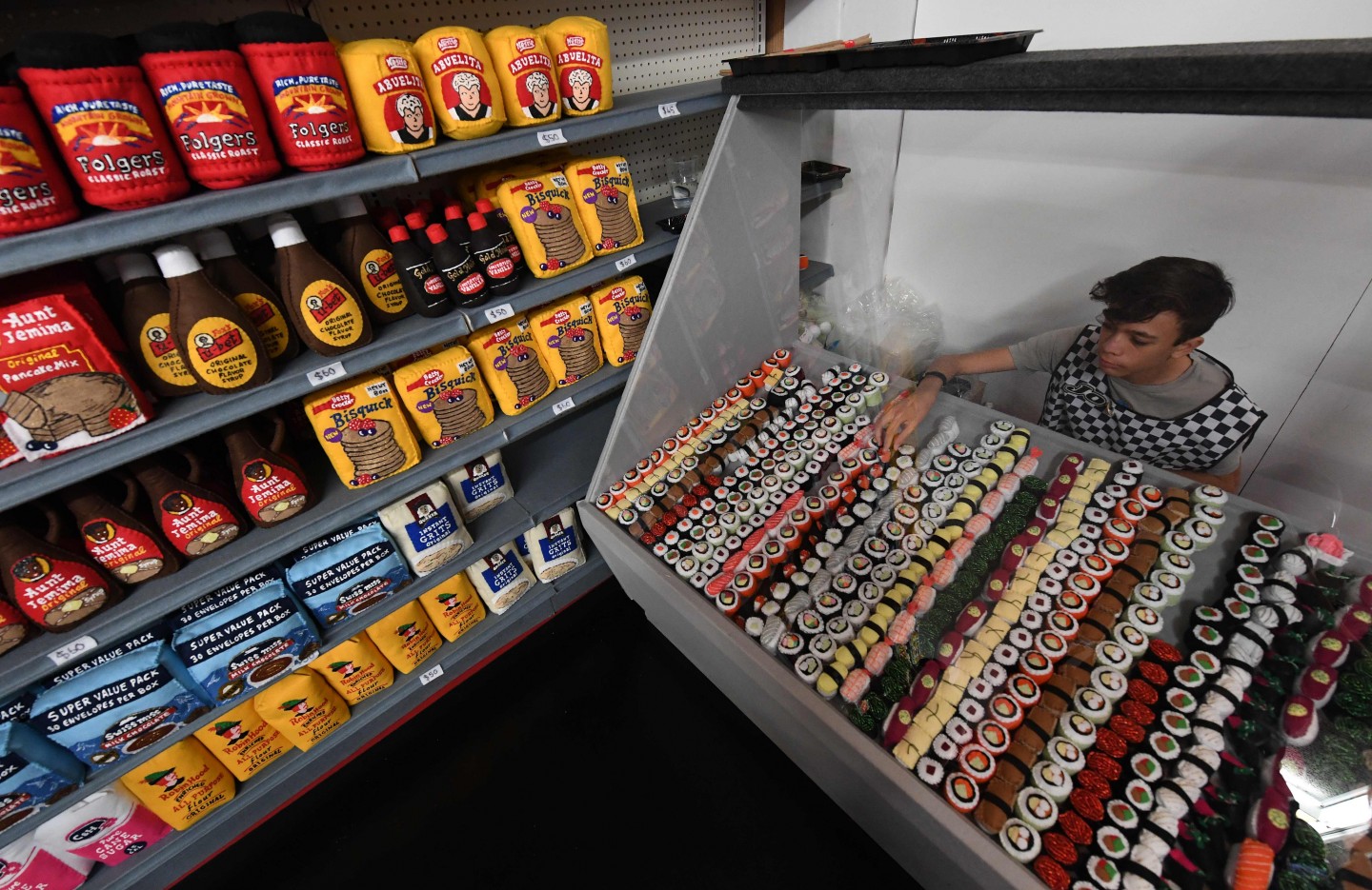 Britu māksliniece Lūsija Sperova no filca radījusi iespaidīgu mākslas darbu - dabiska izmēra lielveikalu, kurā katra sīkākā detaļa tapusi no minētā materiāla. Tas apskatāms Losandželosā.