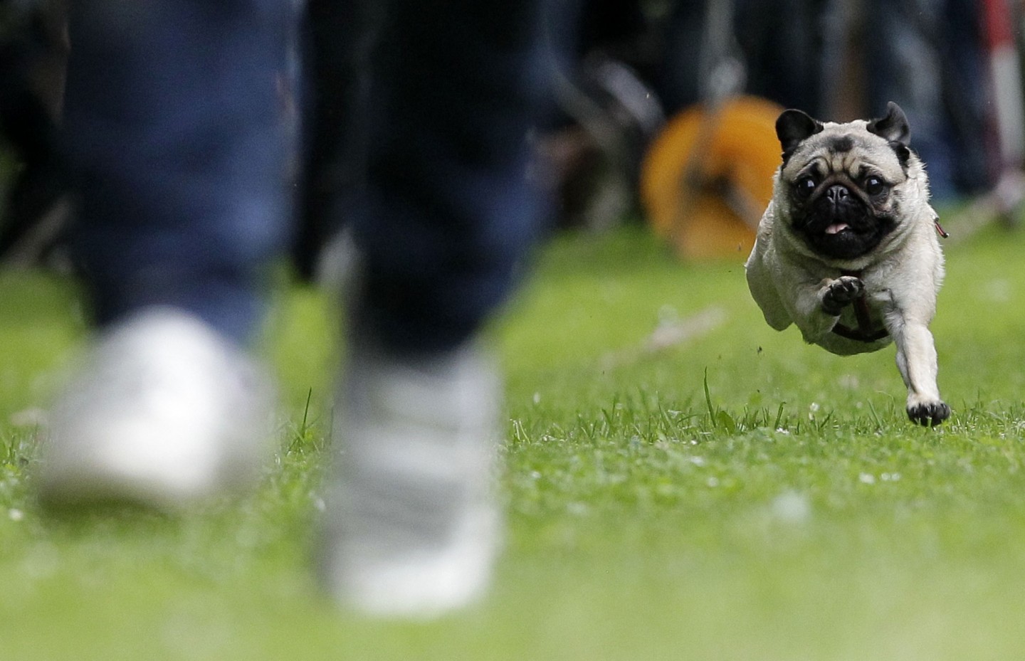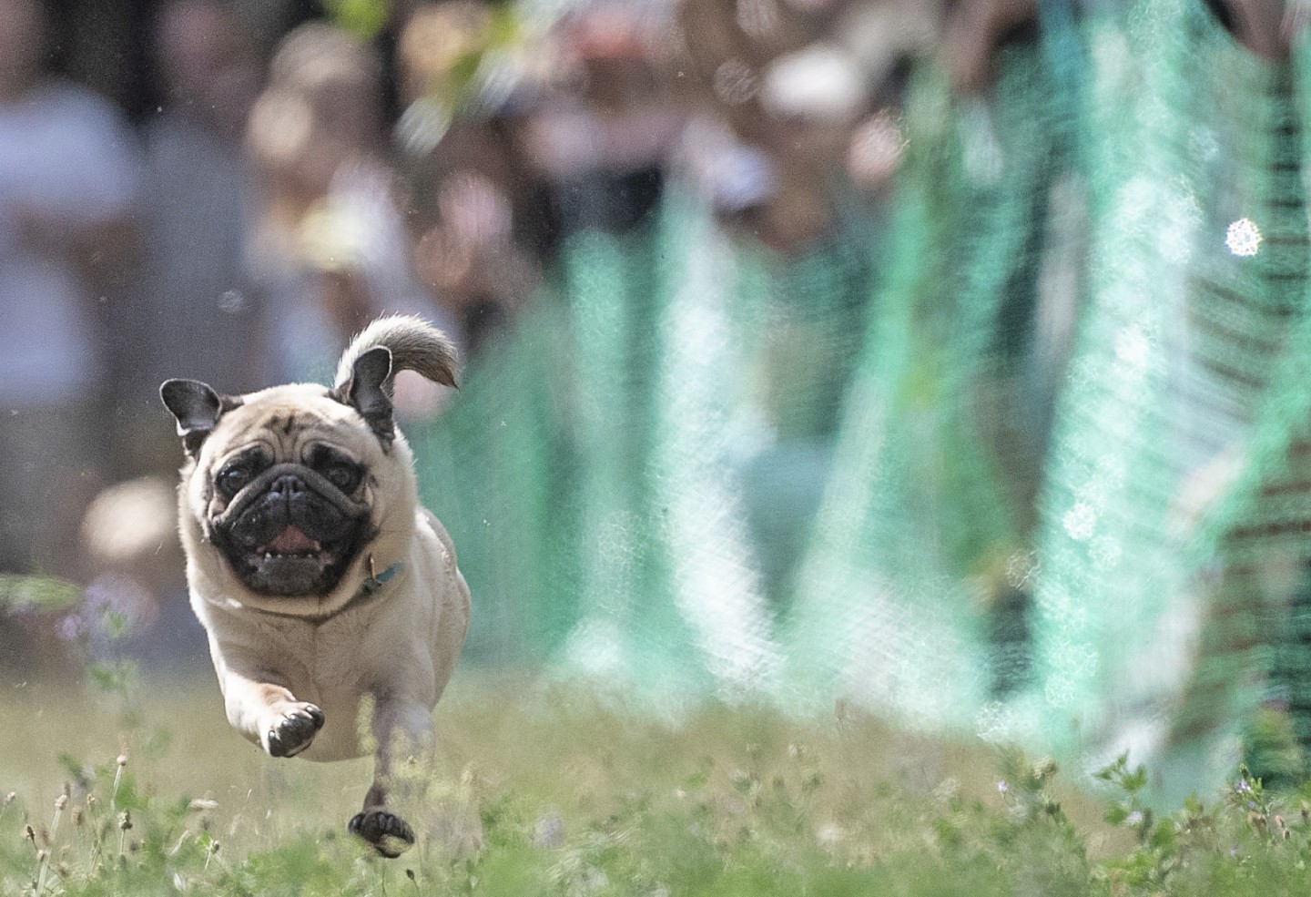 Jau devīto reizi Berlīnē norisinājusies Starptautiskā mopšu tikšanās, kuras ietvaros suņi sacenšas skriešanās ātrumā un citās aktivitātēs.