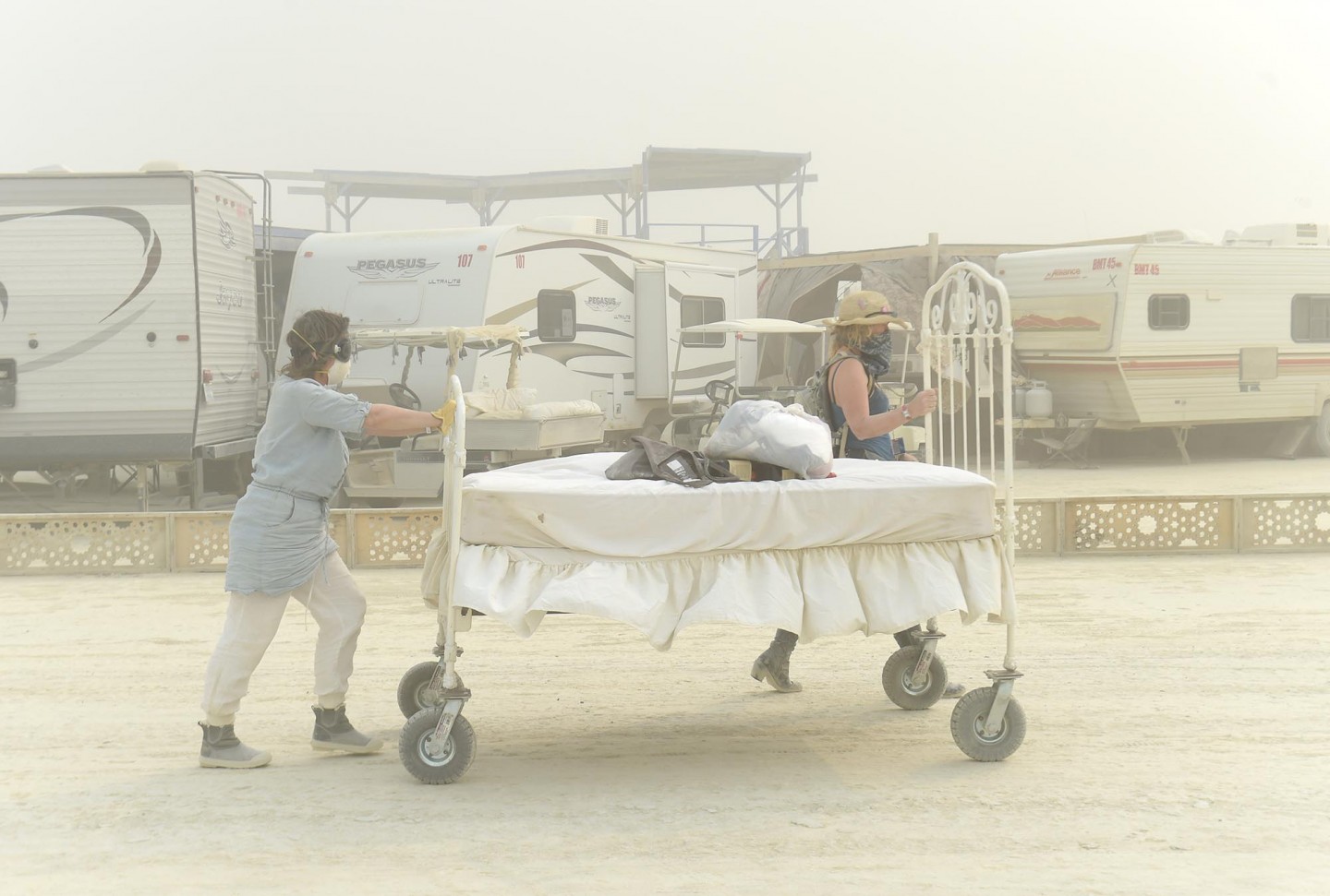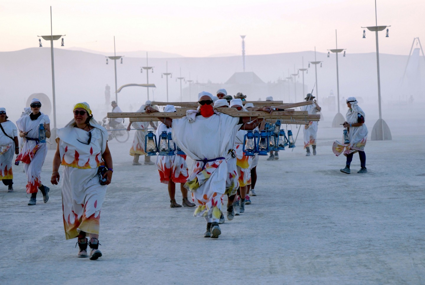 Uzdzīvotāji jau ieradušies Nevadas štata tuksnesī, kur aizvadītas trīs no deviņām ekscentriskā festivāla ''Burning Man'' dienām.