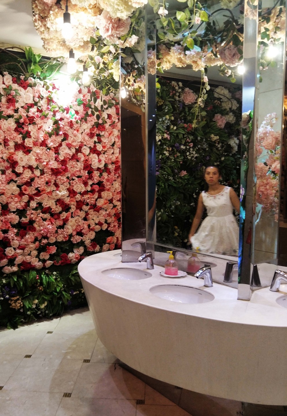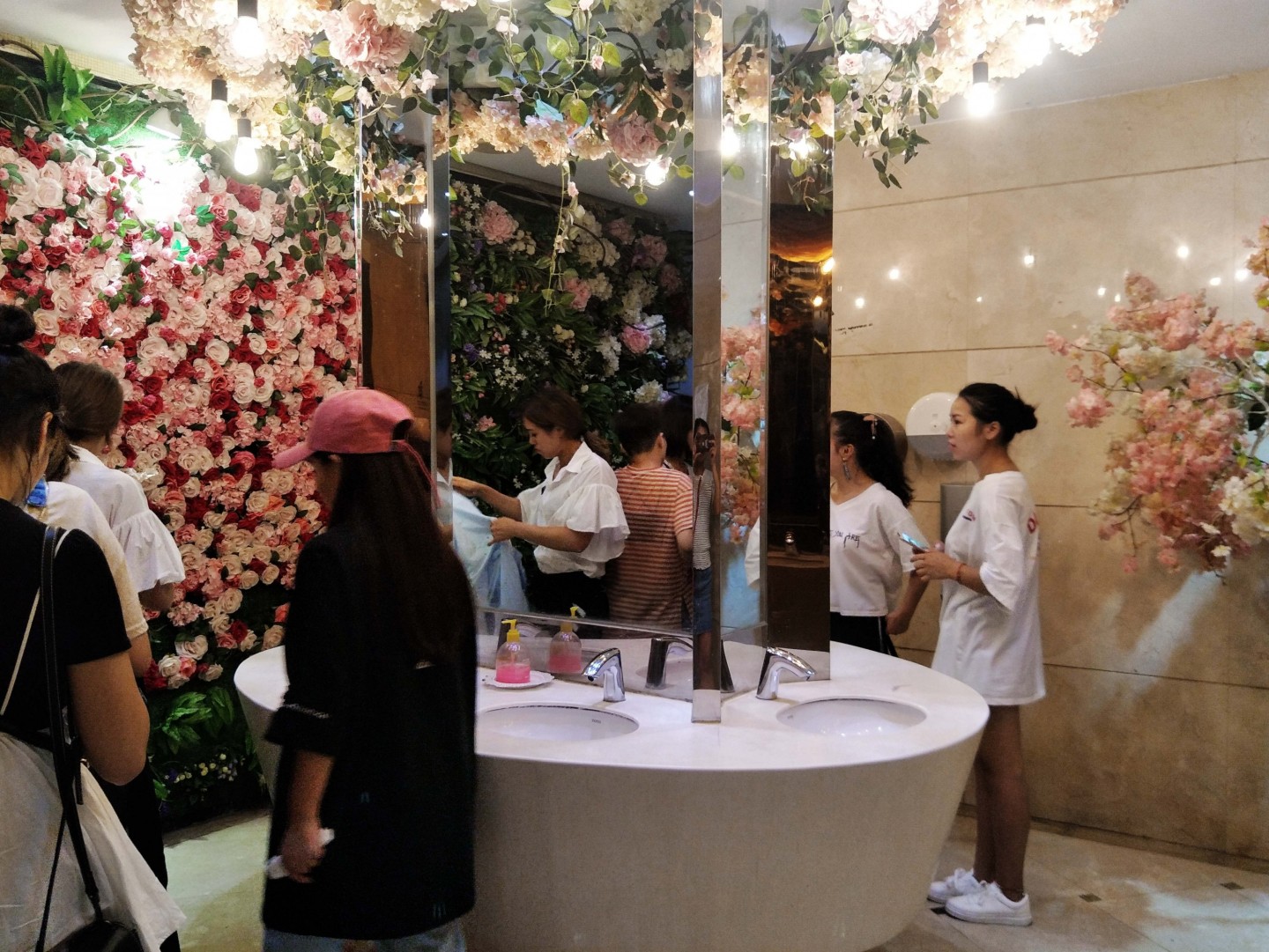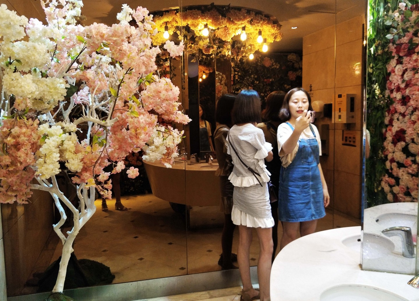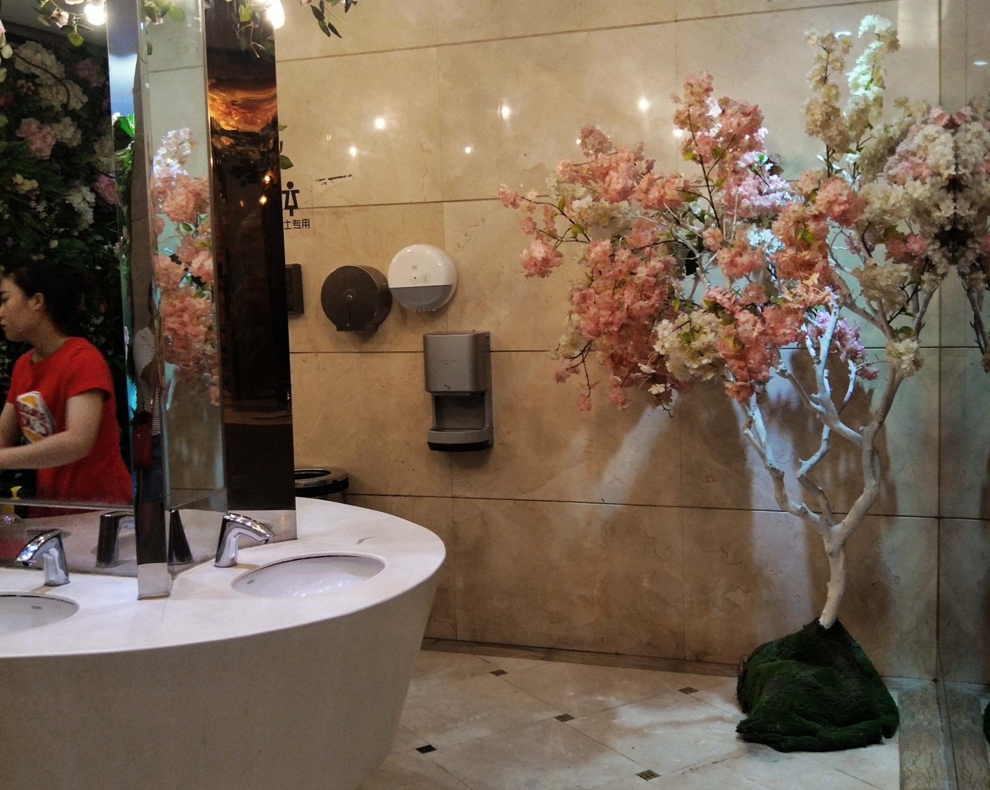 Kādā Ķīnas pilsētā sieviešu sabiedriskā tualete izrotāta ar krāšņiem ziediem.