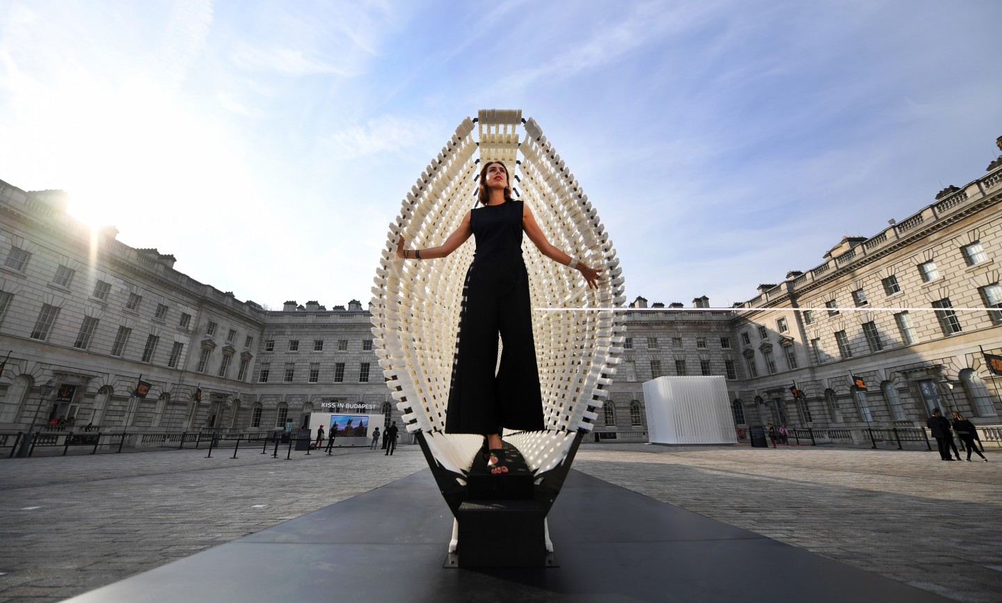 Grieķu māksliniece Nasija Iglesisa izstādījusi savu instalāciju ''Nepakļaušanās'' Lielbritānijas galvaspilsētā.