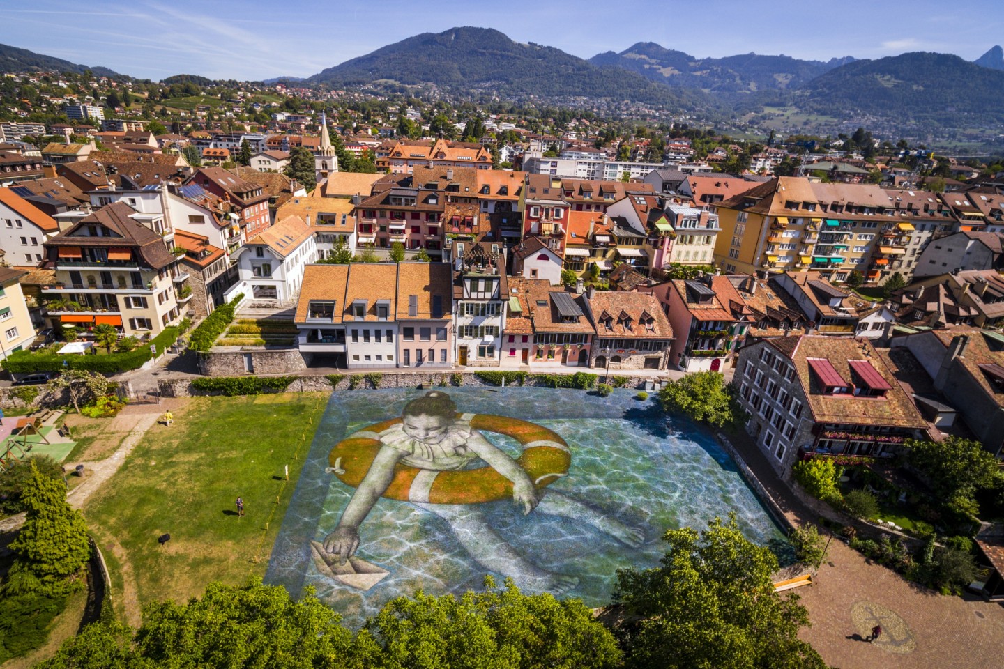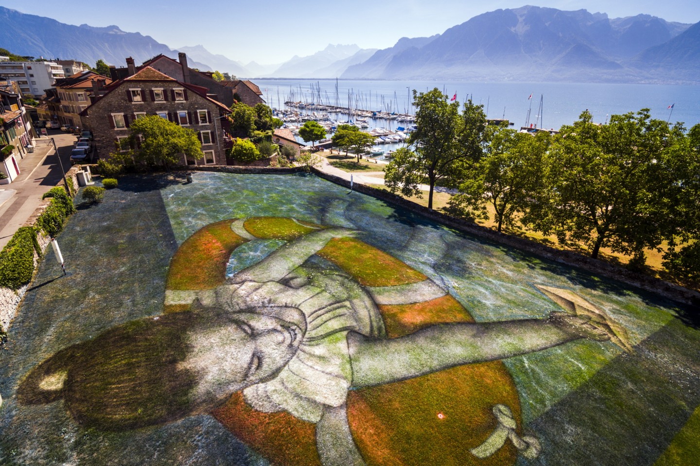 Franču mākslinieks Saipe Šveicē realizējis neparastu projektu- 2000 kvadrātmetru lielā teritorijā radīts milzīgs mākslas darbs.