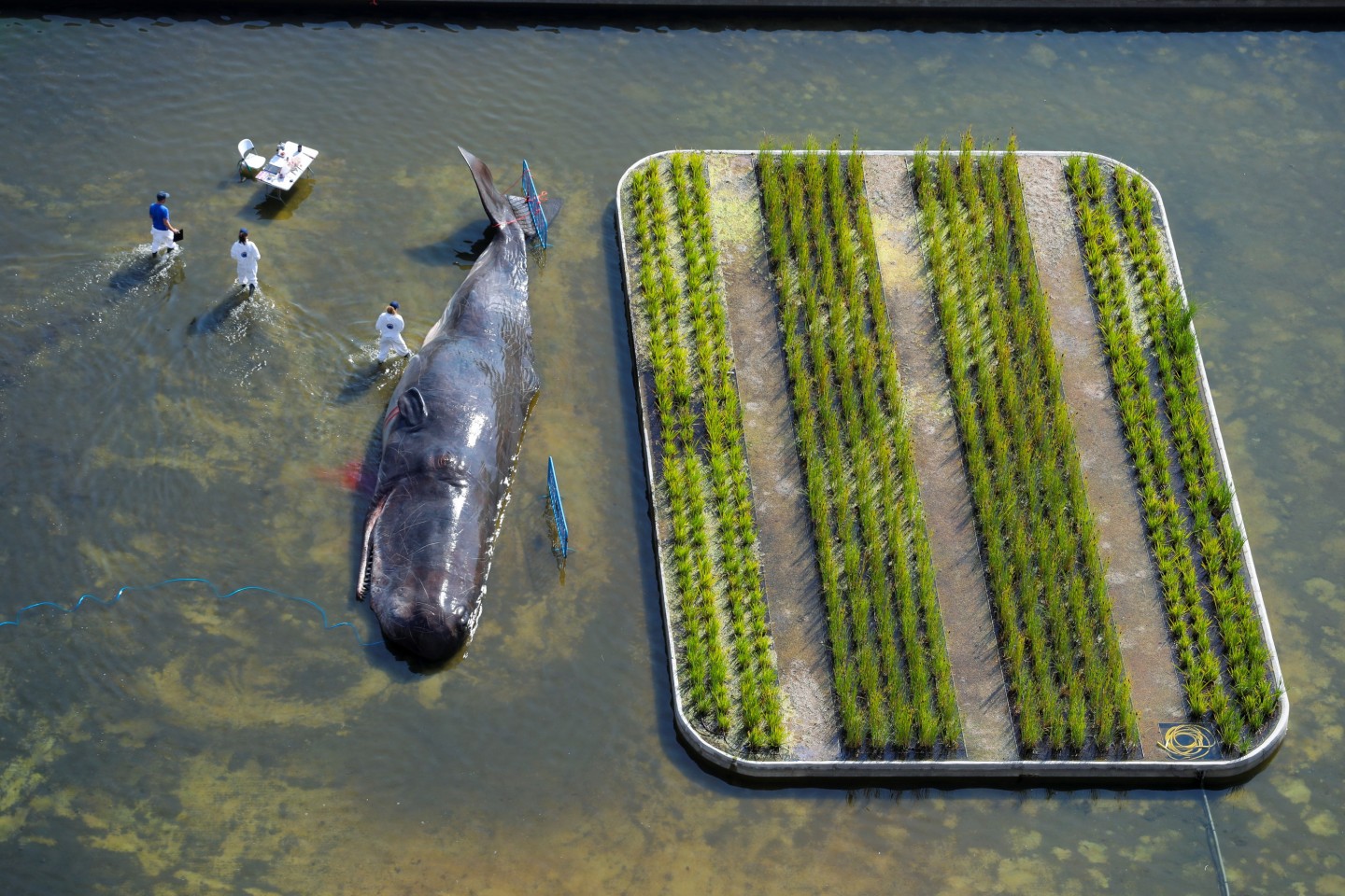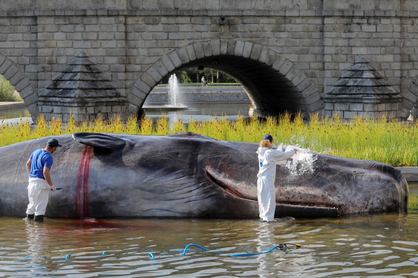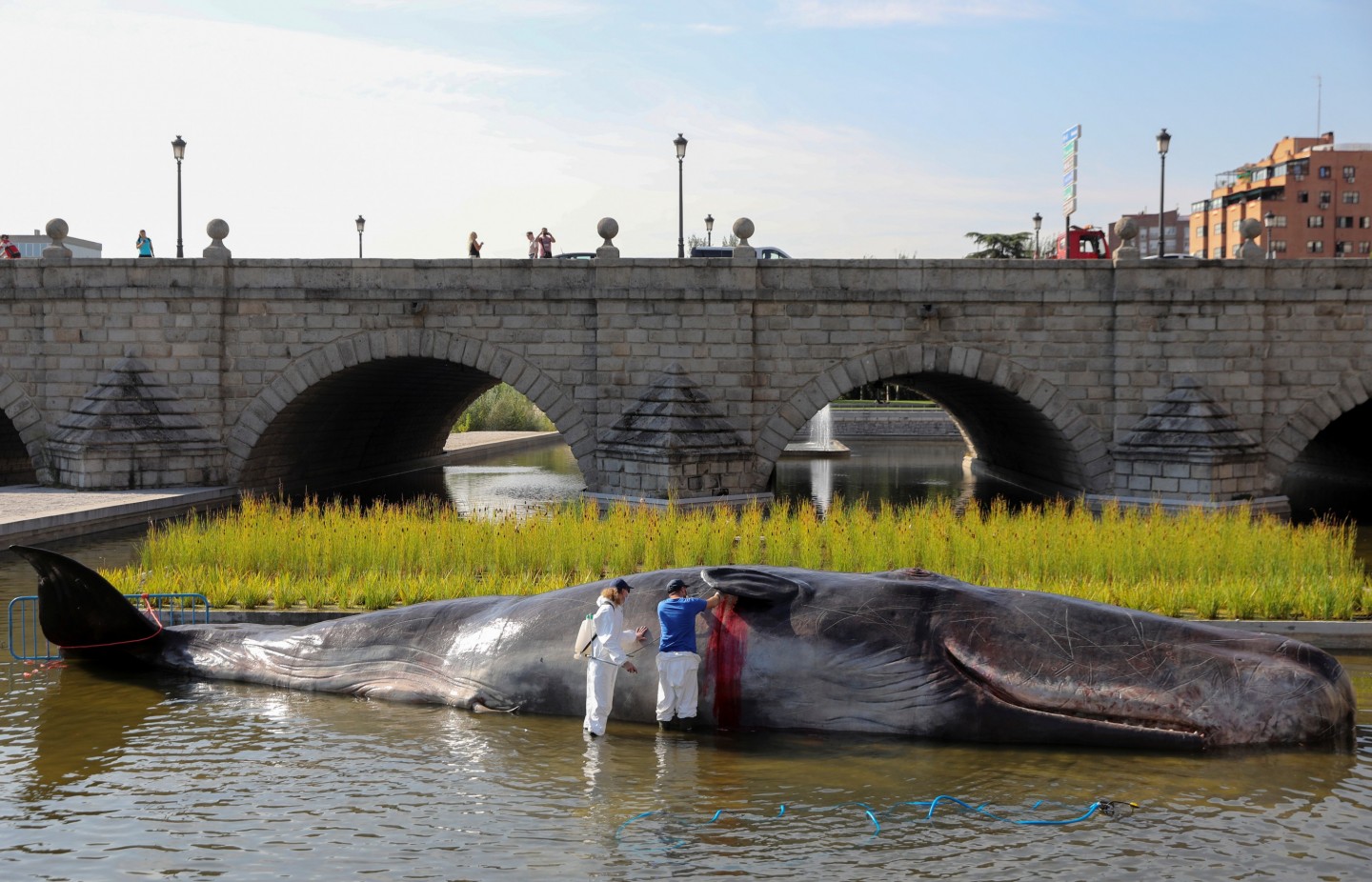 Spānijas galvaspilsētā esošās Manzanares upē uz šķiedrstikla mākslas instalācijas tikusi simulēta vaļa glābšanas procedūra. Tās autori ir Beļģijas mākslinieku kolektīvs ''Captain Boomer'', kuri tad arī uzņēmās ''glābēju'' lomu.