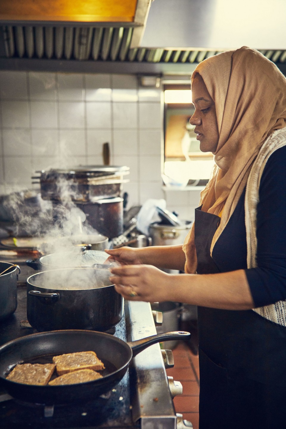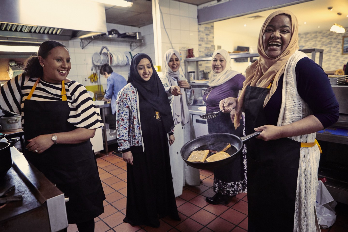 Plašākai sabiedrībai publicētas 19. jūlijā uzņemtas fotogrāfijās, kurās Saseksas hercogiene Megana piedalās maltītes gatavošanā musulmaņu kultūras centrā Londonā.