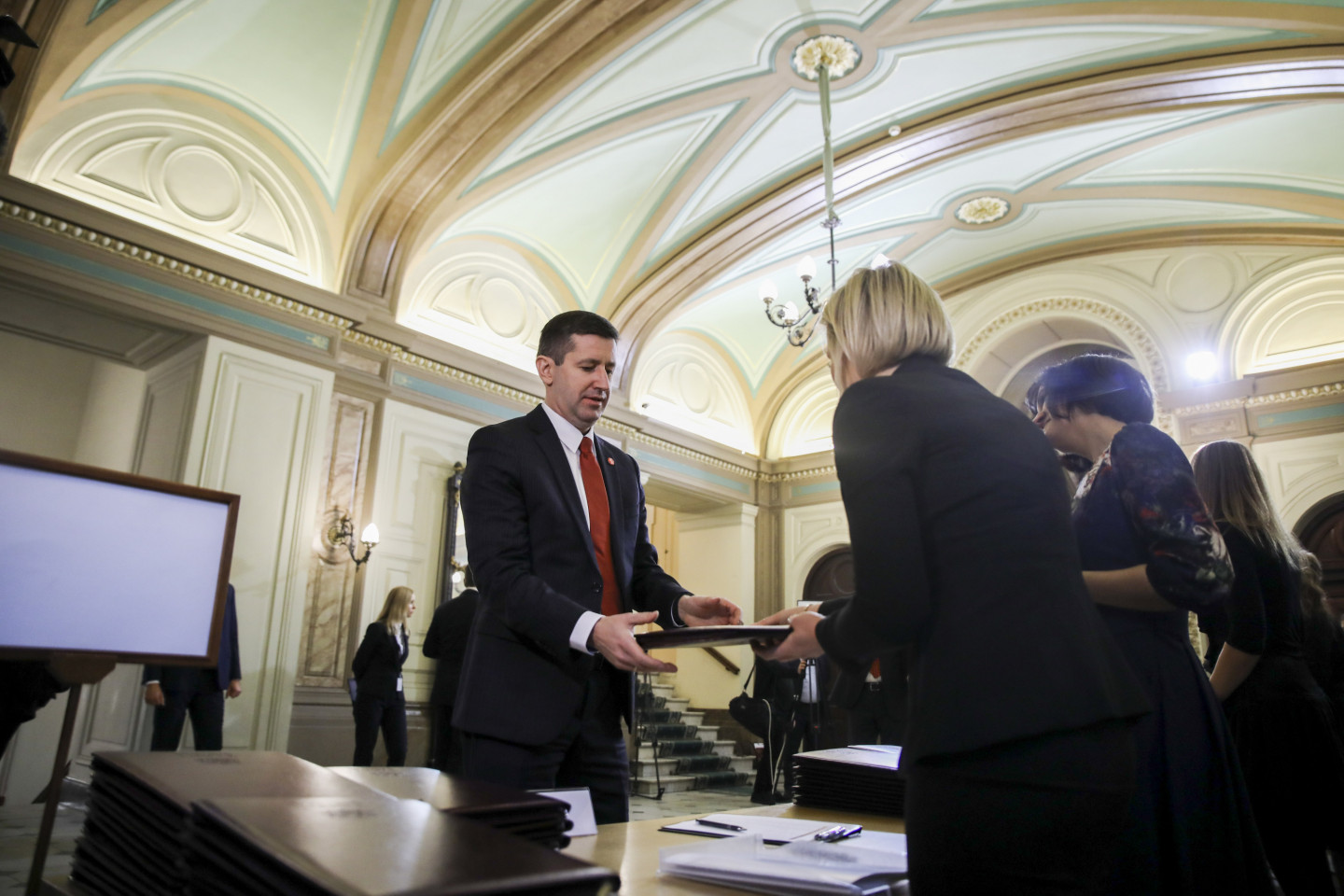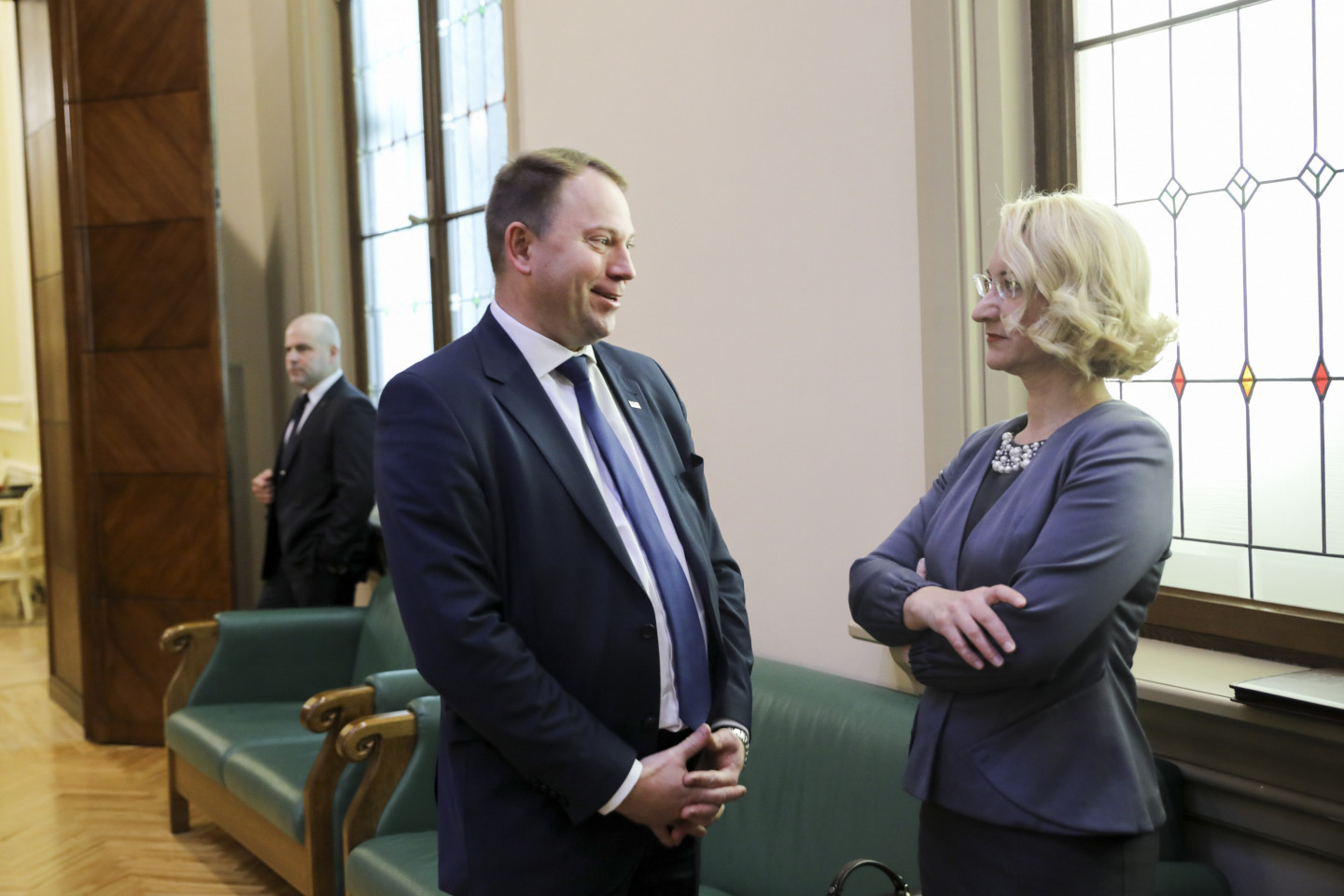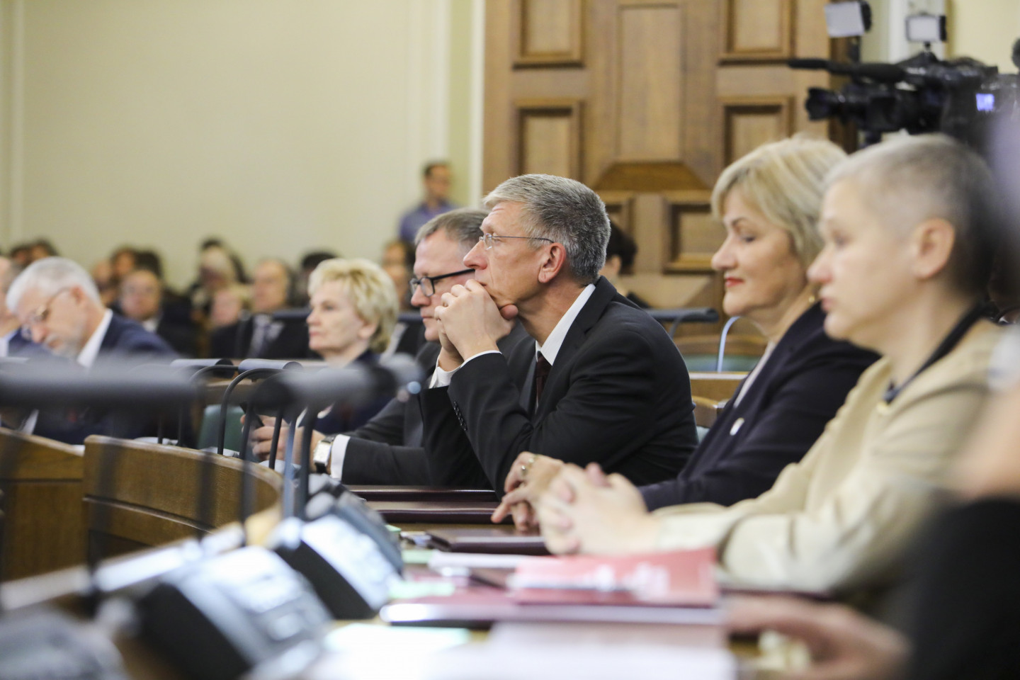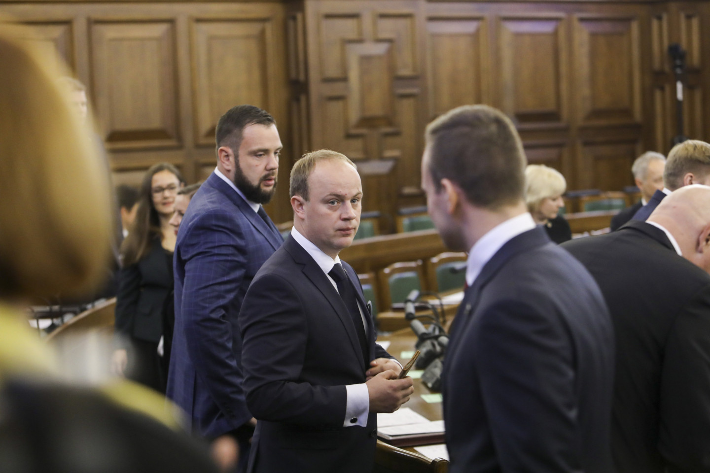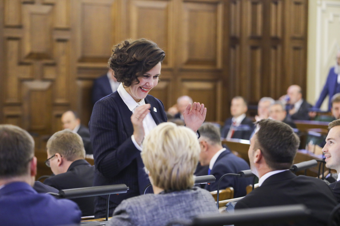 Uz pirmo 13.Saeimas sēdi ieradušies visi 100 deputāti, sacīja sēdes vadītāja Ināra Mūrniece (VL-TB/LNNK). Saskaņā ar Satversmē noteikto, jaunievēlētās Saeimas pirmo sēdi atklāja un līdz jaunā priekšsēdētāja ievēlēšanai vadīs 12.Saeimas priekšsēdētāja Ināra Mūrniece (VL-TB/LNNK). Sēdes sākumā jaunievēlēto parlamentu uzrunā Valsts prezidents Raimonds Vējonis. Jaunievēlētā Saeima pirmajā sēdē ievēlē balsu skaitītājus, kā arī pagaidu Mandātu, ētikas un iesniegumu komisiju. Tās locekļi komisijas sēdē pārbauda vēlēšanu materiālus un sūdzības par vēlēšanām, ja tādas iesniegtas Centrālajā vēlēšanu komisijā. Komisija sagatavo ziņojumu Saeimai par deputātu pilnvaru apstiprināšanu. Tad deputāta amata kandidāti, kas ievēlēti 13.Saeimā, dod svinīgu solījumu un apliecina to ar savu parakstu. Pēc svinīgā solījuma došanas deputāti balso par lēmuma projektu par 13.Saeimas deputātu pilnvaru apstiprināšanu. Jaunievēlētā Saeima pirmajā sēdē atklātā procedūrā ar vēlēšanu zīmēm ievēlē Prezidiju - parlamenta priekšsēdētāju, divus viņa biedrus, sekretāru un viņa biedru. Saskaņā ar Ministru kabineta iekārtas likumu līdz ar jaunievēlētās Saeimas sanākšanu uzskatāms, ka Ministru kabinets ir atkāpies, tādēļ sēdi noslēdz ar valdības paziņojumu par savu pilnvaru nolikšanu. Līdzšinējā valdība turpinās pildīt savus pienākumus līdz brīdim, kad deputāti apstiprinās jaunu valdību. No 12.Saeimas deputātiem jaunajā sasaukumā pārvēlēti 34 deputāti, tātad 66 parlamentārieši būs jauni. Kopumā parlamentā darbosies septiņas frakcijas - "Saskaņas", Jaunās konservatīvās partijas, "KPV LV", "Attīstībai/Par!" (AP), nacionālās apvienības "Visu Latvijai!"-"Tēvzemei un brīvībai"/LNNK (VL-TB/LNNK), Zaļo un zemnieku savienības (ZZS), kā ar "Jaunās Vienotības" (JV). Vislielākā frakcija - 23 deputāti - būs "Saskaņai", JKP un "KPV LV" pārstāvēs pa 16 deputātiem, AP un VL-TB/LNNK - pa 13, ZZS - 11, bet JV - astoņi. Kā ziņots, arī balsojuma priekšvakarā politiķi vēl nebija vienojušies par Saeimas Prezidija sastāvu. Partijas nav vienojušās arī par koalīcijas sastāvu un valdību. Uz spīkera amatu plāno kandidēt Dagmāra Beitnere-Le Galla (JKP) un 12.Saeimas priekšsēdētāja Ināra Mūrniece (VL-TB/LNNK). Citiem amatiem Prezidijā "Attīstībai/Par!" varētu virzīt Mariju Golubevu, "Saskaņa" - Andreju Klementjevu, "KPV LV" - Artusu Kaimiņu, bet Zaļo un zemnieku savienība - Gundaru Daudzi.