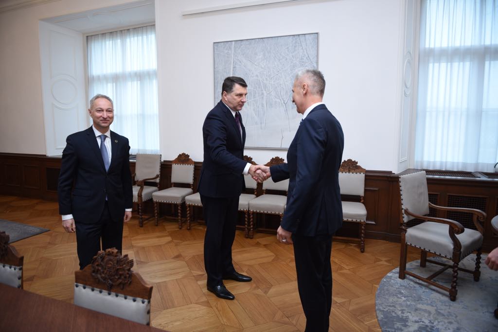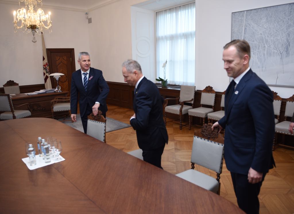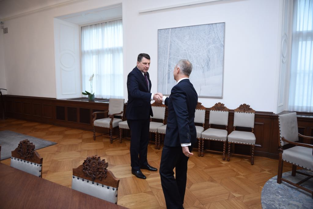 Valsts prezidents Raimonds Vējonis šodien plkst. 13.00 Rīgas pilī sāka tikšanos ar "KPV LV" premjera amata kandidātu Aldi Gobzemu, JKP premjera amata kandidātu Jāni Bordānu un partiju apvienības "Attīstībai/Par!" premjera amata kandidātu Arti Pabriku.