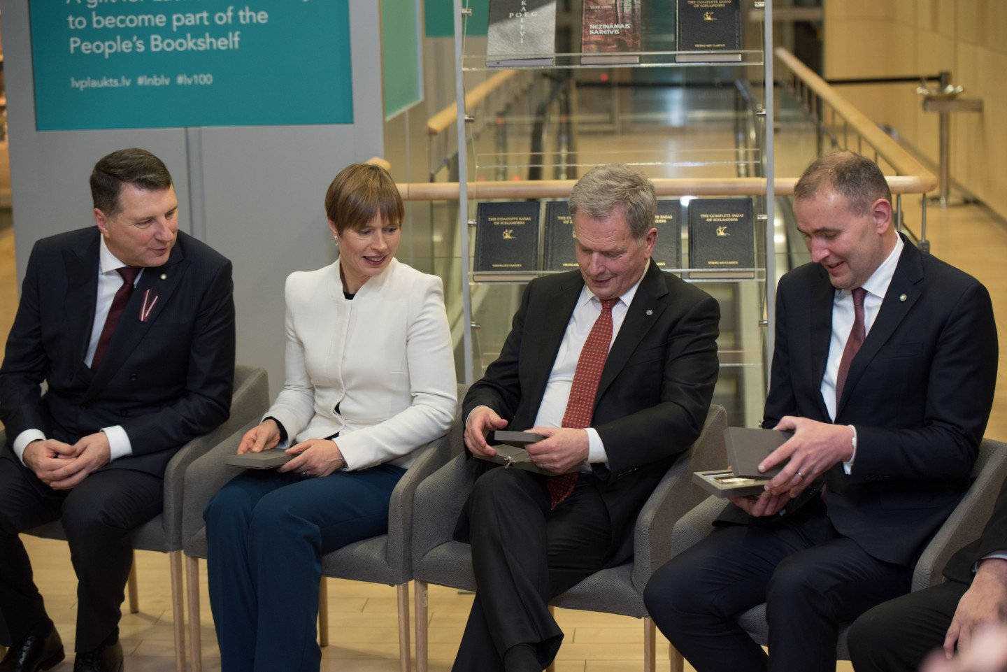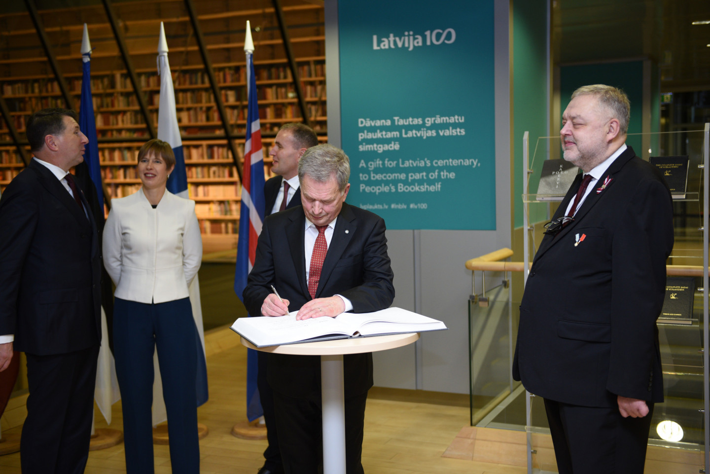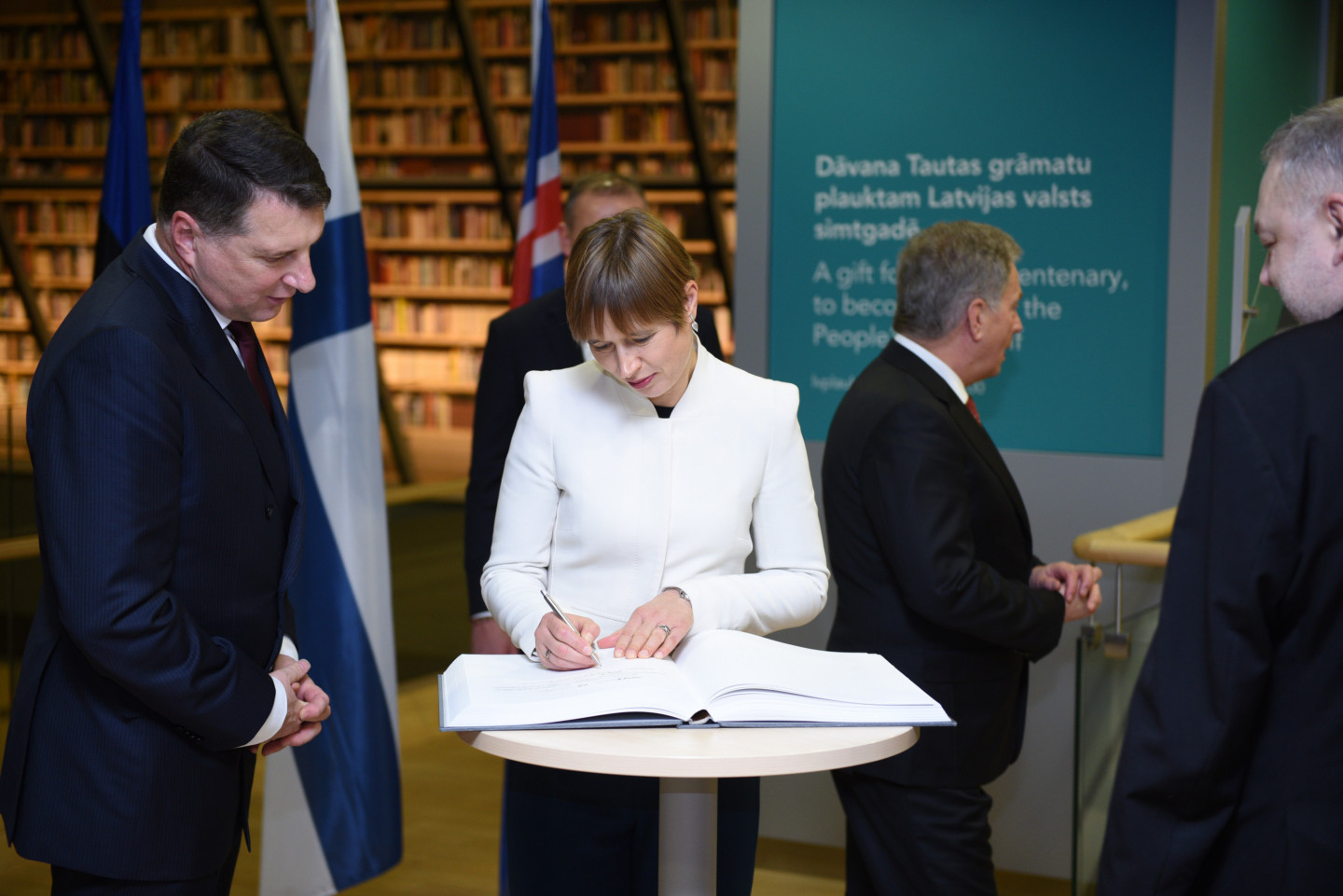 Dienas izskaņā Igaunijas, Islandes, Lietuvas un Somijas prezidenti svinīgā ceremonijā dāvināja savu grāmatu Tautas grāmatu plauktam Latvijas Nacionālajā bibliotēkā.Grāmatas dāvināšanā piedalījās Igaunijas Republikas prezidente Kersti Kaljulaida, Islandes Republikas prezidents Gudni Johannesons un Somijas Republikas prezidents Sauli Nīniste.
