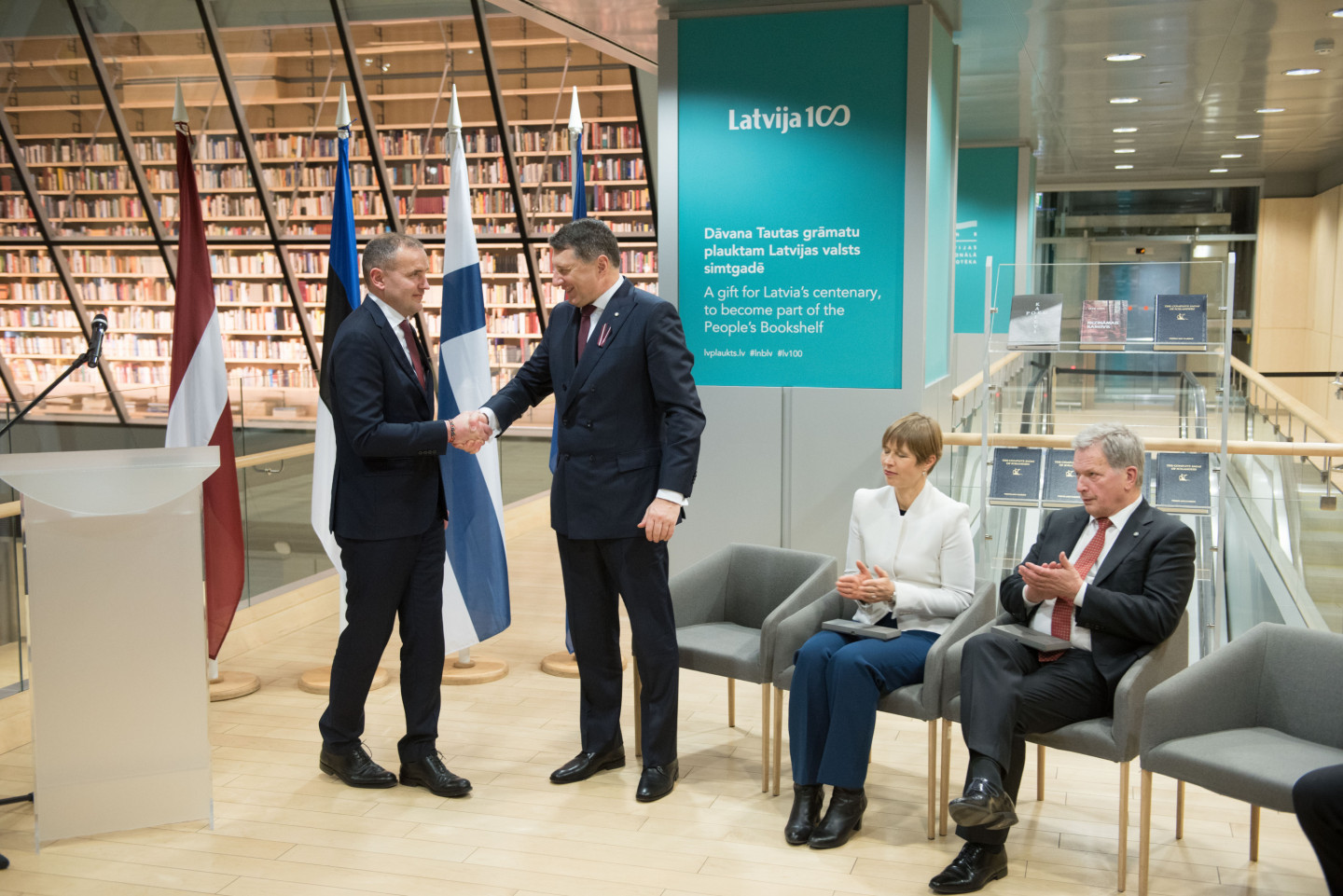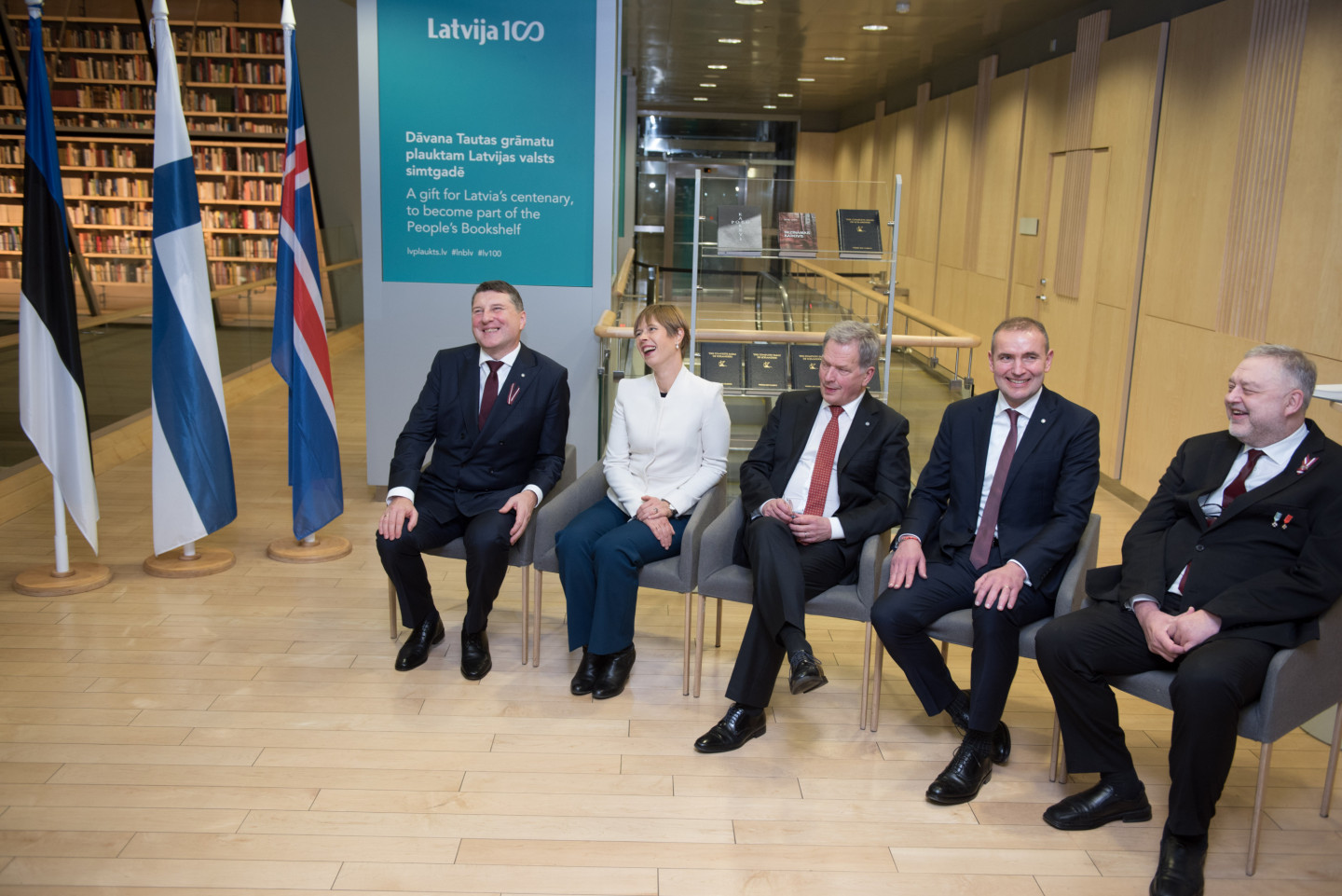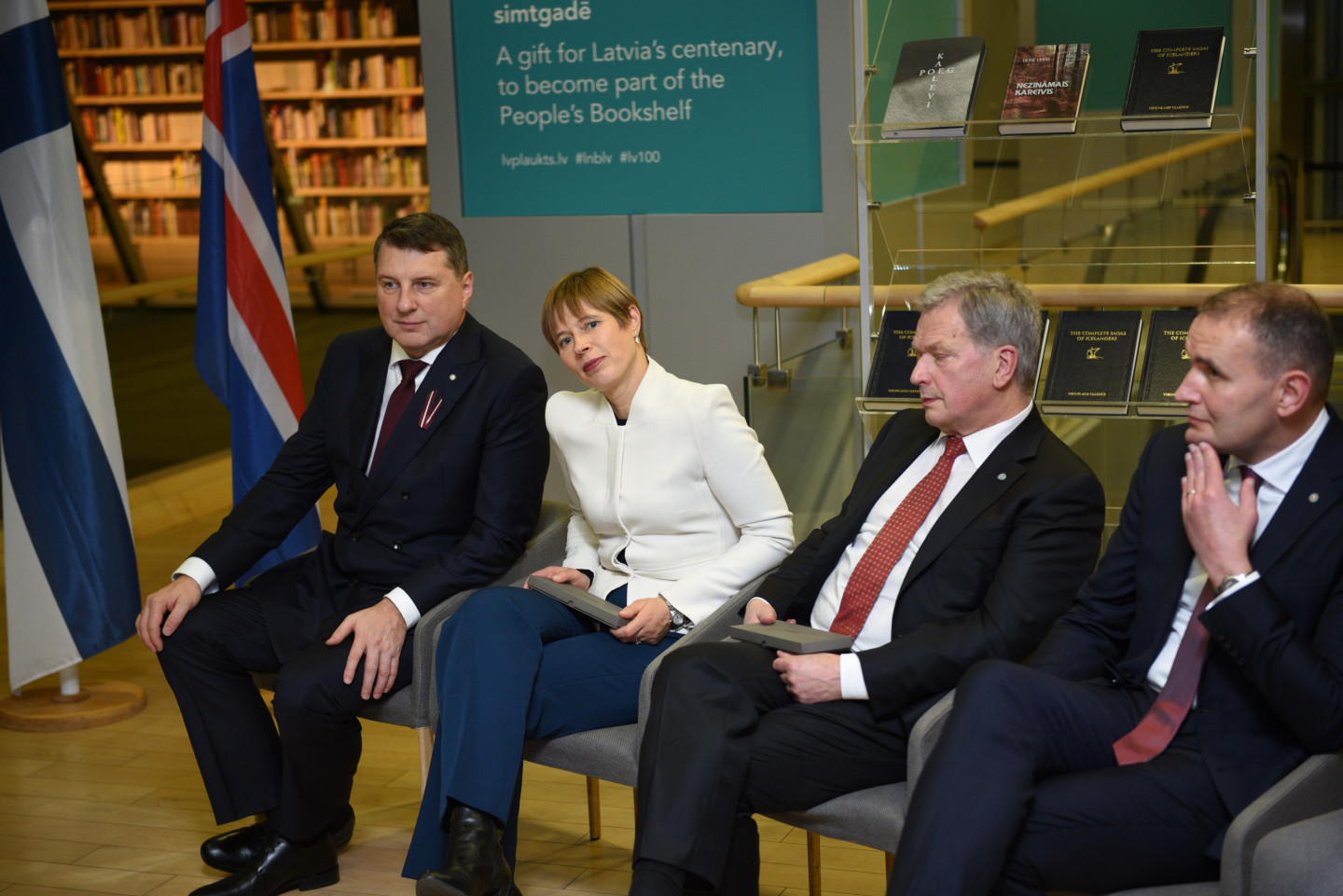 Dienas izskaņā Igaunijas, Islandes, Lietuvas un Somijas prezidenti svinīgā ceremonijā dāvināja savu grāmatu Tautas grāmatu plauktam Latvijas Nacionālajā bibliotēkā.Grāmatas dāvināšanā piedalījās Igaunijas Republikas prezidente Kersti Kaljulaida, Islandes Republikas prezidents Gudni Johannesons un Somijas Republikas prezidents Sauli Nīniste.