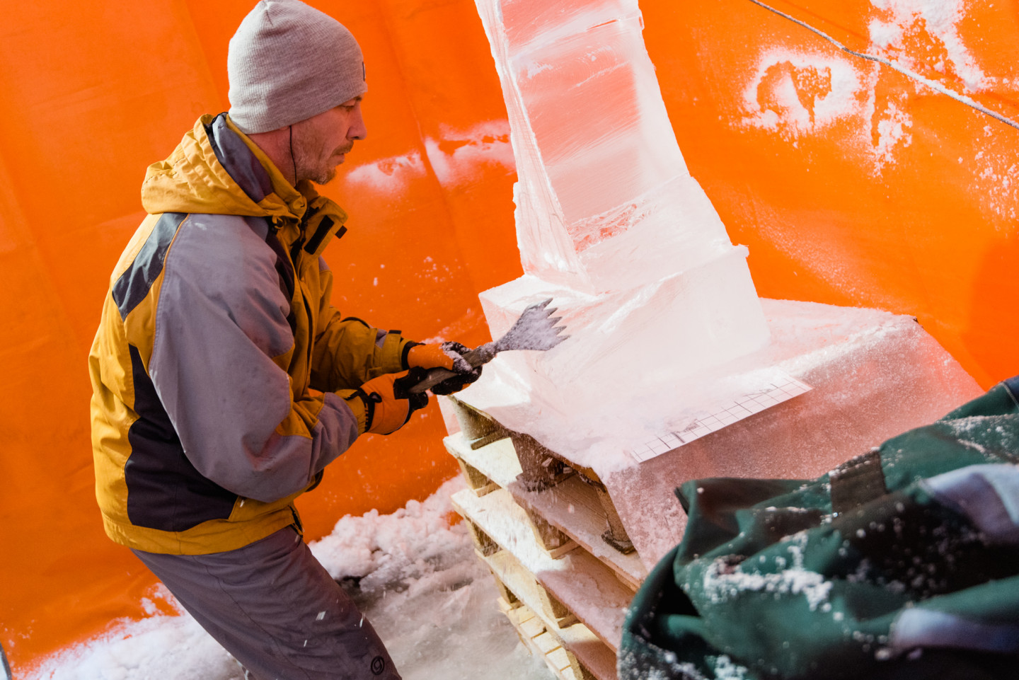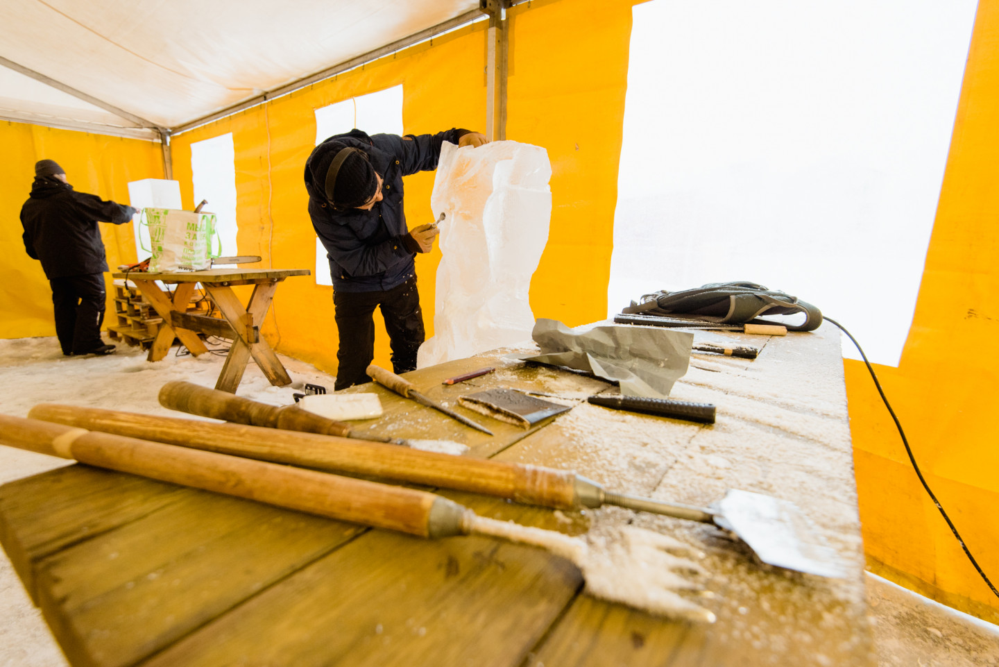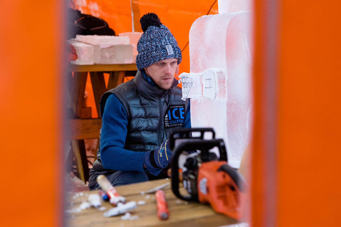 Jelgavā sācies Starptautiskā Ledus skulptūru festivāla konkurss, kurā piedalās 33 mākslinieki no 7 valstīm. Šodien, 4. februārī, tēlnieki, katrs no viena 100 x 50 x 25 centimetru liela un 120 kilogramu smaga ledus bloka izveidoja individuālās ledus skulptūras, kuras līdz festivāla atklāšanai uzglabās saldētavā. Savukārt rīt, 5. februārī, mākslinieki Pasta salā uzsāks komandu skulptūru formu veidošanu un turpinās darbu pie detaļu izstrādes līdz pat piektdienai. To būvniecībai katra komanda izmantos vienu lielo (200 x 100 x 50 centimetrus) un astoņus mazos ledus blokus (100 x 50 x 25 centimetrus). Paralēli konkursa darbu veidošanai Jelgavā top tādi lielformāta ledus objekti kā “Ledus vīni” ledus bārs, vairākas foto skulptūras, ledus labirints un slidkalniņš bērniem. Tēlnieki piedalās konkursā, tādēļ organizatori visiem nodrošina vienlīdzīgus darba apstākļus un ledus daudzumu. Toties, meistardarbu radīšanai, katrs skulptors izmanto savus instrumentus, sākot ar kaltiem, skrāpjiem, frēzēm, nažiem, fēniem, gludekļiem un beidzot ar tādiem paštaisītiem instrumentiem kā, piemēram, skrūvju dēlis. Tēlniekiem tiek nodrošināts augstākās kvalitātes ledus, ko iegūst mākslīgi saldējot. Salīdzinot ar dabīgo ledu, tas ir daudz dzidrāks un noturīgāks, jo tajā nav gaisa burbulīšu, kas sasilstot paātrina ledus kušanu. Dažādu ledus objektu kā, piemēram, bērnu slidkalniņa un labirinta būvniecībā izmanto ledu no Jelgavas un Madonas puses ūdenskrātuvēm. Jelgavas pilsētā no 8. līdz 10. februārim jau 21. reizi notiks Starptautiskais Ledus skulptūru festivāls. Festivāls notiks trīs vietās pilsētā: Pasta salā, Jāņa Čakstes bulvārī un Pils salā (Pilssalas ielā 1) . Apmeklētāji festivāla dienās aicināti apskatīt kopumā vairāk nekā 65 ledus skulptūras un dažādus ledus objektus, kā arī baudīt populāru mūziķu koncertus, izrādes bērniem, radošās darbnīcas, tirdziņu.