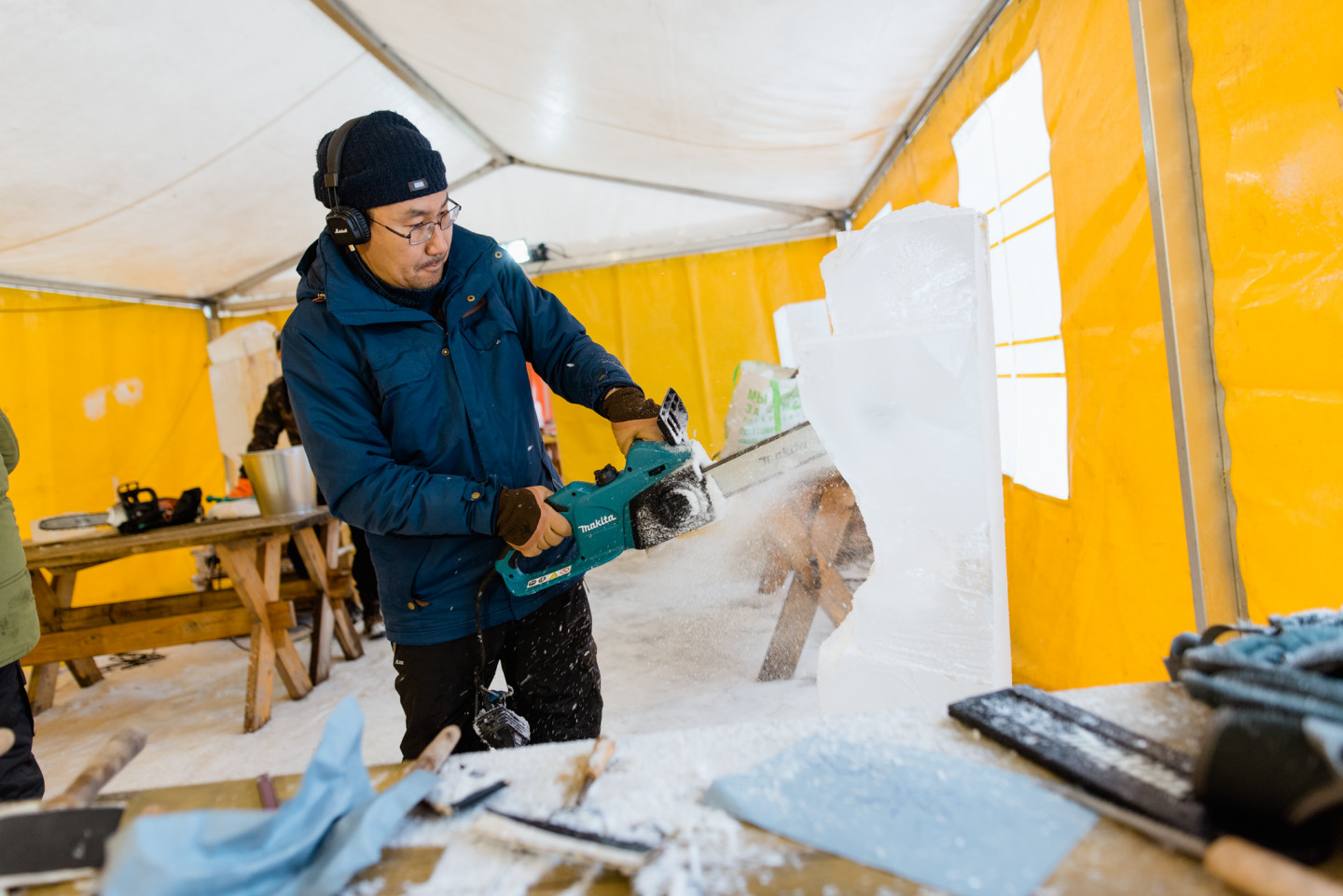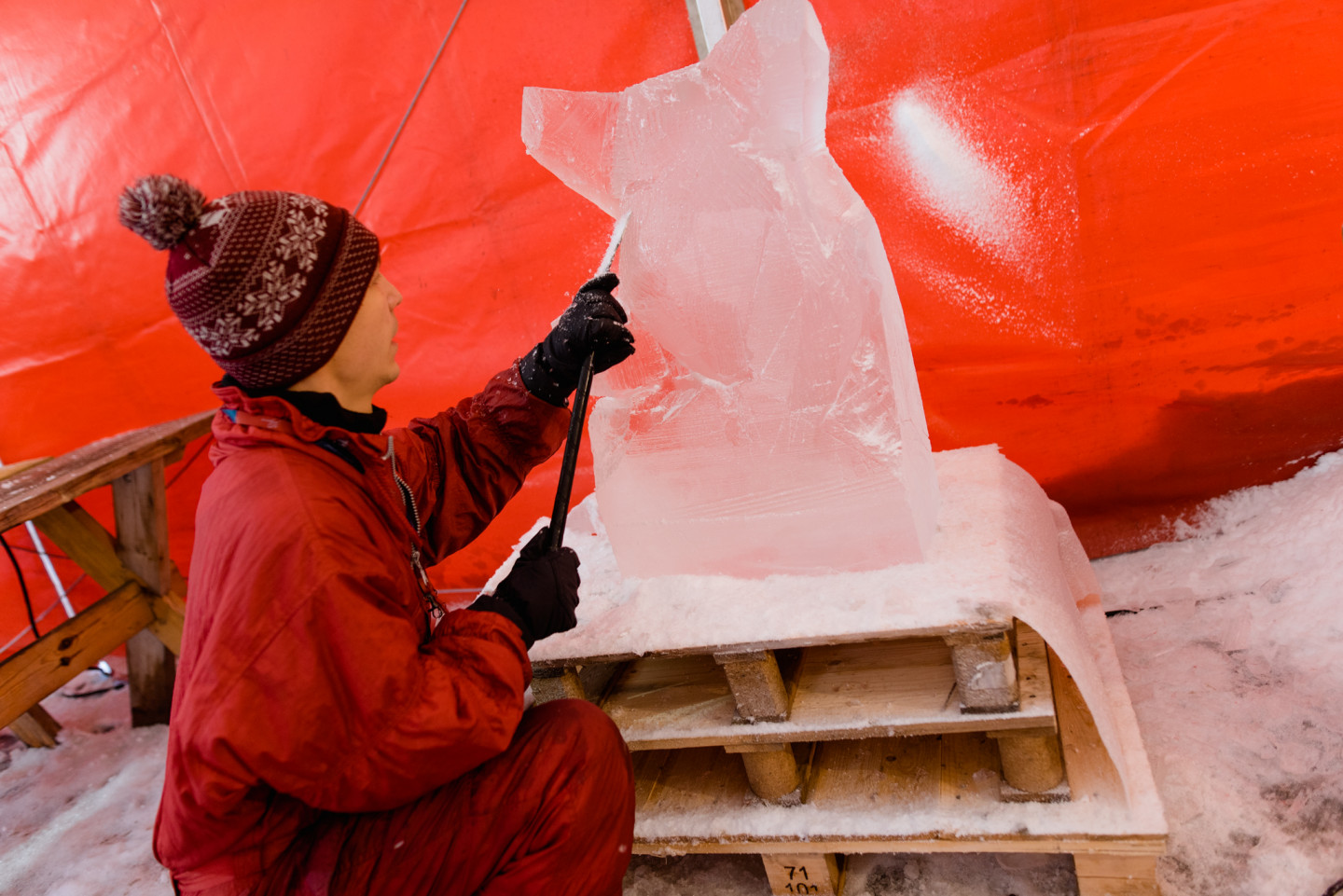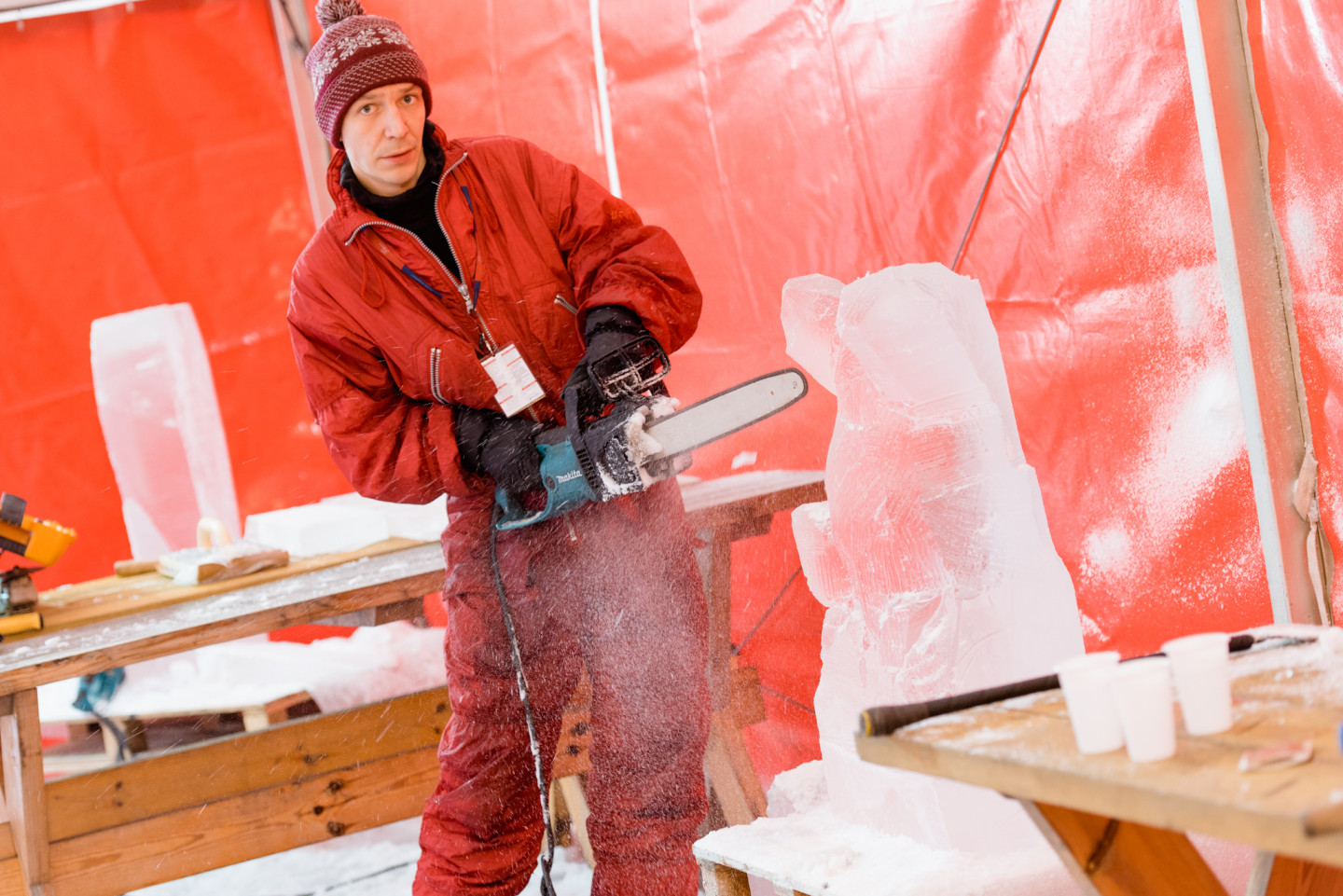 Jelgavā sācies Starptautiskā Ledus skulptūru festivāla konkurss, kurā piedalās 33 mākslinieki no 7 valstīm. Šodien, 4. februārī, tēlnieki, katrs no viena 100 x 50 x 25 centimetru liela un 120 kilogramu smaga ledus bloka izveidoja individuālās ledus skulptūras, kuras līdz festivāla atklāšanai uzglabās saldētavā. Savukārt rīt, 5. februārī, mākslinieki Pasta salā uzsāks komandu skulptūru formu veidošanu un turpinās darbu pie detaļu izstrādes līdz pat piektdienai. To būvniecībai katra komanda izmantos vienu lielo (200 x 100 x 50 centimetrus) un astoņus mazos ledus blokus (100 x 50 x 25 centimetrus). Paralēli konkursa darbu veidošanai Jelgavā top tādi lielformāta ledus objekti kā “Ledus vīni” ledus bārs, vairākas foto skulptūras, ledus labirints un slidkalniņš bērniem. Tēlnieki piedalās konkursā, tādēļ organizatori visiem nodrošina vienlīdzīgus darba apstākļus un ledus daudzumu. Toties, meistardarbu radīšanai, katrs skulptors izmanto savus instrumentus, sākot ar kaltiem, skrāpjiem, frēzēm, nažiem, fēniem, gludekļiem un beidzot ar tādiem paštaisītiem instrumentiem kā, piemēram, skrūvju dēlis. Tēlniekiem tiek nodrošināts augstākās kvalitātes ledus, ko iegūst mākslīgi saldējot. Salīdzinot ar dabīgo ledu, tas ir daudz dzidrāks un noturīgāks, jo tajā nav gaisa burbulīšu, kas sasilstot paātrina ledus kušanu. Dažādu ledus objektu kā, piemēram, bērnu slidkalniņa un labirinta būvniecībā izmanto ledu no Jelgavas un Madonas puses ūdenskrātuvēm. Jelgavas pilsētā no 8. līdz 10. februārim jau 21. reizi notiks Starptautiskais Ledus skulptūru festivāls. Festivāls notiks trīs vietās pilsētā: Pasta salā, Jāņa Čakstes bulvārī un Pils salā (Pilssalas ielā 1) . Apmeklētāji festivāla dienās aicināti apskatīt kopumā vairāk nekā 65 ledus skulptūras un dažādus ledus objektus, kā arī baudīt populāru mūziķu koncertus, izrādes bērniem, radošās darbnīcas, tirdziņu.