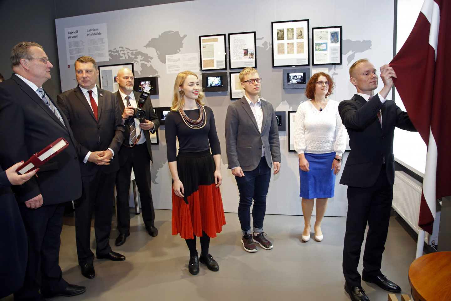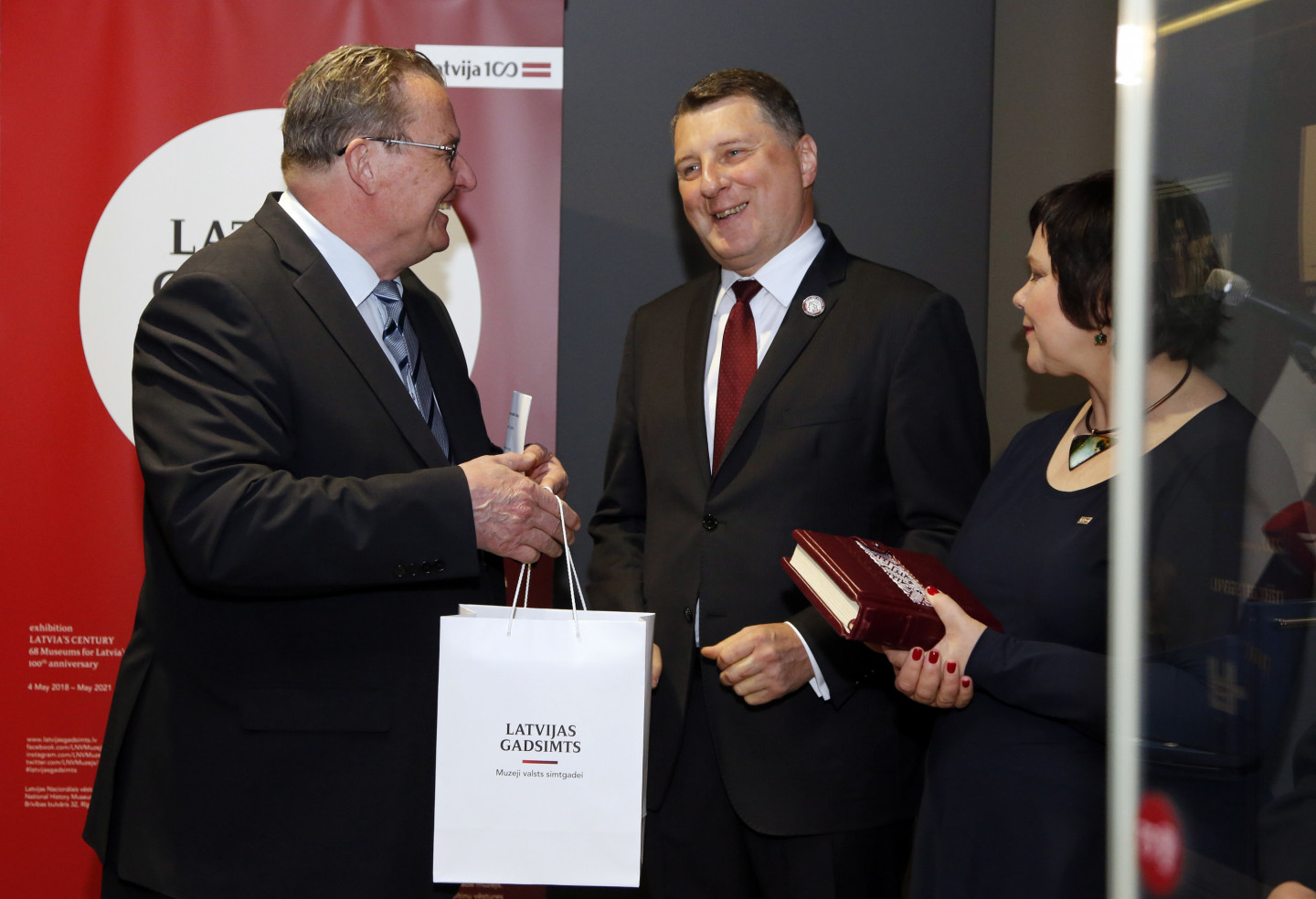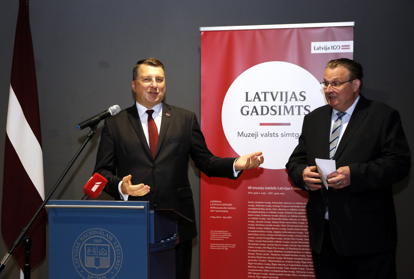Nacionālajā muzejā Latvijas muzeju kopizstādē "Latvijas gadsimts" tika izstādīts muzeja jaunieguvums - ceļojošais Latvijas simtgades karogs, kas turpmāk būs apskatāms šīs izstādes sadaļā "Latvieši pasaulē". Pasākumā piedalījās Valsts prezidents Raimonds Vējonis.