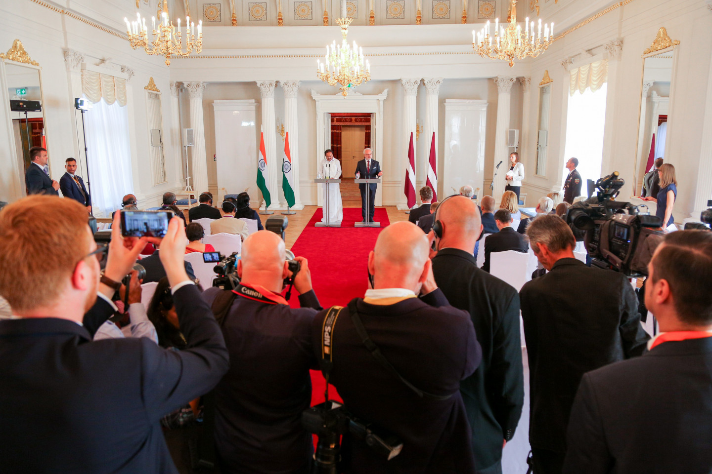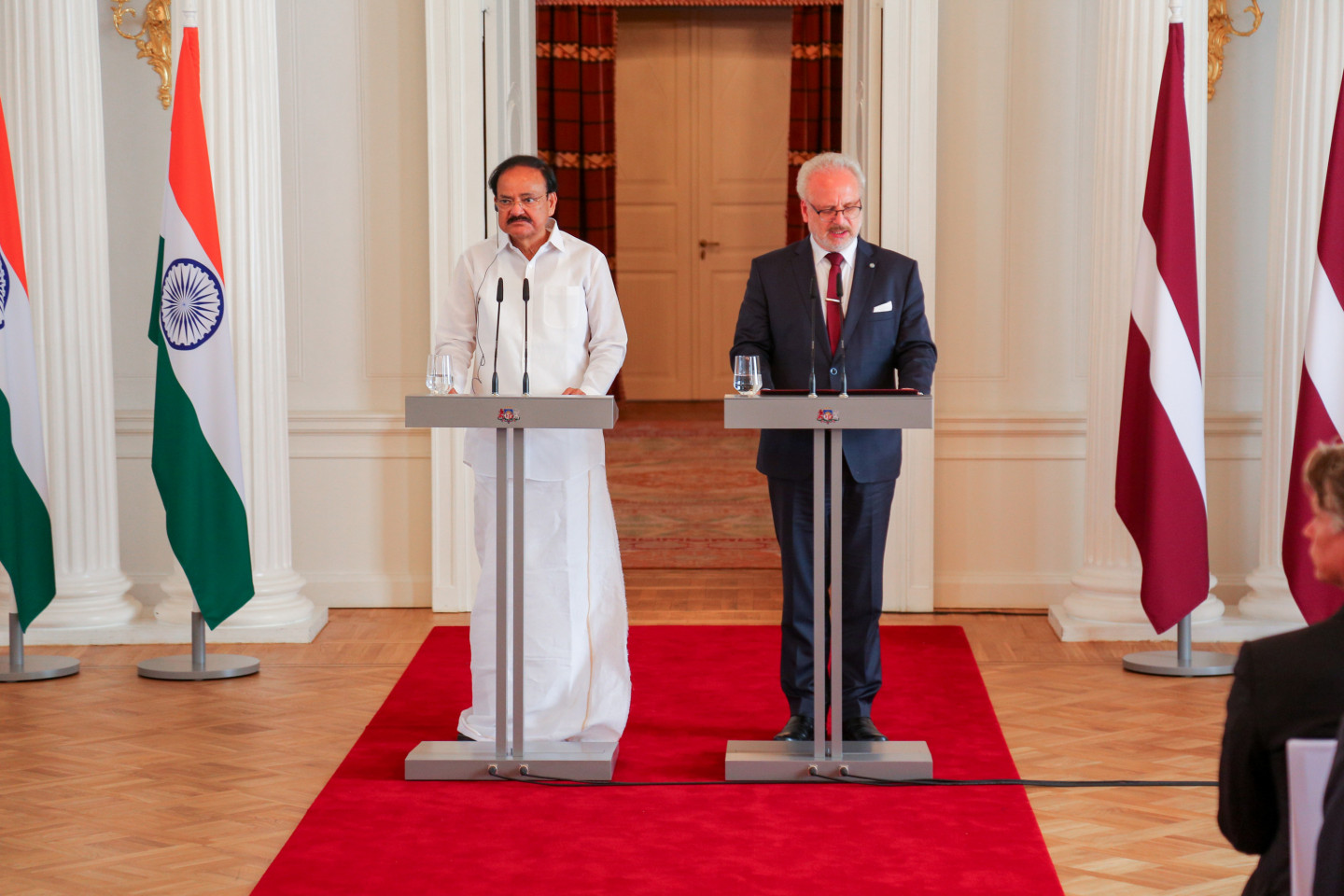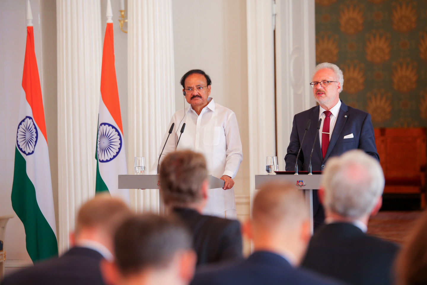 Latvijas Valsts prezidents Egils Levits šodien Rīgas pilī uzņēma Indijas viceprezidentu Venkaiu Naidu.