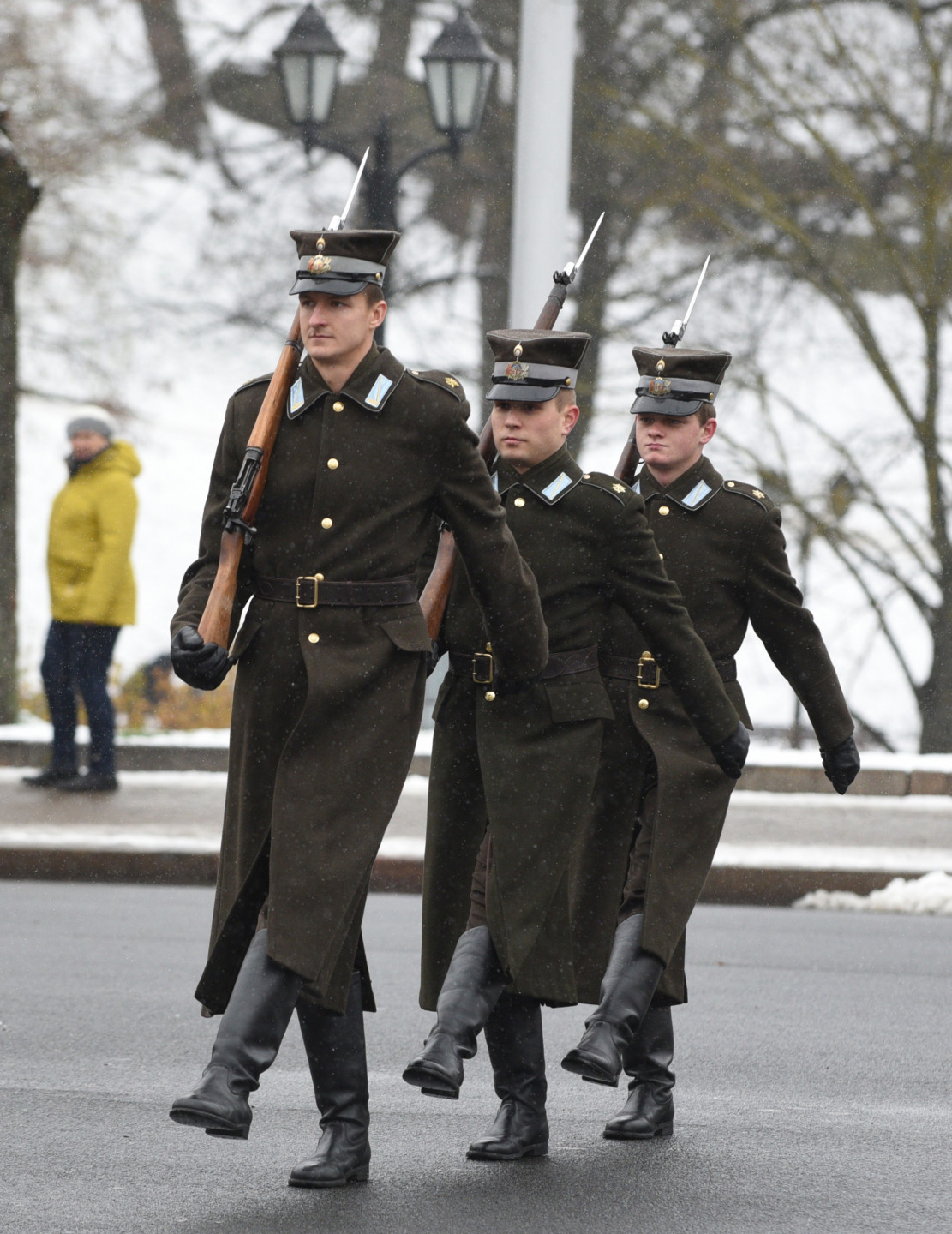 Valsts ieņēmumu dienesta muitas amatpersonas nolika ziedus pie Brīvības pieminekļa.