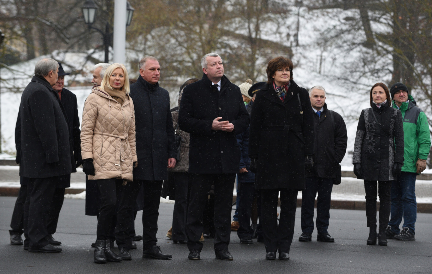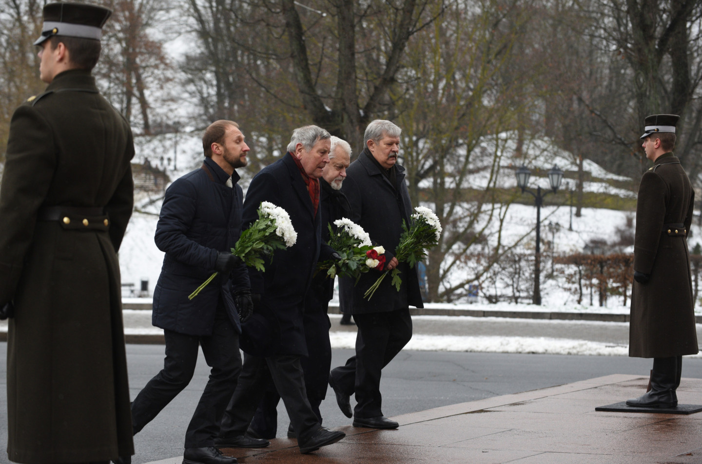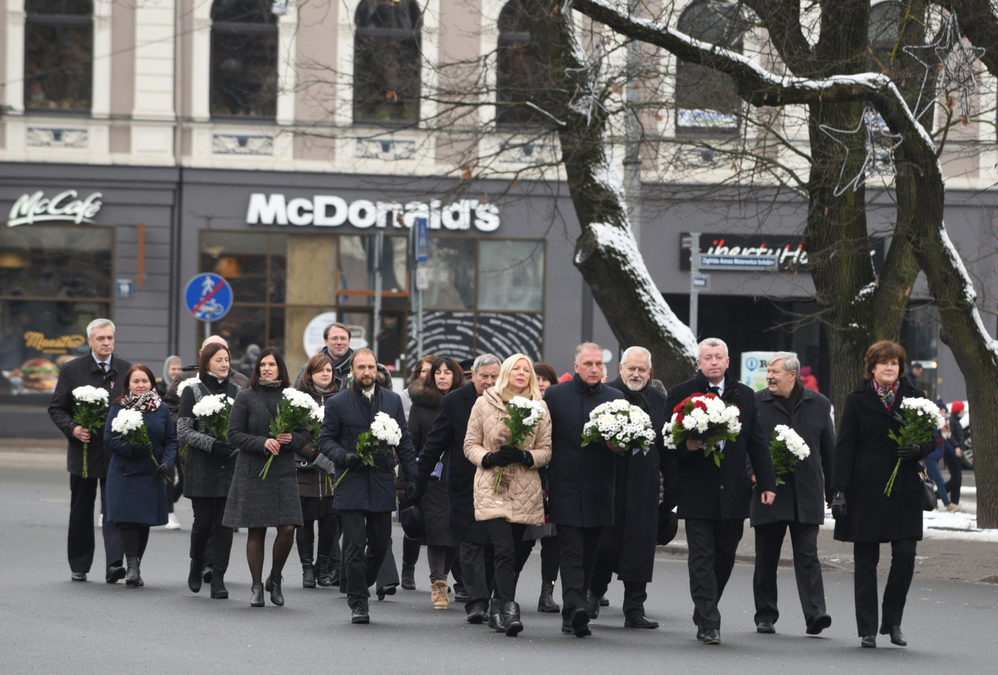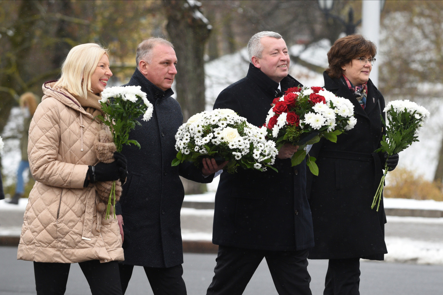 VID amatpersonas noliek ziedus pie Brīvības pieminekļa