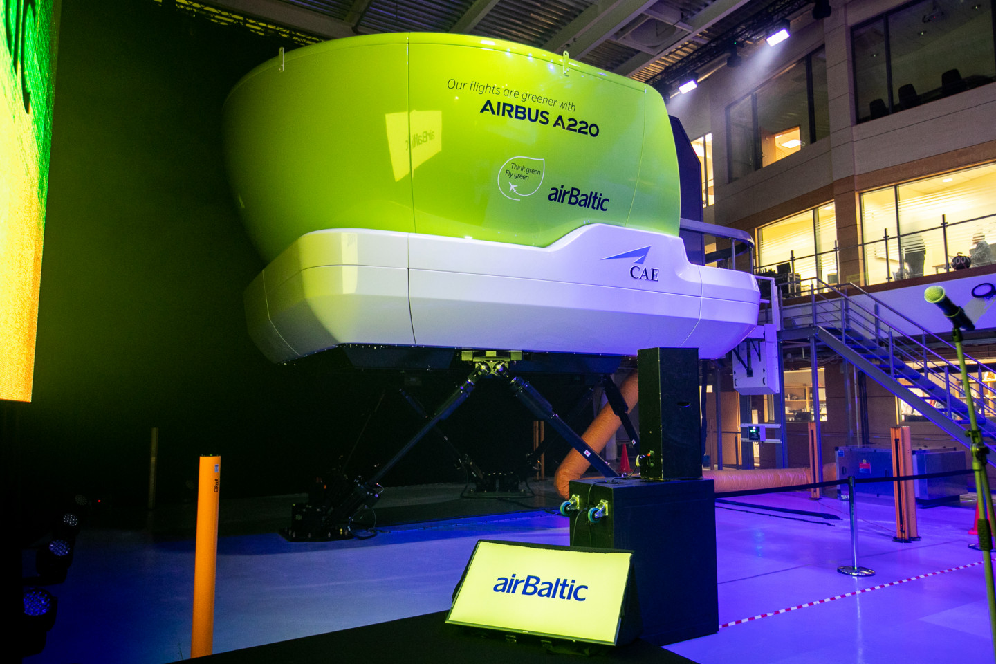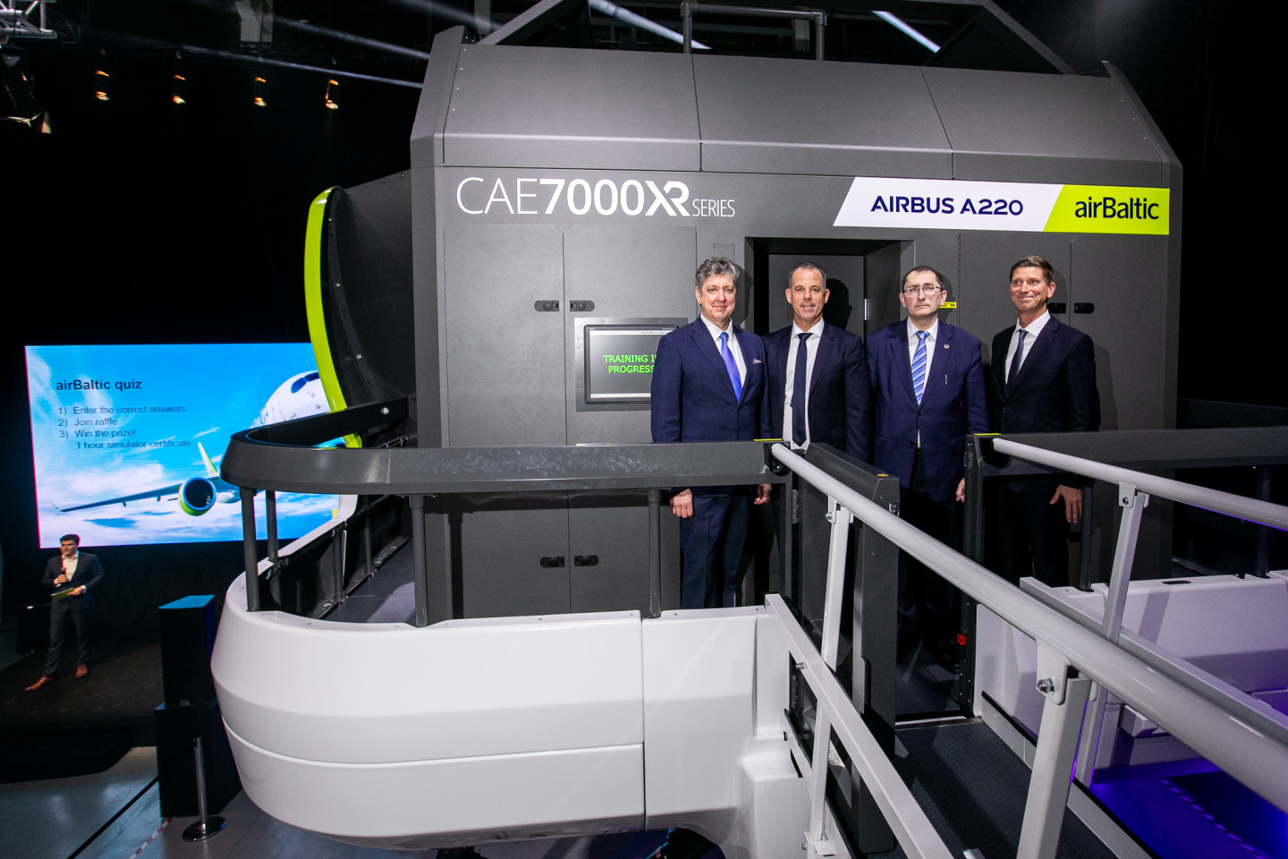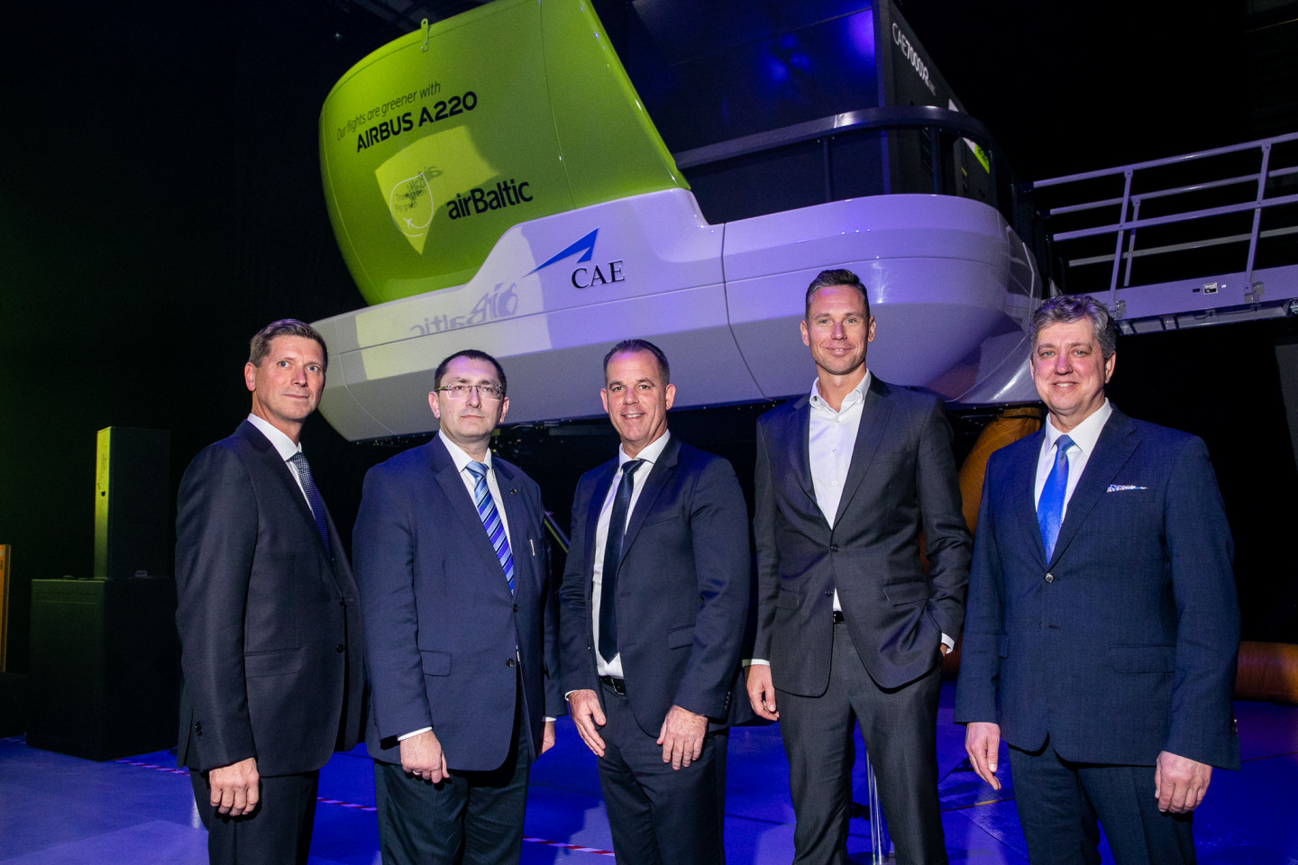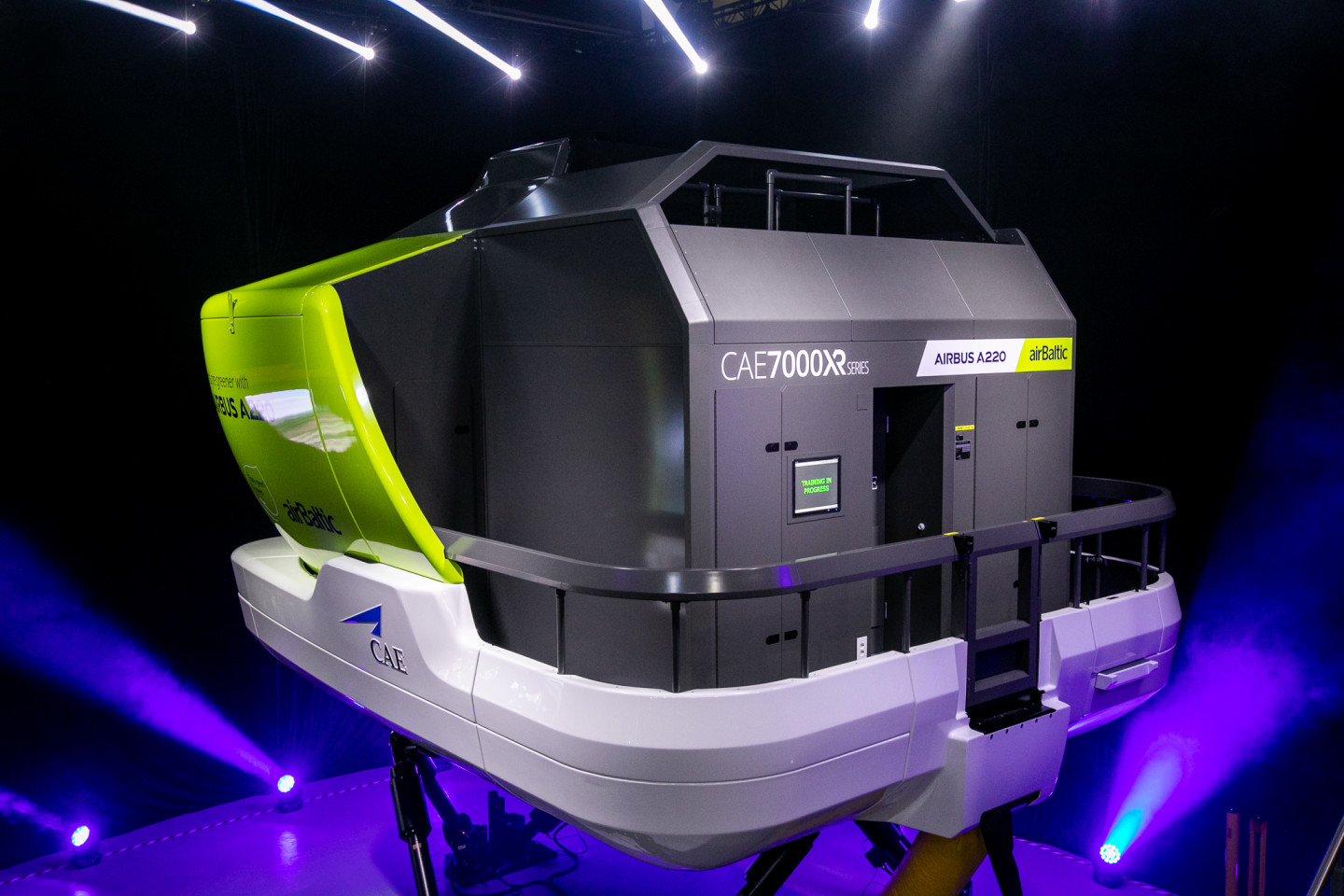 Latvijas lidsabiedrība airBaltic 2019. gada 3. decembrī pulcēja Latvijas Republikas satiksmes ministru, partnerus, vietējo un starptautisko mediju pārstāvju, lai airBaltic Training centrā, blakus starptautiskajai lidostai "Rīga", prezentētu augstākā standarta Airbus A220 lidojumu simulatoru. Šis ir pirmais jaunais lidojumu simulators, ko jebkad iegādājies kāds Latvijas uzņēmums, kā arī jaunākais šāda veida simulators pasaulē.