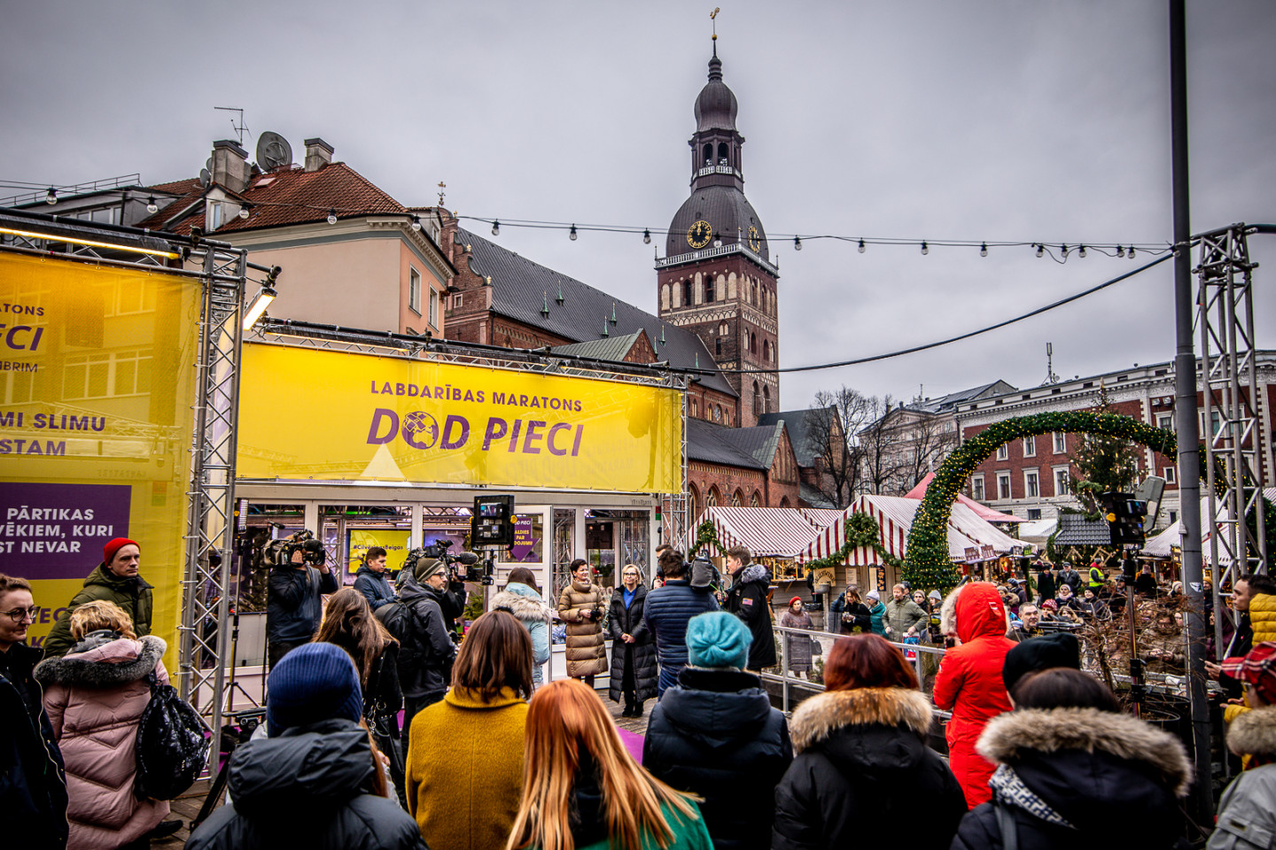 Otrdien, 17. decembrī, tika atklāts labdarības maratons Dod Pieci!. Uz 152,5 stundām dīdžejus Tomu Grēviņu, Magnusu Eriņu un Martu Grigali stikla studijā ieslēdza Ziedot.lv vadītāja Rūta Dimanta un šī gada tēmas vēstnese, Latvijas Radio 1 raidījuma „Krustpunktā" producente Evija Unāma. Kopš maratona sākuma Dod Pieci! stikla studijā Doma laukumā jau ir viesojušās grupas Prāta Vētra, Astro'n'out, My Radiant You, Brīvrunu projekts, fonda „Viegli" Kartupeļu lauka bigbends, kā arī Rīgas Doma zēnu koris kopā ar komponistu Raimondu Tigulu un diriģentu Mārtiņu Klišānu, kuri ar šī gada Dod Pieci! himnu „Klusi čukst Dievs" atklāja maratonu. Studijā viesojās arī Baltijas valstu prezidenti, Latvijas Radio 1 raidījuma „Krustpunktā" vadītājs Aidis Tomsons un filosofs Vents Sīlis. Dod Pieci! īpašais aģents Čiekurmens – īstajā vārdā Rafaels Ciekurs – kopā ar dziesminieku Kārli Kazāku viesojās Rīgas Austrumu klīniskās universitātes slimnīcas Toksikoloģijas un sepses klīnikā, lai teiktu paldies slimnīcas personālam par pašaizliedzīgo un nozīmīgo darbu, ko viņi veic ik dienas. 152,5 labdarības maratona stundās stikla studijā viesosies vairāk nekā 100 Latvijā populāri un mīlēti mākslinieki, kā arī nozares eksperti, lai atbalstītu šī gada Dod Pieci! mērķi.