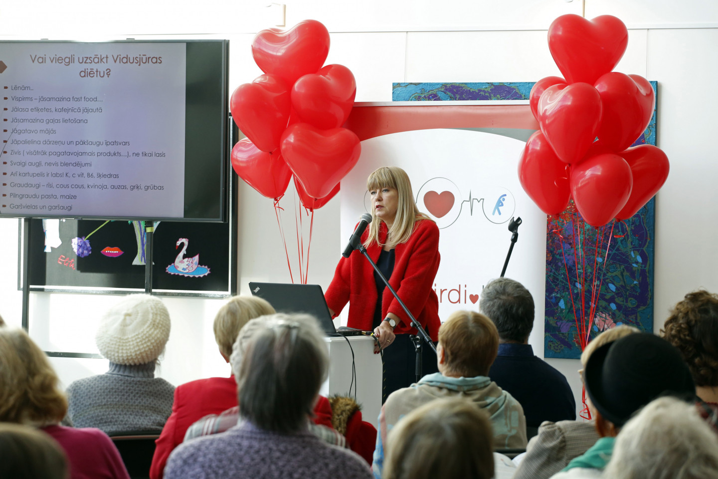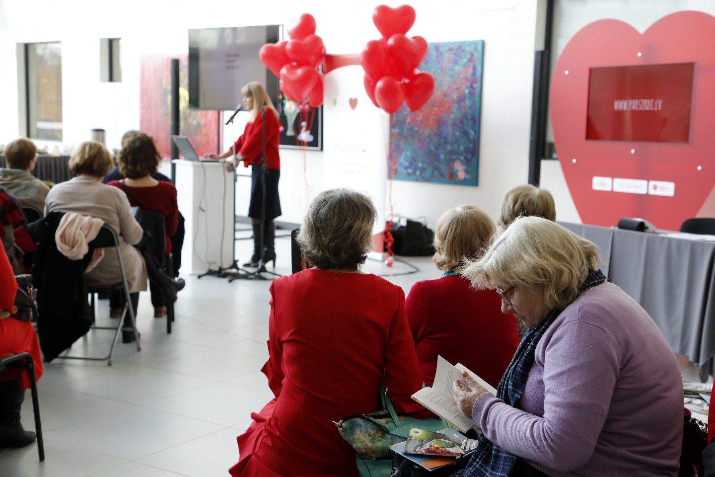 Lai pievērstu uzmanību sievietes sirds veselībai, atzīmējot starptautisko Go Red for Women dienu, šodien notika pasākums "Diena sievietes sirds veselībai", Paula Stradiņa Klīniskās universitātes slimnīcas jaunā A korpusa 1. stāvā. Latvijas iedzīvotāju veselību ietekmējošo paradumu pētījums liecina, ka 12% sieviešu smēķē (teju 18% sieviešu vecumā no 35 līdz 44 gadiem, 10% vecumā no 15 līdz 24 gadiem). Saskaņā ar Latvijas iedzīvotāju kardiovaskulāro slimību riska faktoru šķērsgriezuma pētījumu 40% sieviešu ir arteriāla hipertensija, 78% sieviešu ir paaugstināts holesterīna līmenis, 25% paaugstināts cukura līmenis asinīs un teju 33% ir ar aptaukošanos (ĶMI (ķermeņa masas indekss) virs 30). Izplatītākie ietekmējamie riska faktori sievietēm ir smēķēšana, dislipidēmija (augsts holesterīna līmenis), paaugstināts asinsspiediens, cukura diabēts, palielināts svars un aptaukošanās, neracionāls uzturs, mazkustīgums, liels alkohola patēriņš, stress, depresija. Lai pievērstu uzmanību sievietes sirds veselībai, pacientu biedrība ParSirdi.lv sadarbībā ar Latvijas Kardiologu biedrību un Paula Stradiņa Klīniskās universitātes slimnīcu aicināja uz pasākumu, kura mērķis ir izglītot par riskiem, mudināt pārbaudīt veselību un nepieciešamības gadījumā arī ārstēties.