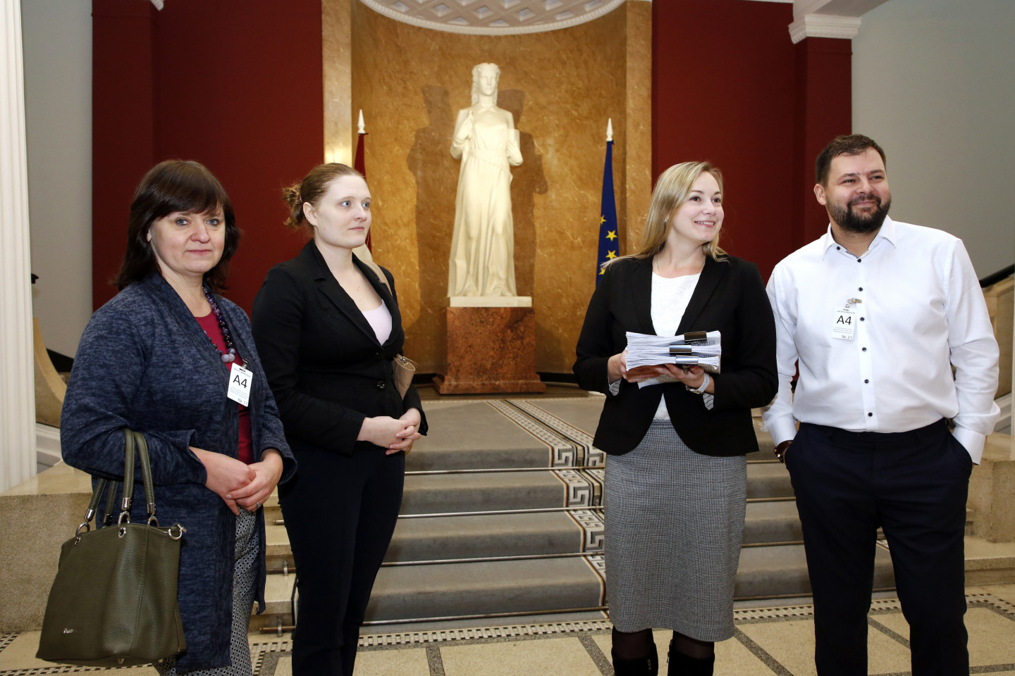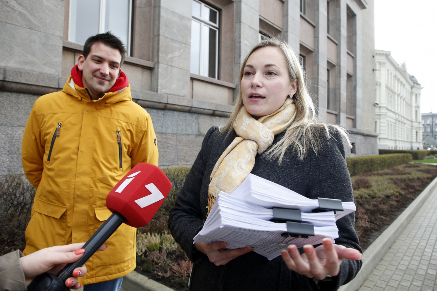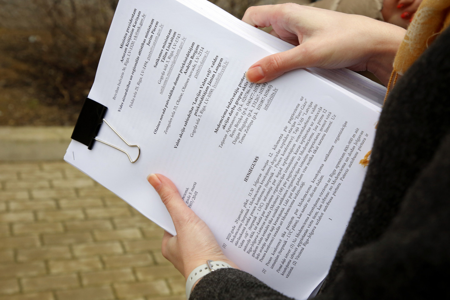 Medemciema iedzīvotāju protesta akcijas darba grupas pārstāvji iesniedz Ministru prezidenta birojā iesniegumu par, viņuprāt, labāku Medemciema krustojuma risinājumu kopā ar 5300 parakstiem.