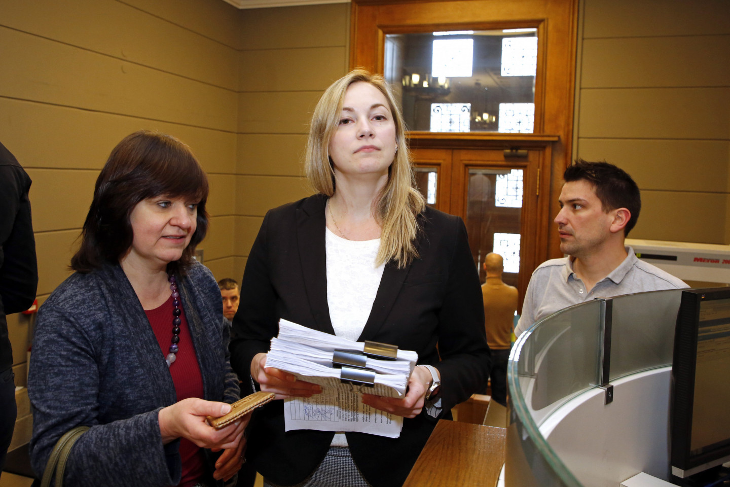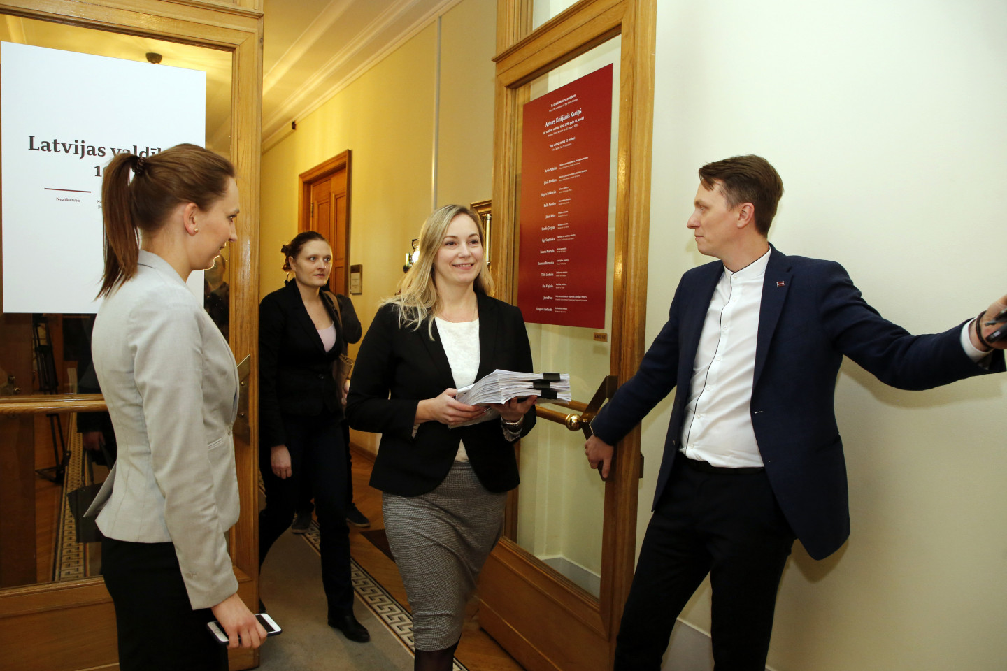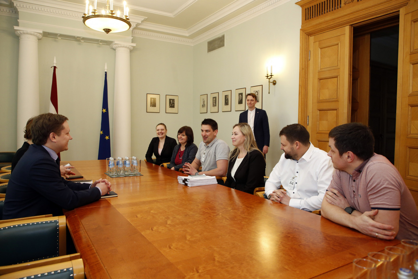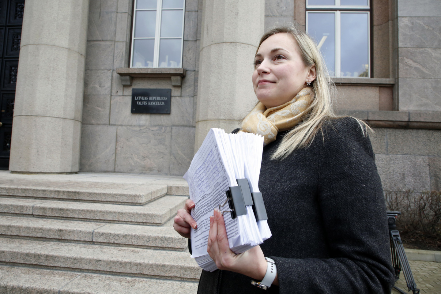 Medemciema iedzīvotāju protesta akcijas darba grupas pārstāvji iesniedz Ministru prezidenta birojā iesniegumu par, viņuprāt, labāku Medemciema krustojuma risinājumu kopā ar 5300 parakstiem.
