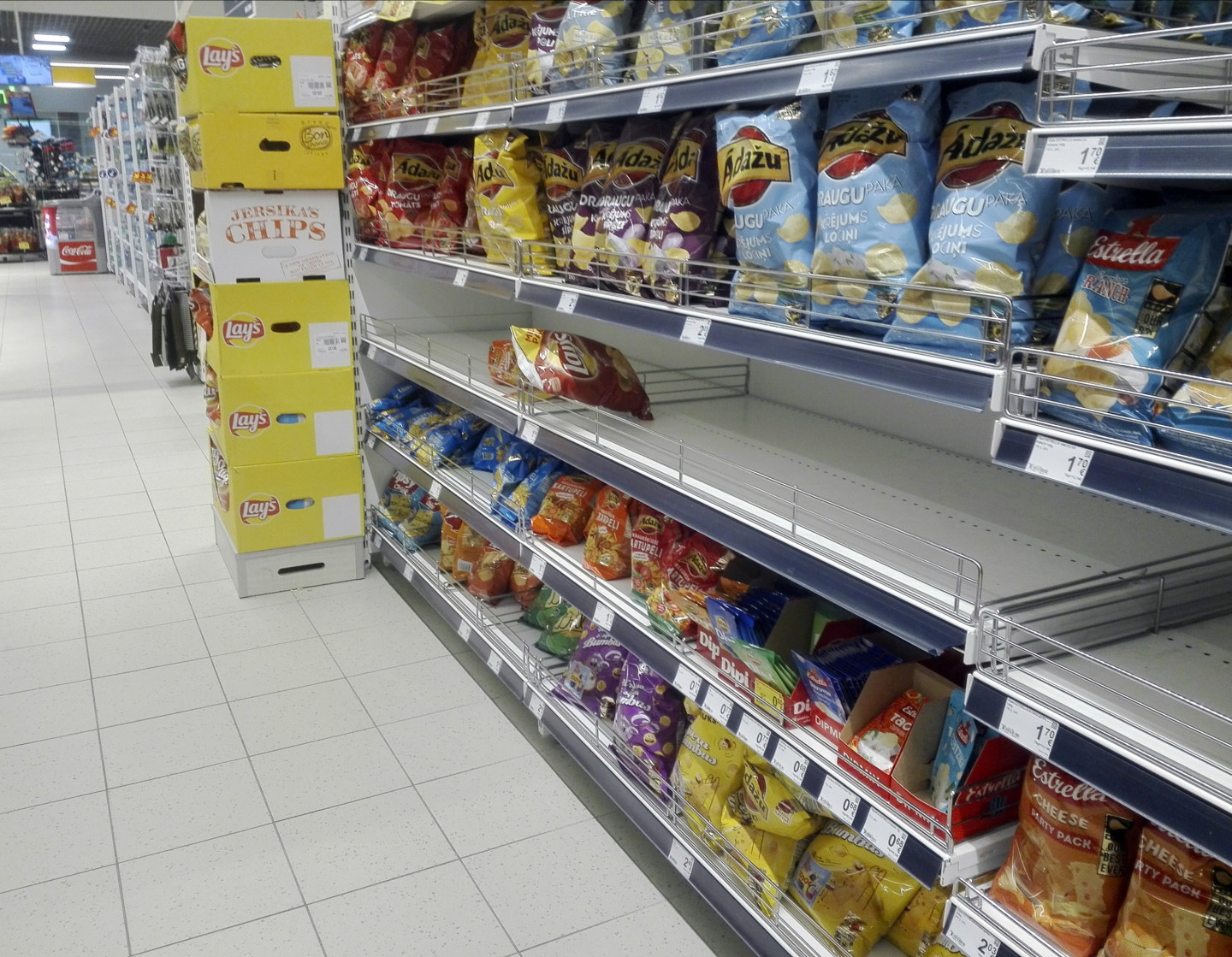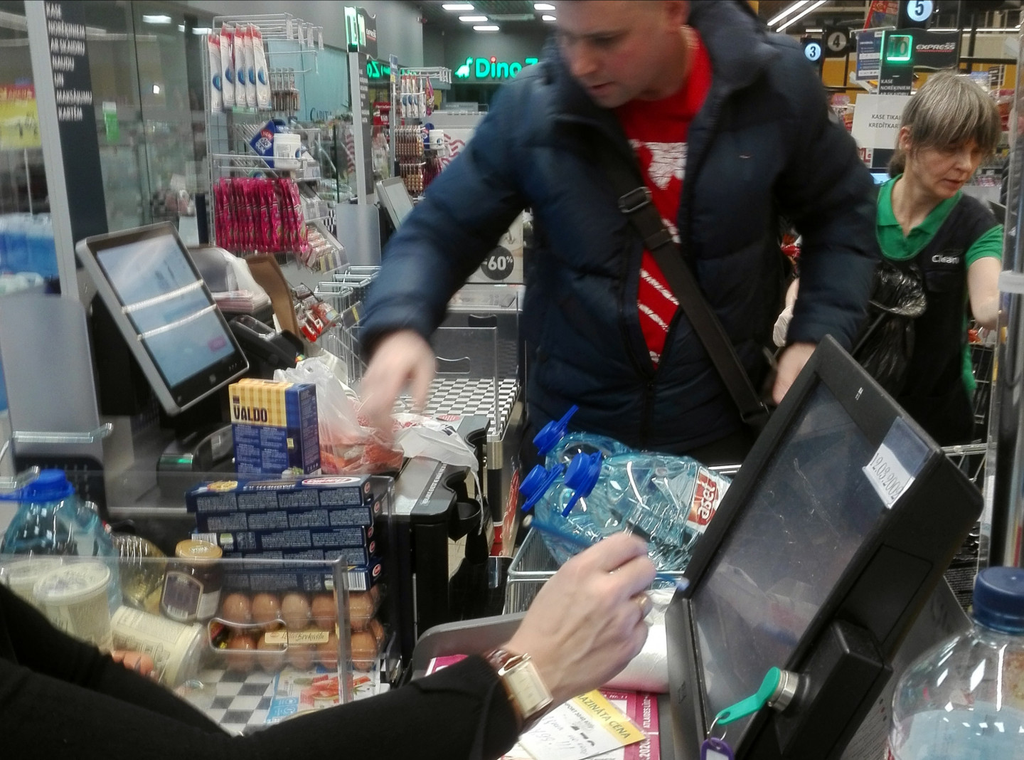 Ceturtdienas vakarā vairāki aculiecinieki publicējuši foto no lielveikaliem Latvijā, kur cilvēki steiguši nopirkt pirmās nepieciešamības preces.
