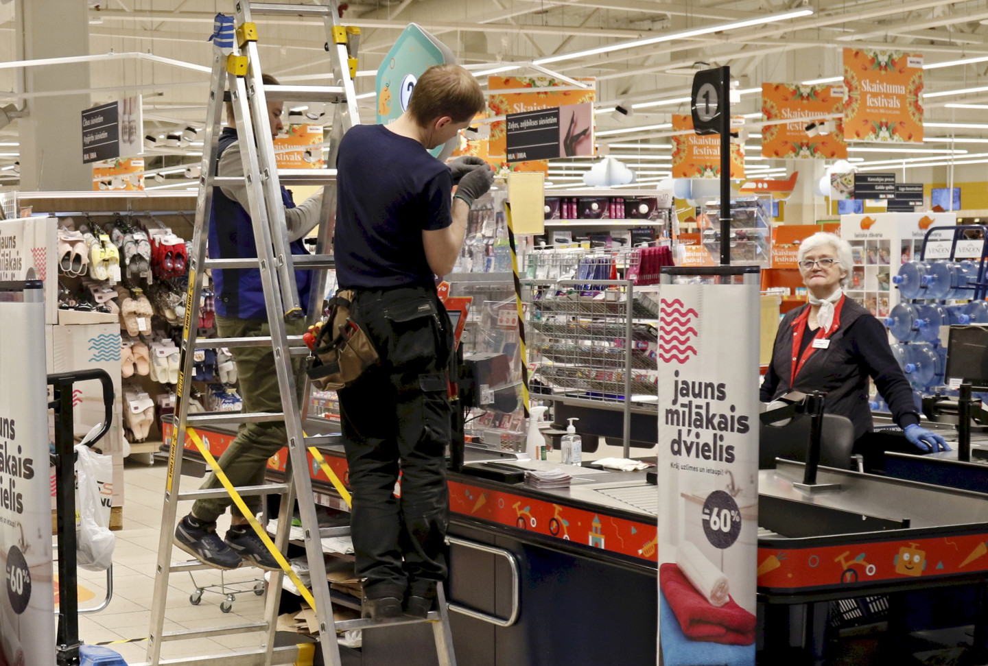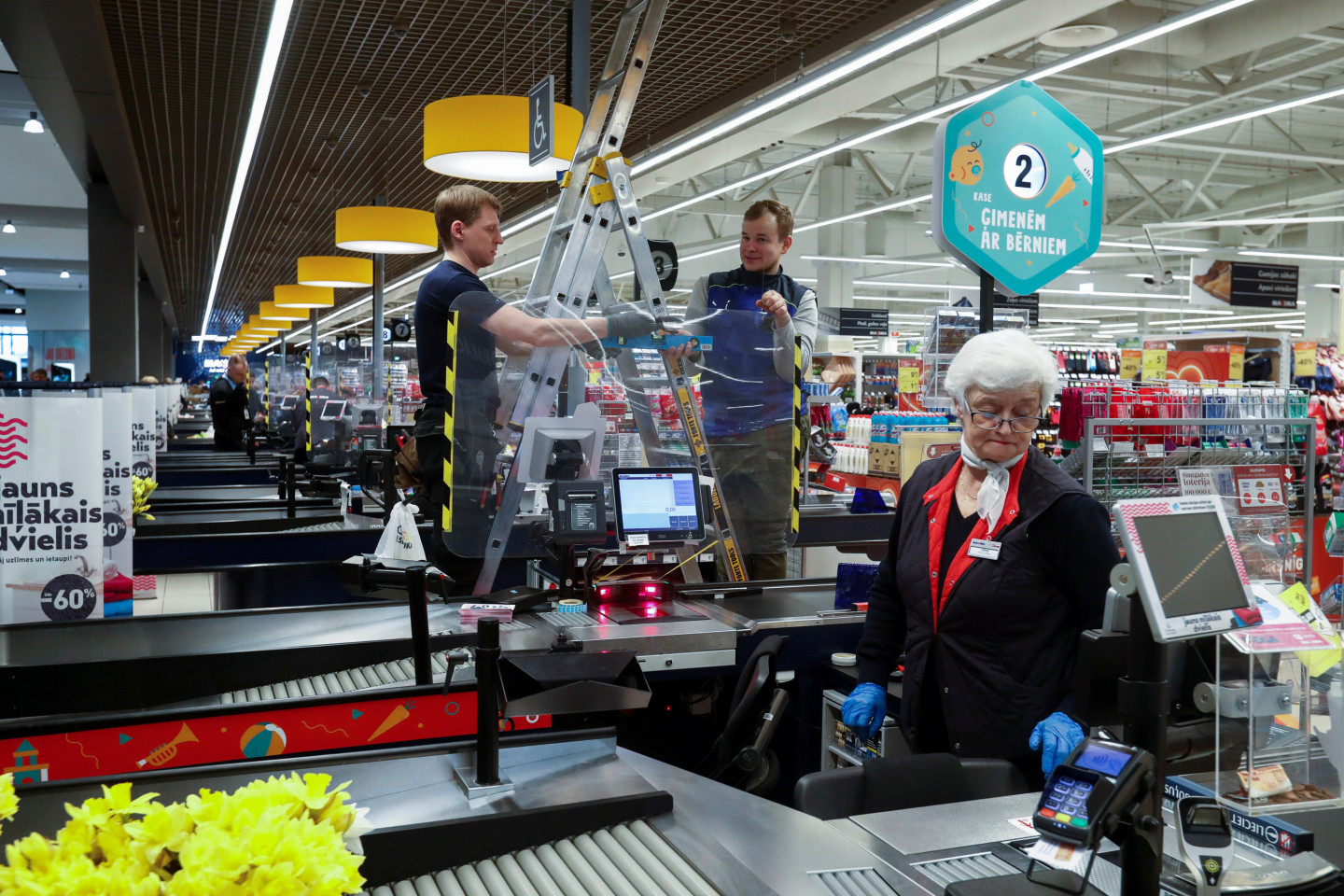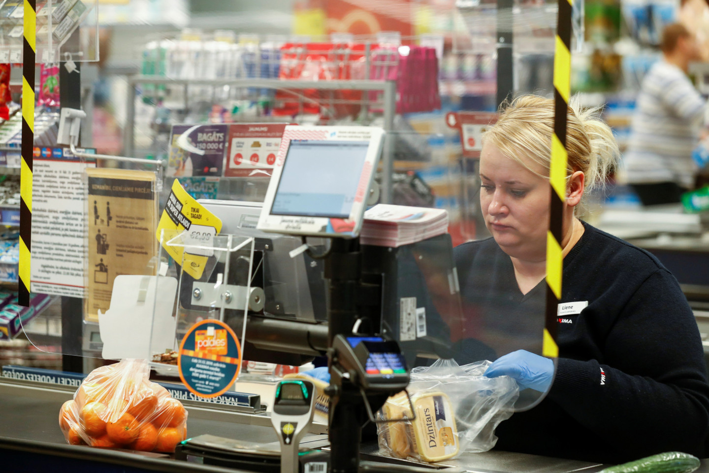 Aizsargbarjeras pārdevējiem, cimdi, 2 metru atstatums un citi ierobežojumi cilvēku un darbinieku drošībai šobrīd ieviesti veikalos Latvijā.