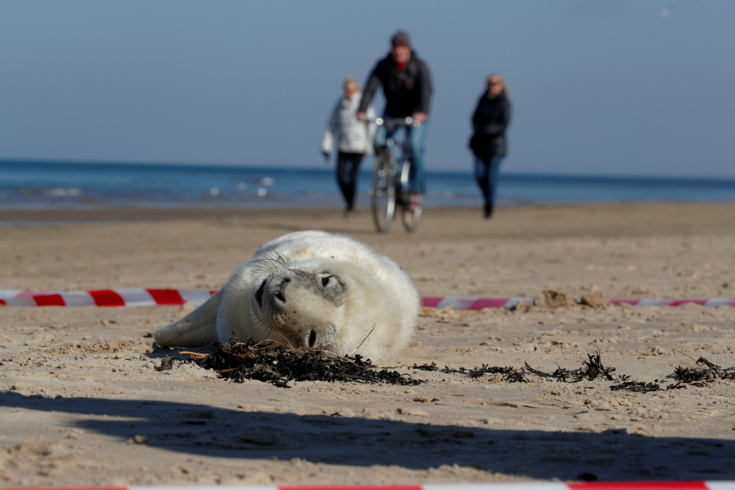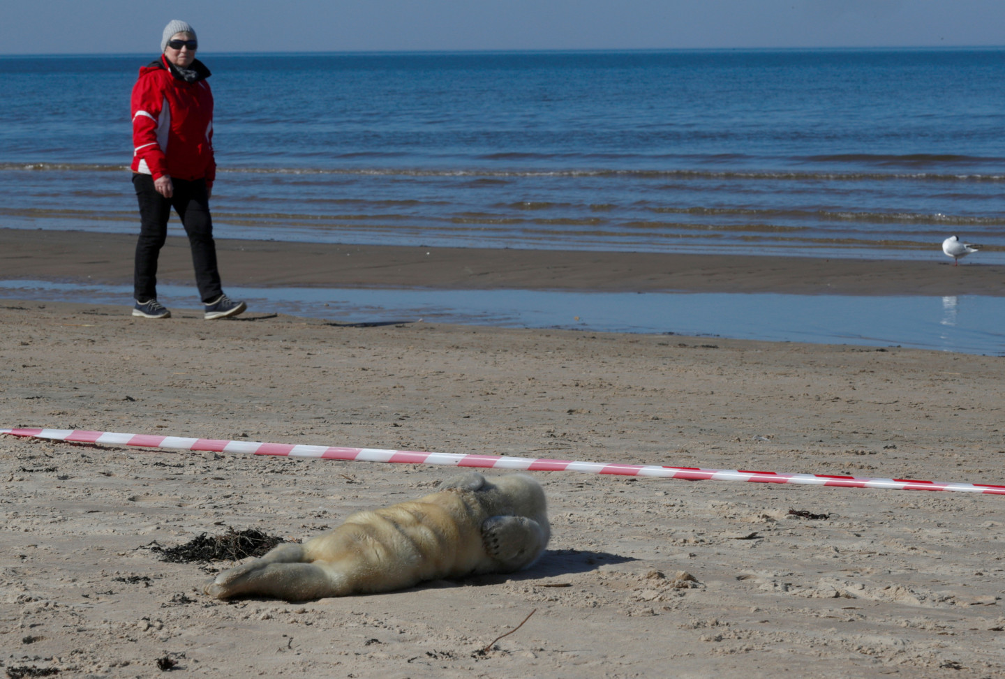 Pludmalē Jūrmalā izskalots ievainots roņu mazulis