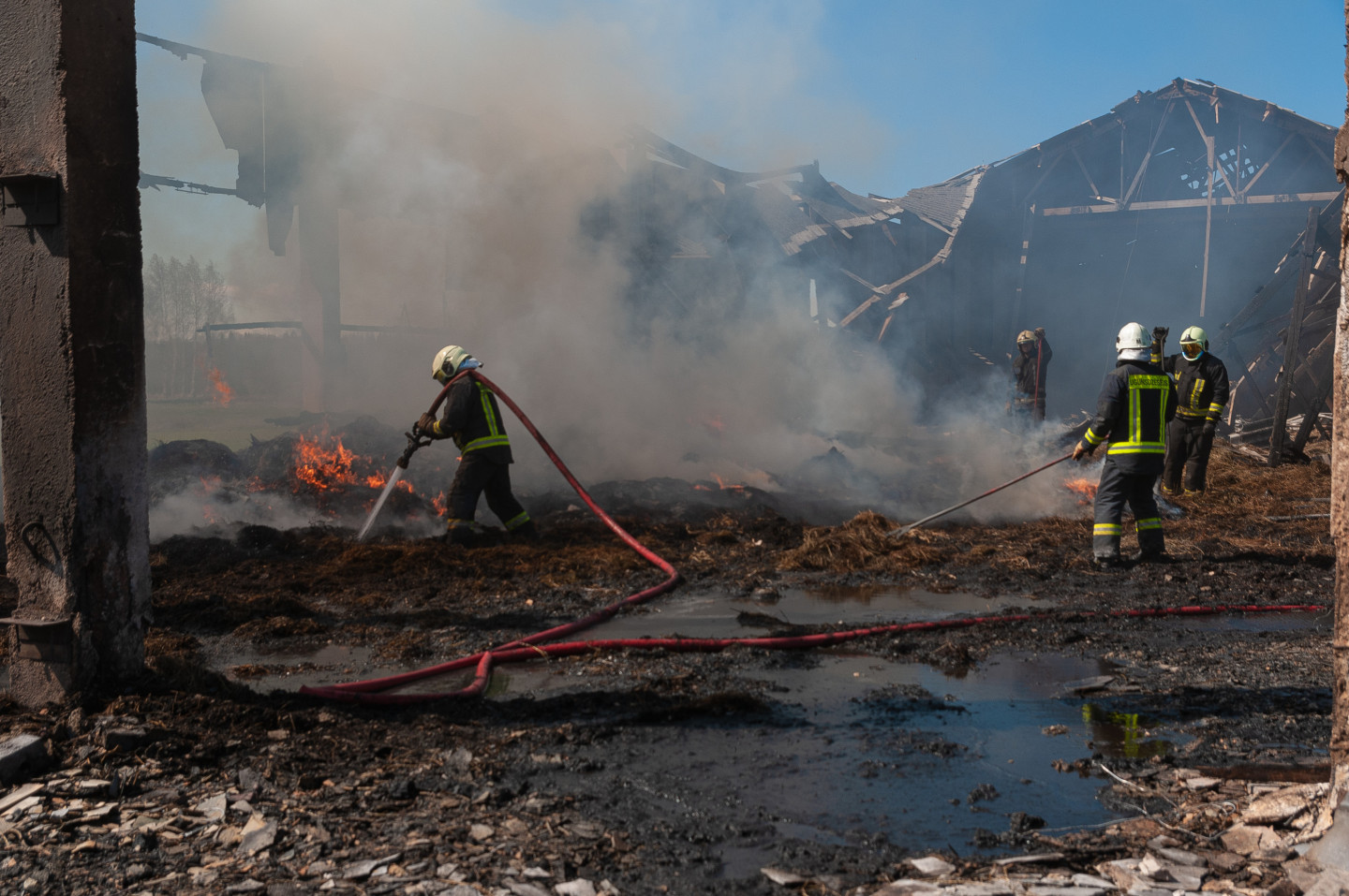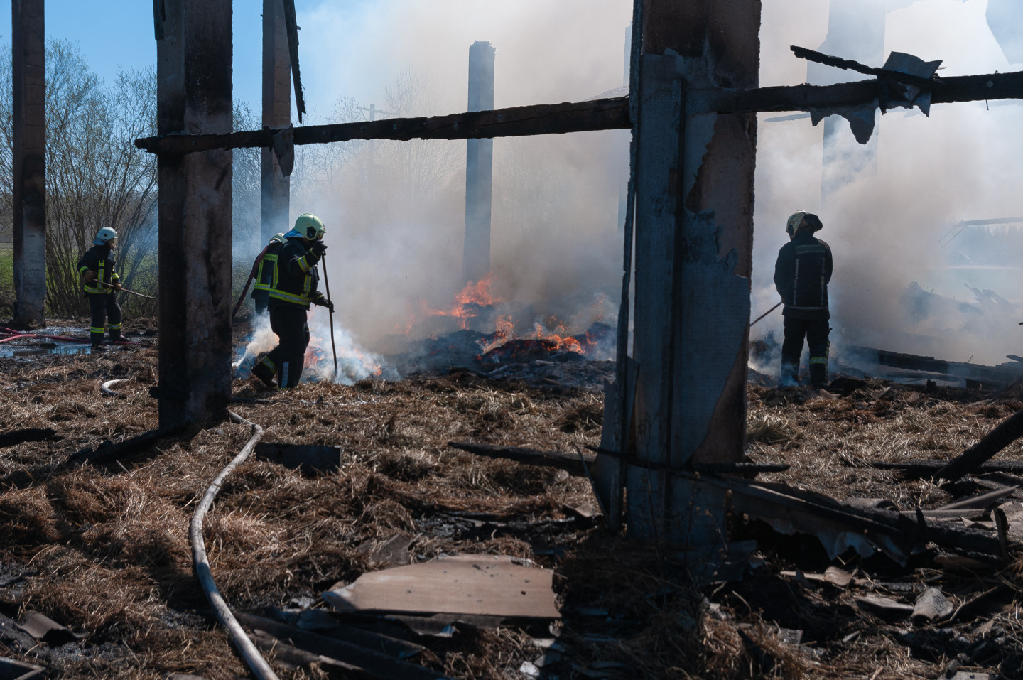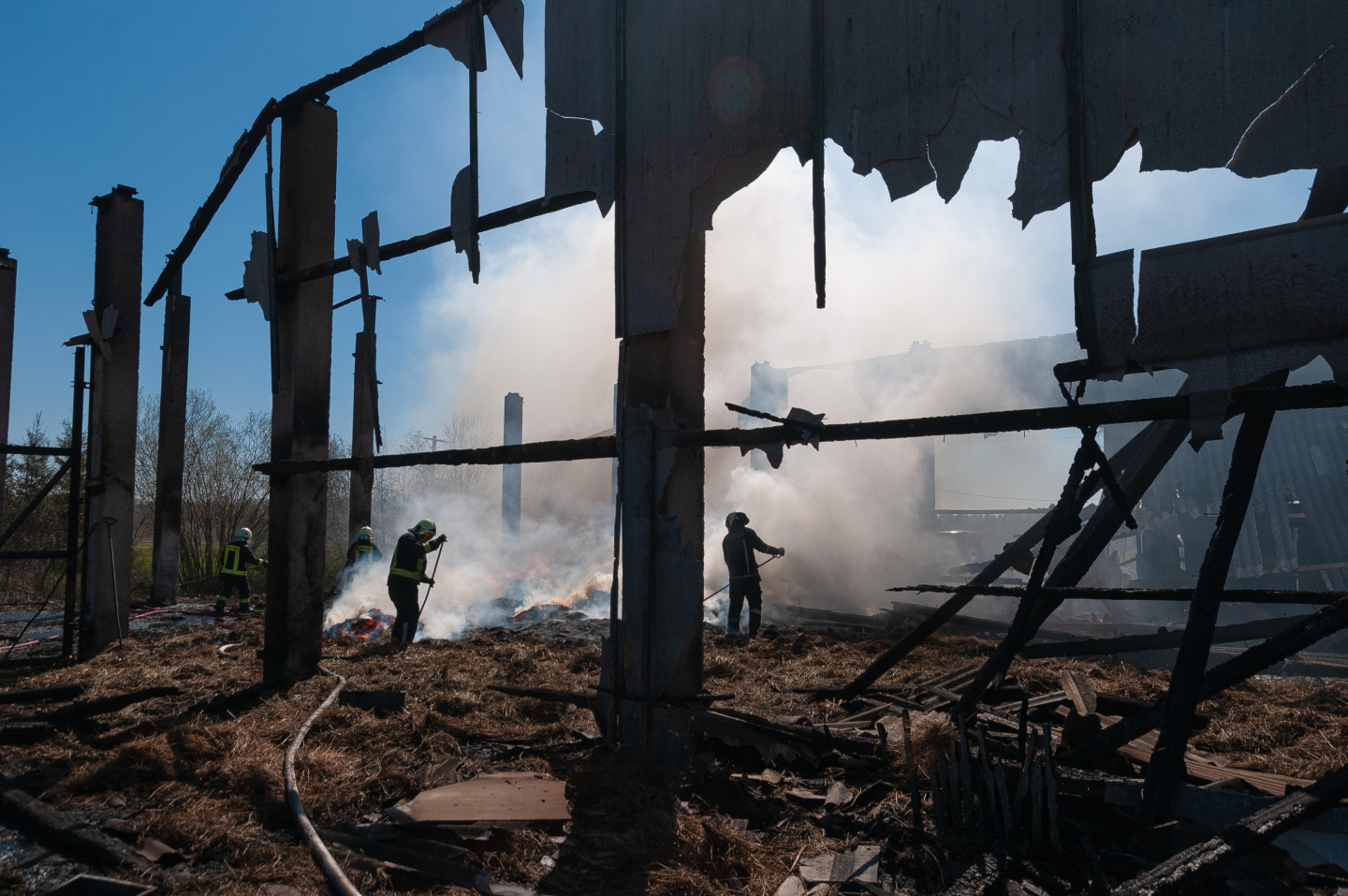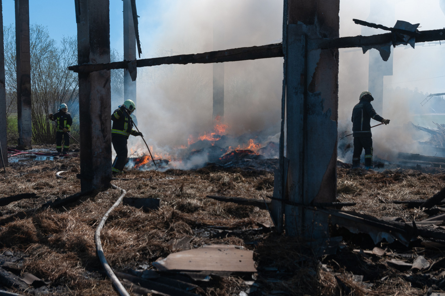 Ugunsdzēsēji likvidē siena šķūņa ugunsgrēka sekas netālu no Vārpas ciema Jelgavas novada Līvbērzes pagasta.