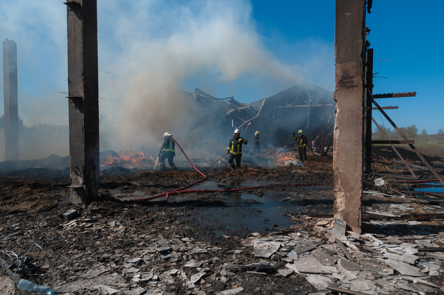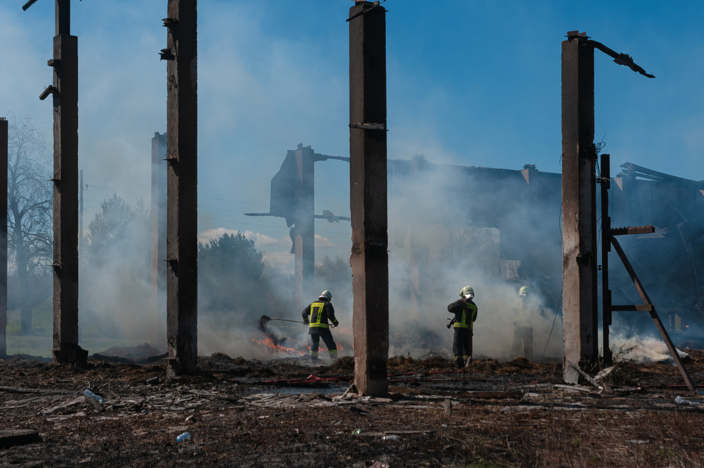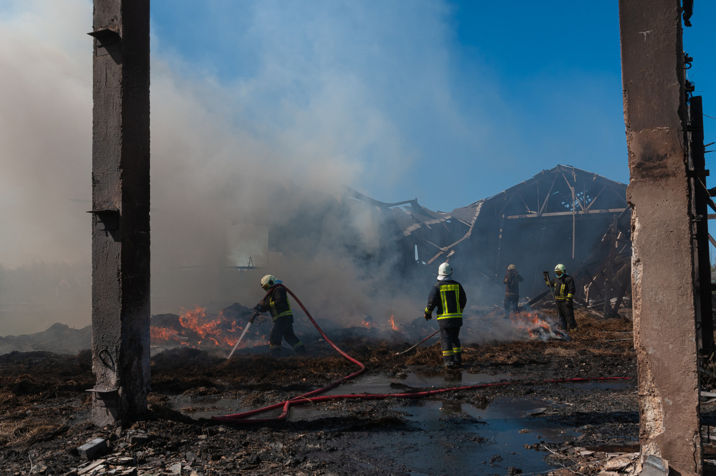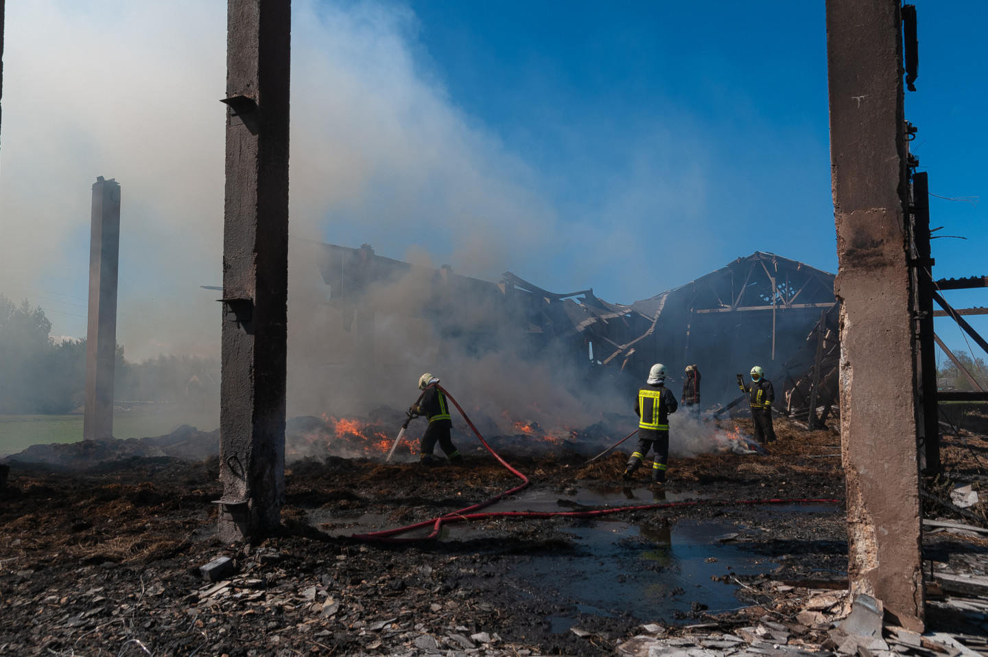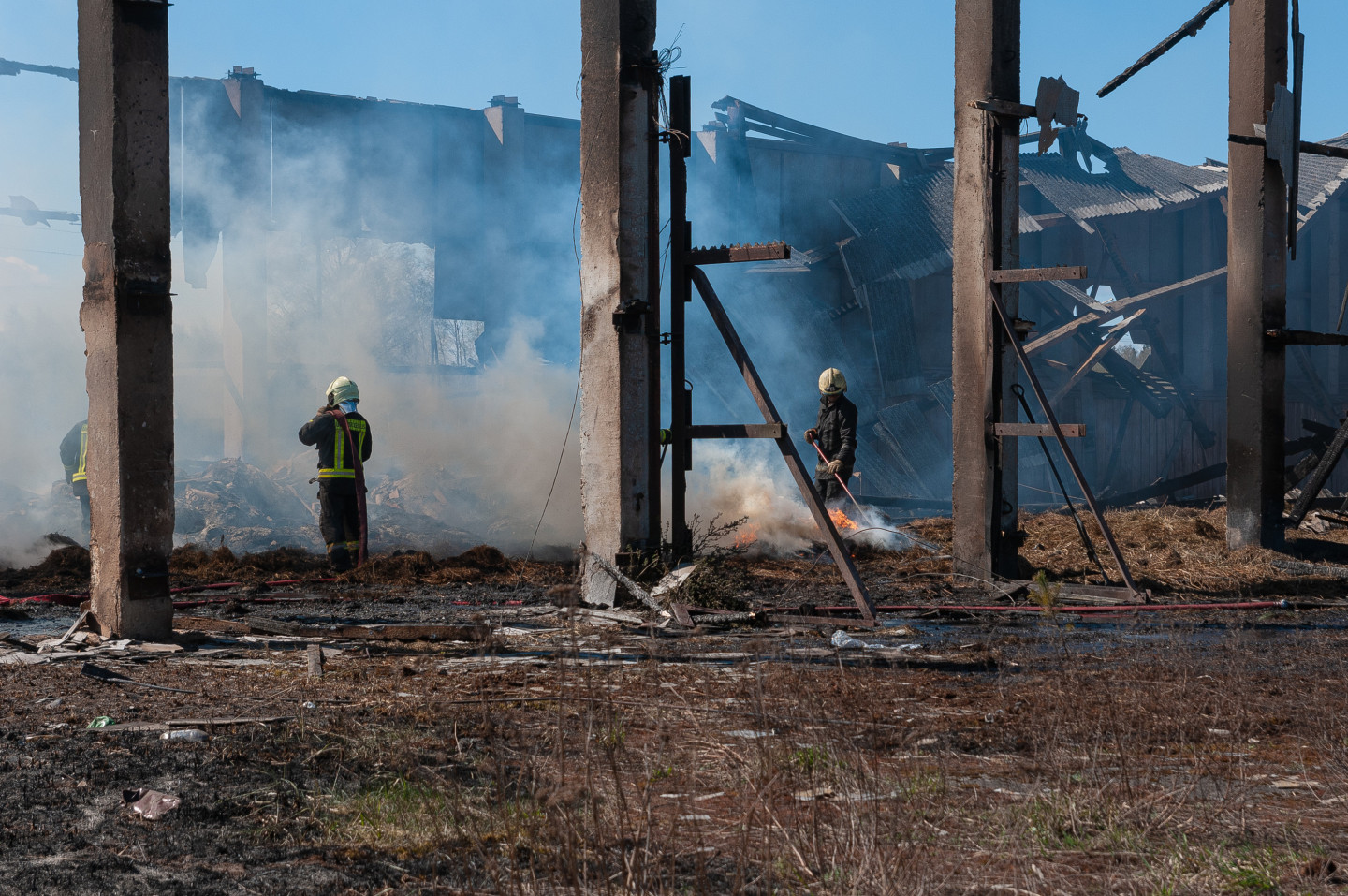 Ugunsdzēsēji likvidē siena šķūņa ugunsgrēka sekas netālu no Vārpas ciema Jelgavas novada Līvbērzes pagasta.