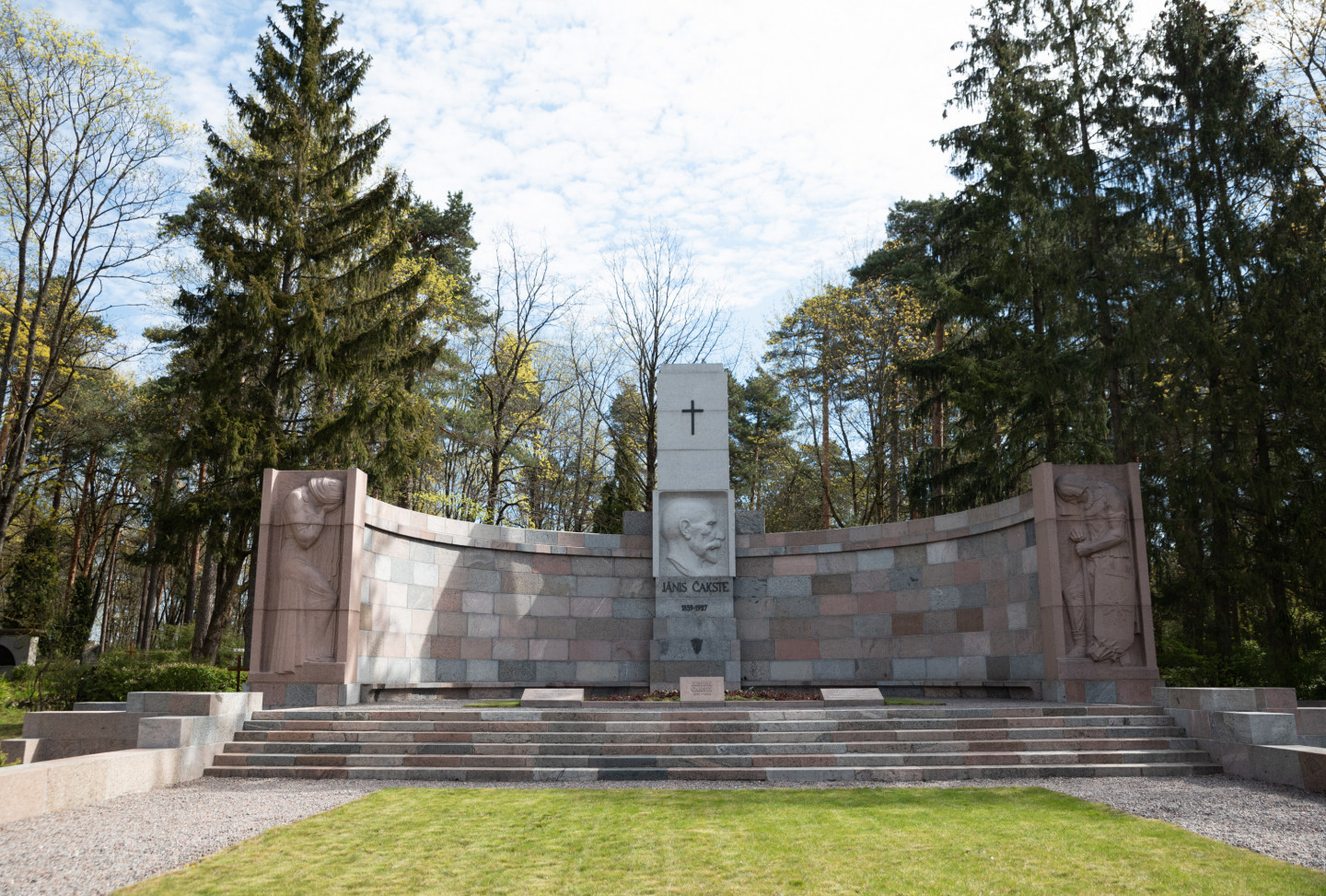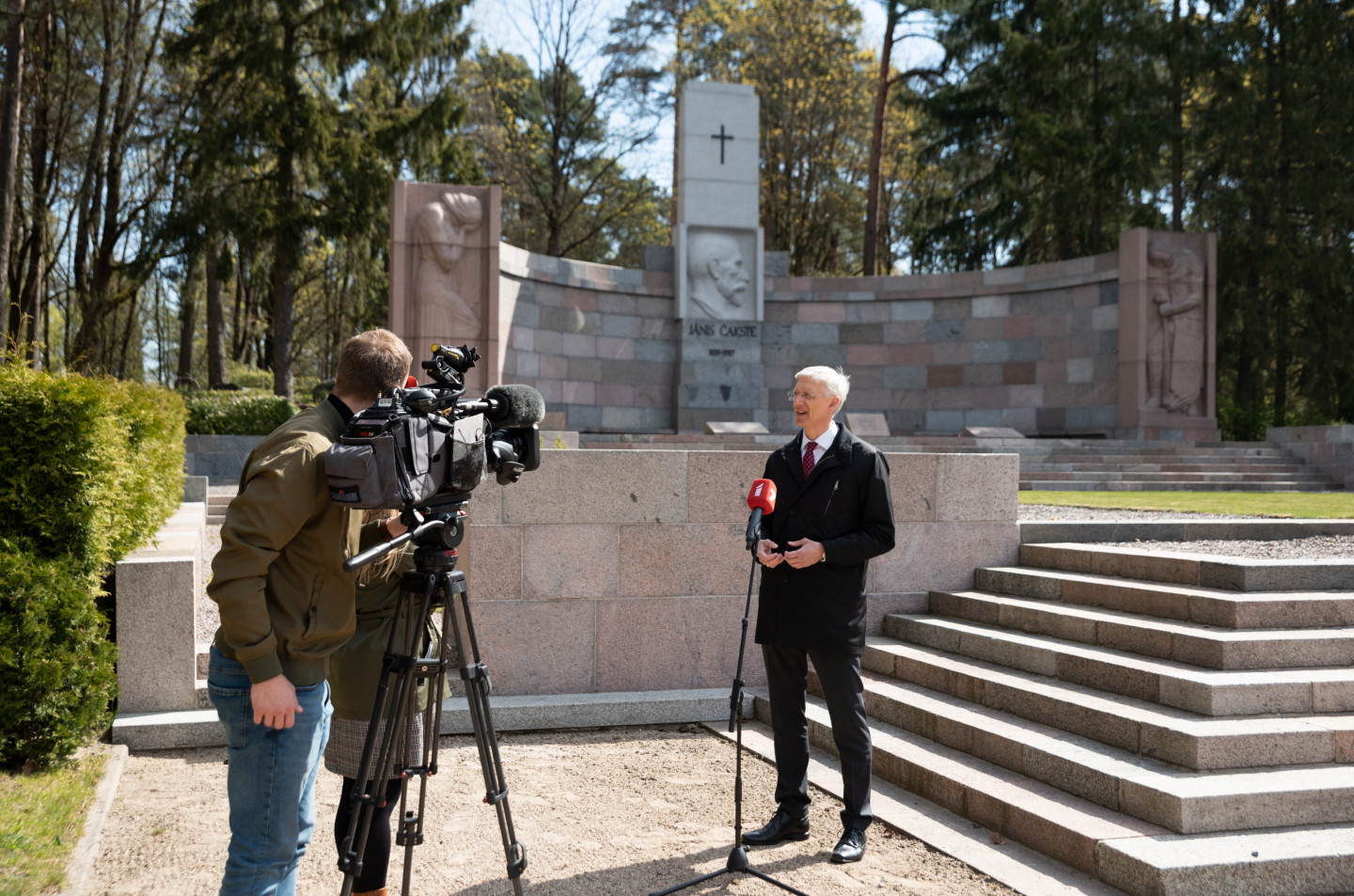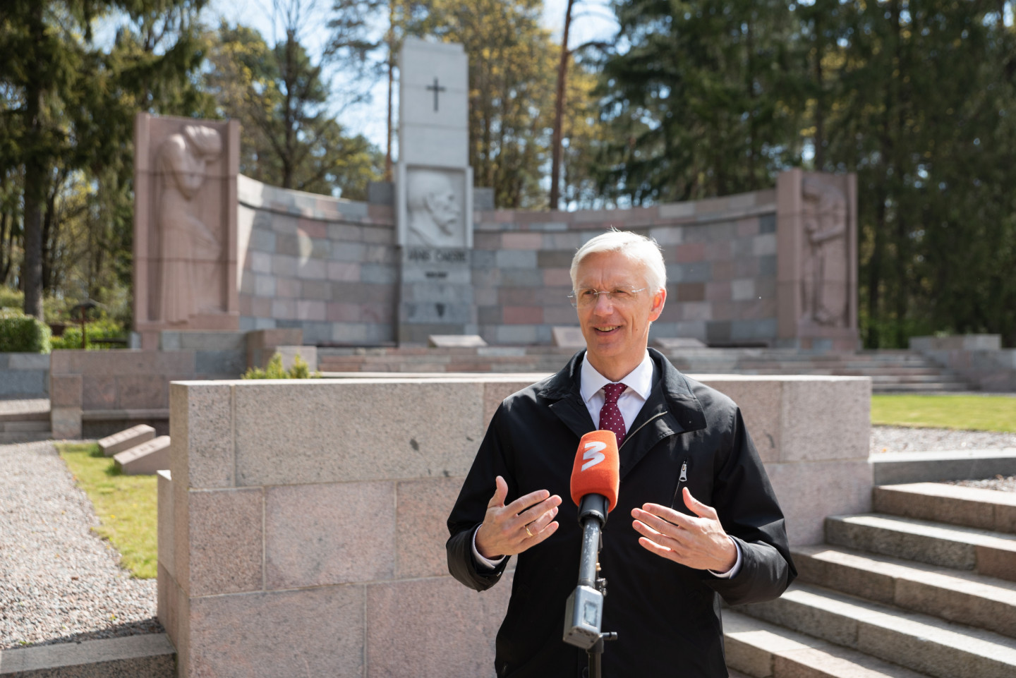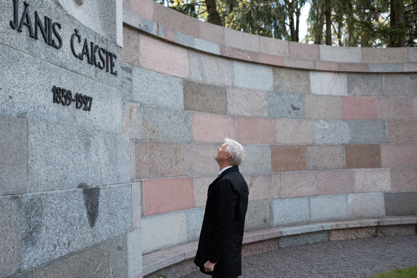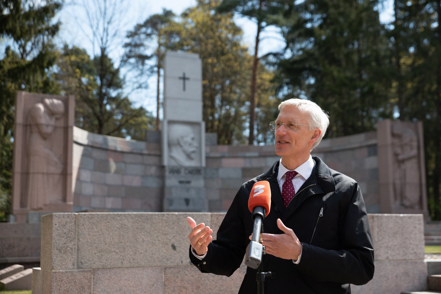 Ministru prezidents Krišjānis Kariņš noliek ziedus pie J. Čakstes pieminekļa Meža kapos par godu Latvijas Republikas Satversmes sapulces sasaukšanas dienai Darba svētki