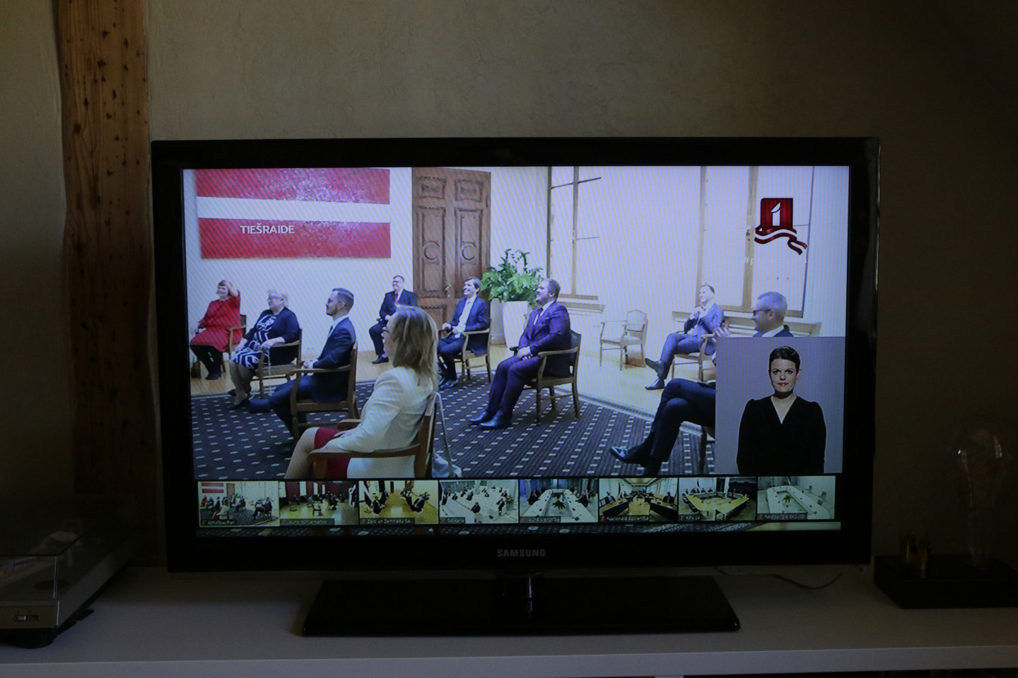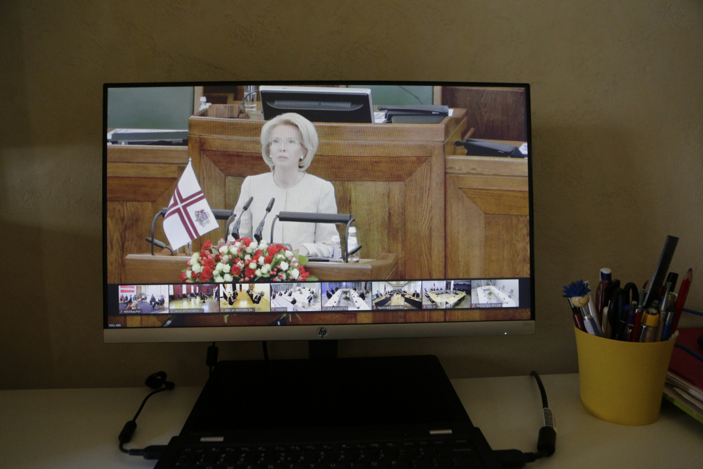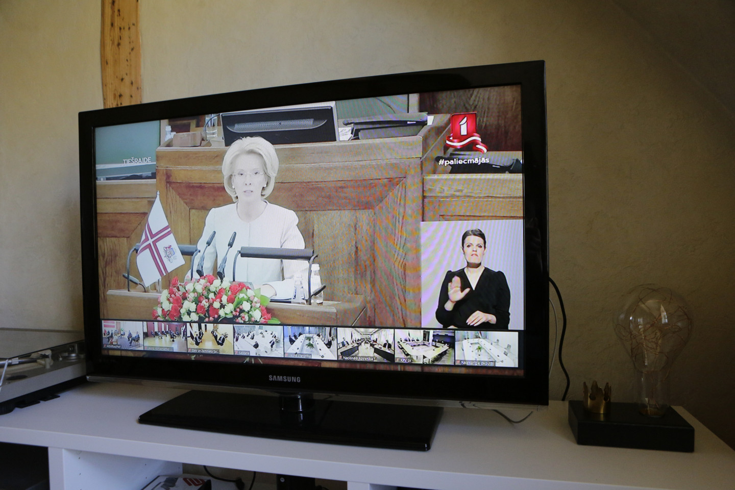 Jau ziņots, ka Latvijas Republikas Neatkarības atjaunošanas dienā, Saeima attālināti sanāca uz svinīgo sēdi. Ievērojot nepieciešamību ievērot fizisko distanci, 4.maija svinīgā Saeimas sēde norisinājās videokonferences formātā, deputātiem uzturoties vairākās atsevišķās parlamenta telpās.