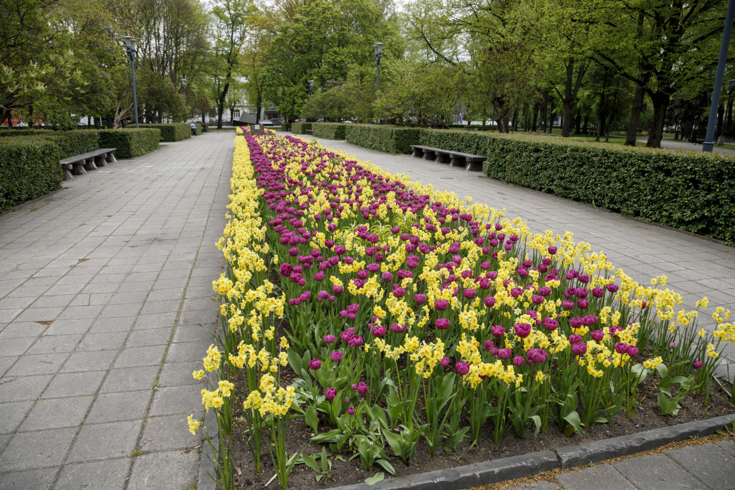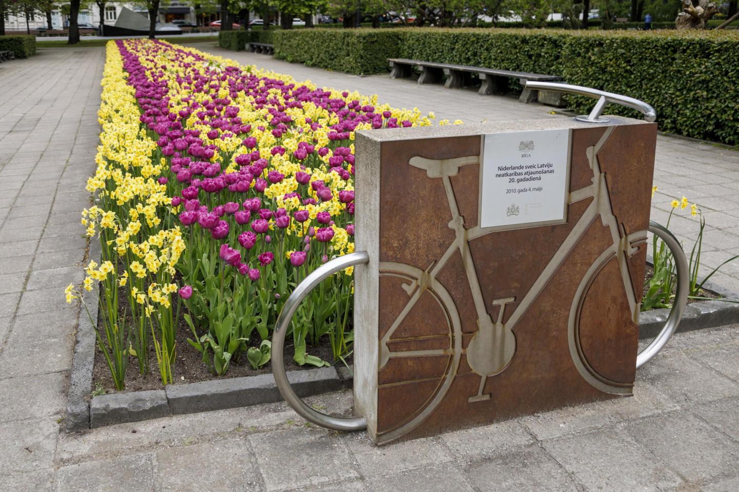 Nīderlandes vēstniecība un Amsterdamas municipalitāte Latvijas neatkarības atjaunošanas 20. gadadienā dāvina puķu dobi.