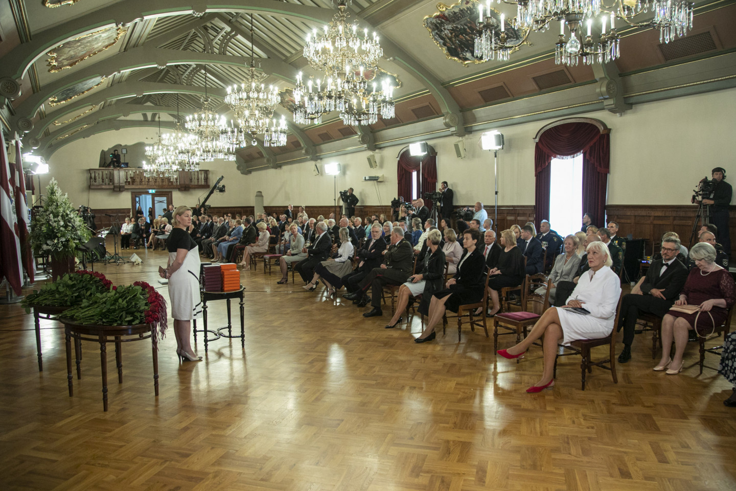 Rīgas pilī notika svinīga ceremonija, kuras laikā Valsts prezidents Egils Levits 67 sabiedrības pārstāvjiem pasniedza augstākos Latvijas valsts apbalvojumus - Triju Zvaigžņu ordeni, Viestura ordeni un Atzinības krustu. Saskaņā ar Valsts prezidenta un Ordeņu kapitula 23.aprīļa lēmumiem par sevišķiem nopelniem Latvijas valsts labā Triju Zvaigžņu ordenis tiks pasniegts 35 personībām, Viestura ordenis - 21, bet Atzinības krusts - 11.
