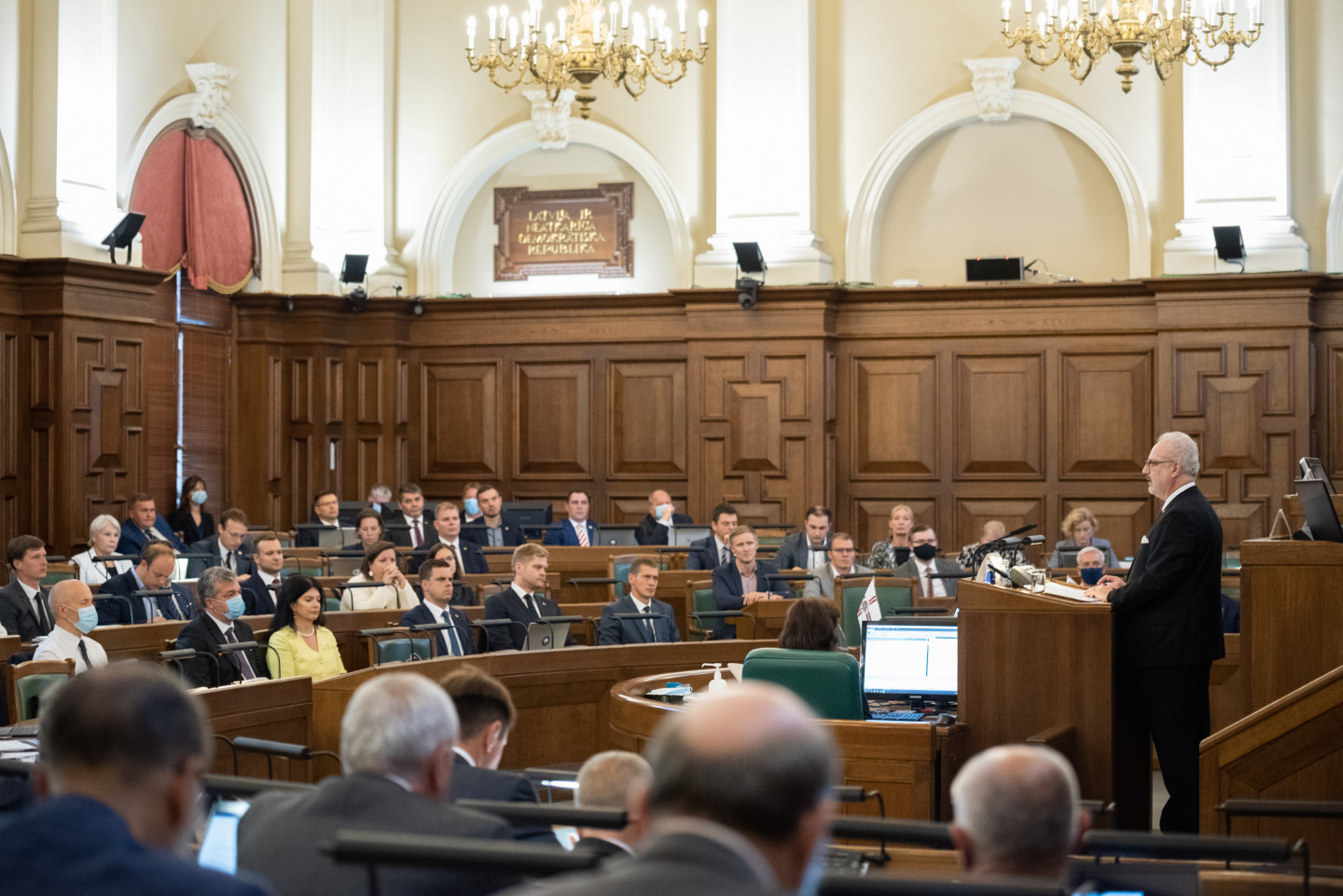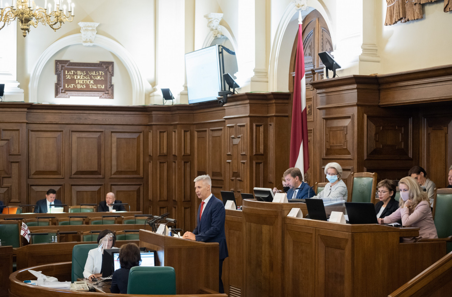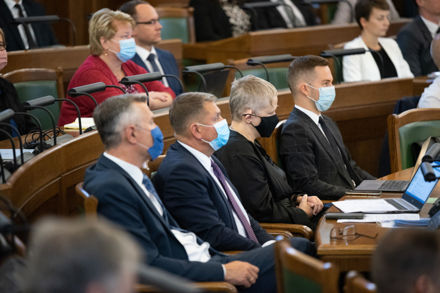 Jau vēstīts, ka šodien notika Saeimas ārkārtas sēde, kas pēc ilgāka pārtraukuma noritēja klātienē. Deputāti uz sēdi pulcējās klātienē Saeimas Sēžu zālē.