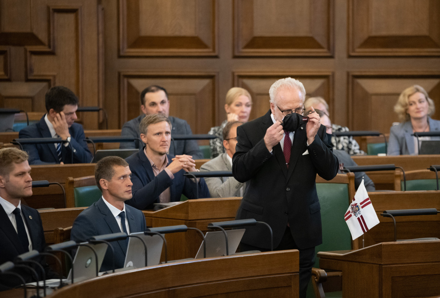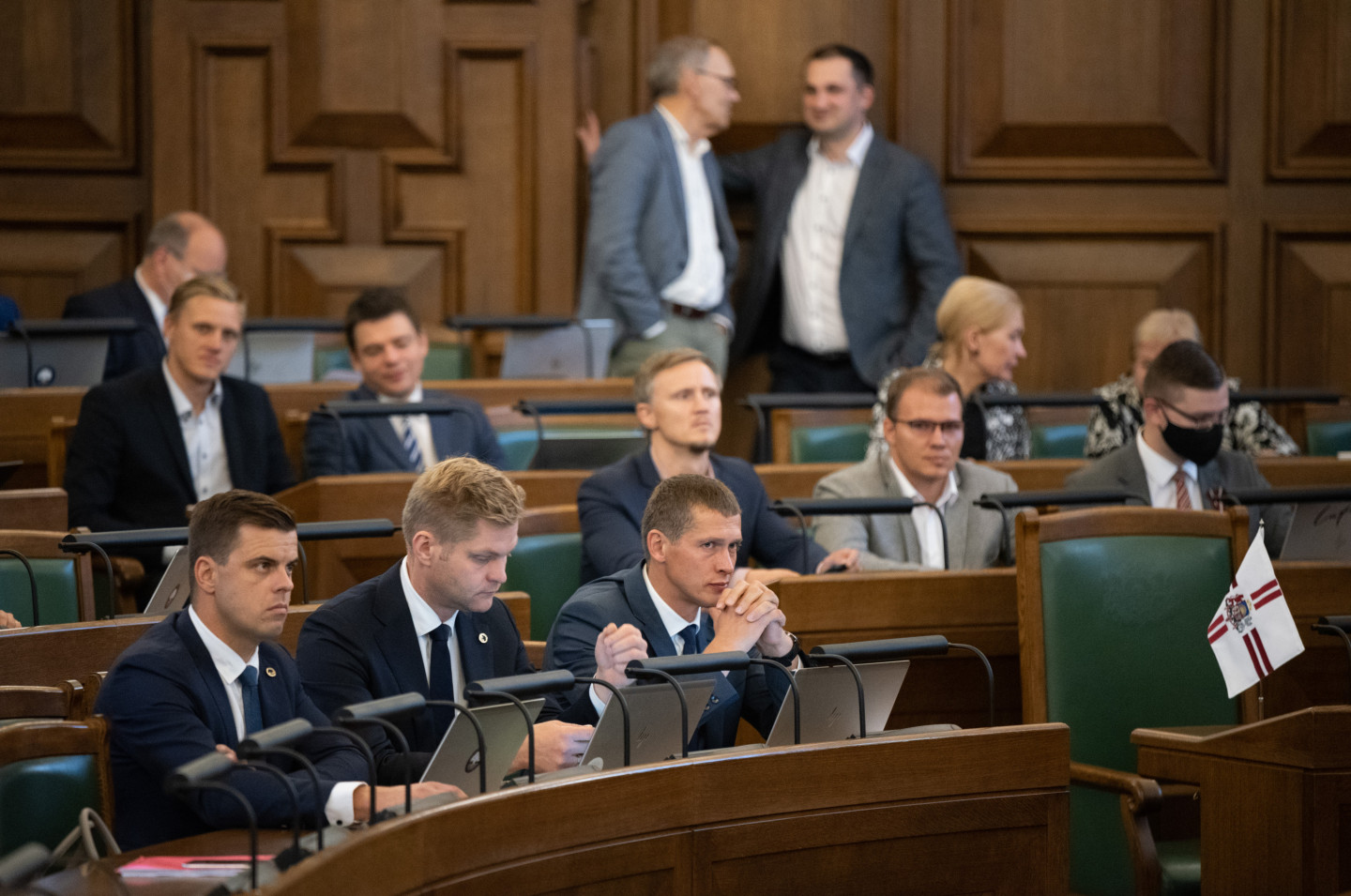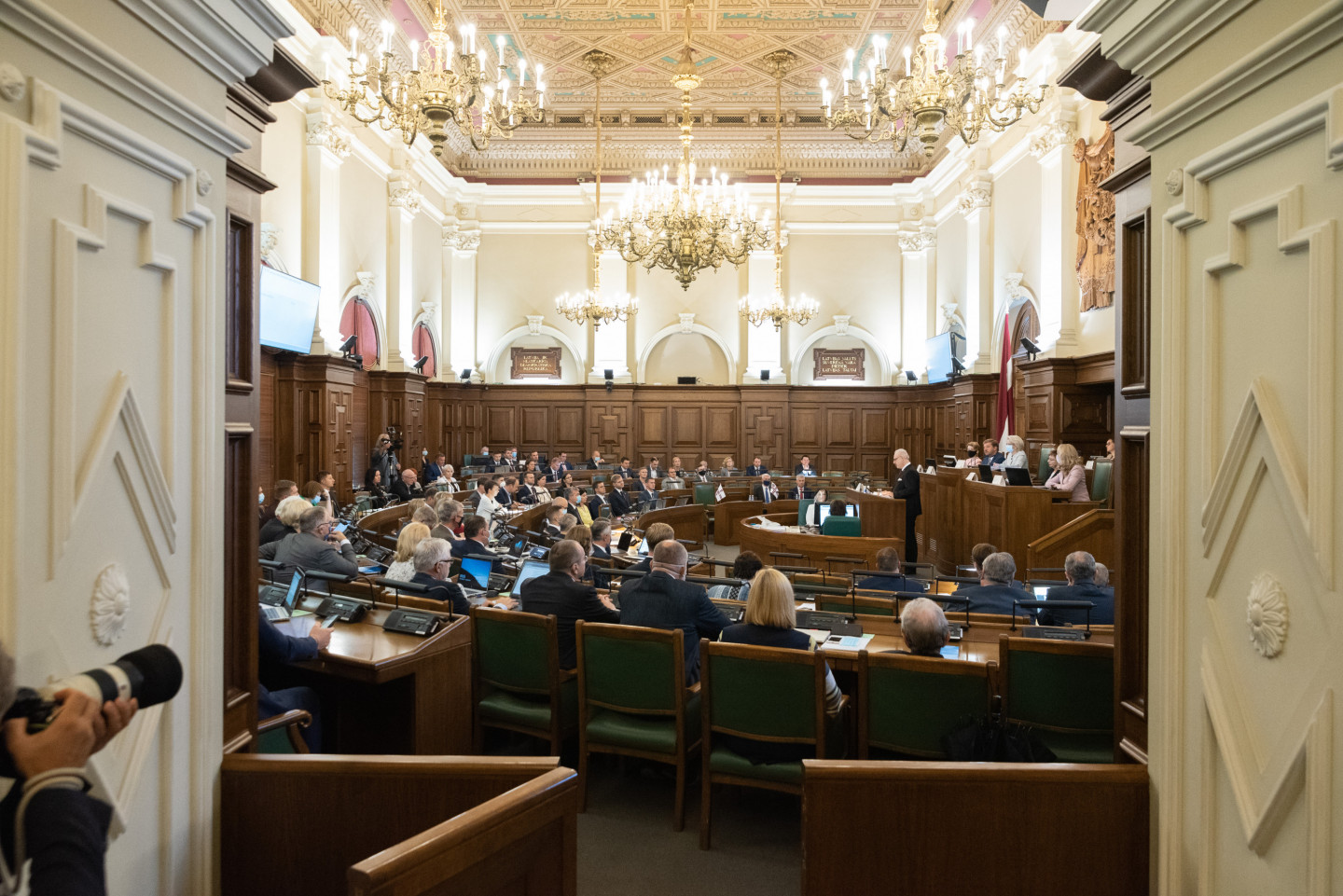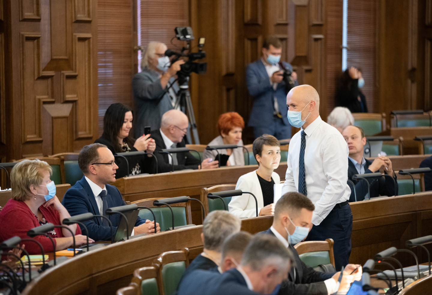 Jau vēstīts, ka šodien notika Saeimas ārkārtas sēde, kas pēc ilgāka pārtraukuma noritēja klātienē. Deputāti uz sēdi pulcējās klātienē Saeimas Sēžu zālē.