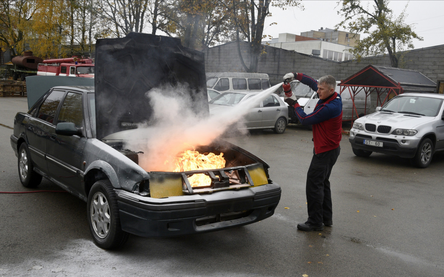 Valsts ugunsdzēsības un glābšanas dienests sadarbībā ar Ugunsdrošības un civilās aizsardzības koledžu rīkoja pasākumu, lai atgādinātu satiksmes dalībniekiem, ko darīt gadījumos, kad aizdegusies automašīna, kā arī par pareizu rīcību pēc ceļu satiksmes negadījumiem.