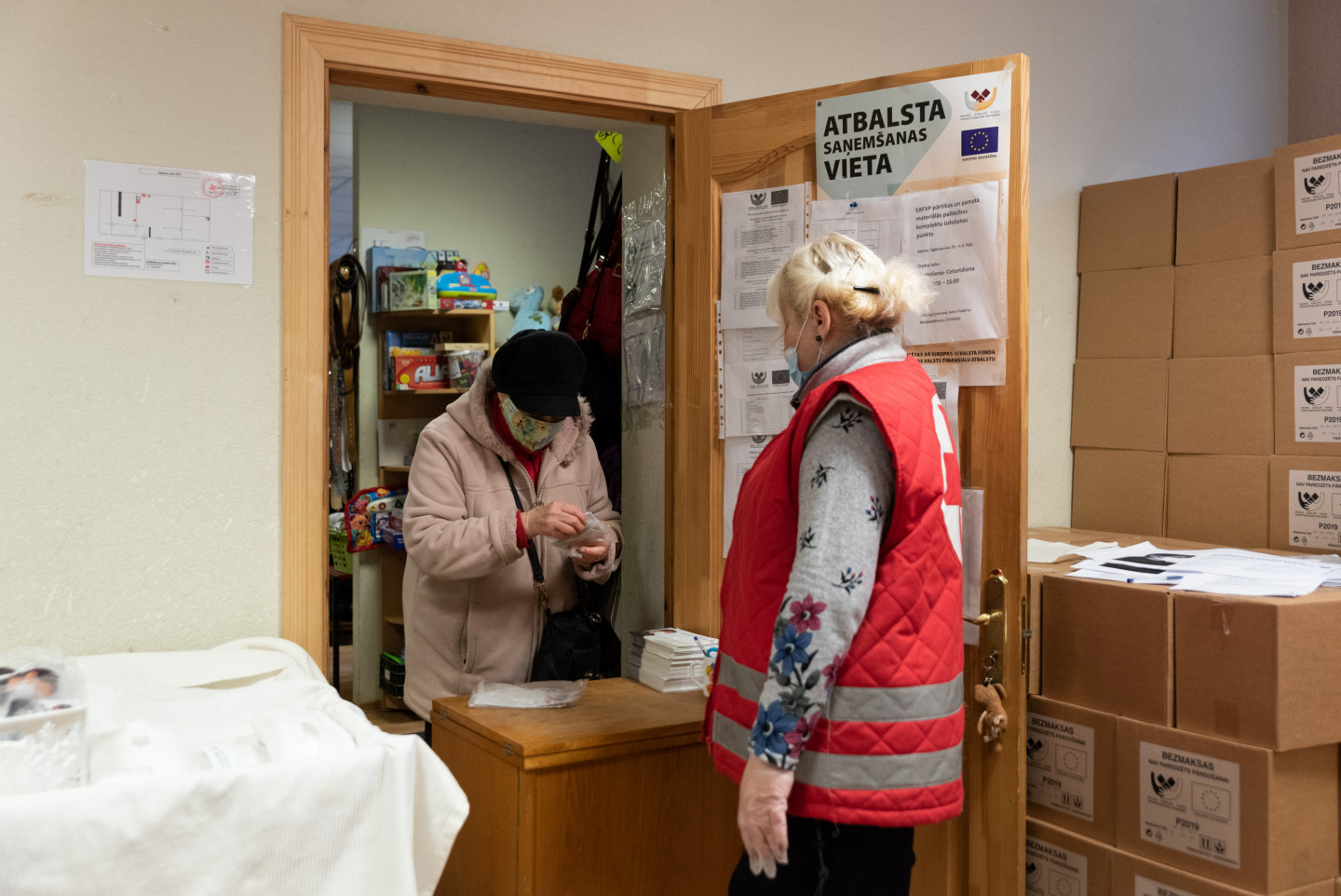Latvijas Sarkanais Krusts izdala Rīgas pašvaldības sociāli mazaizsargātajiem iedzīvotājiem atkārtoti lietojamas sejas maskas.