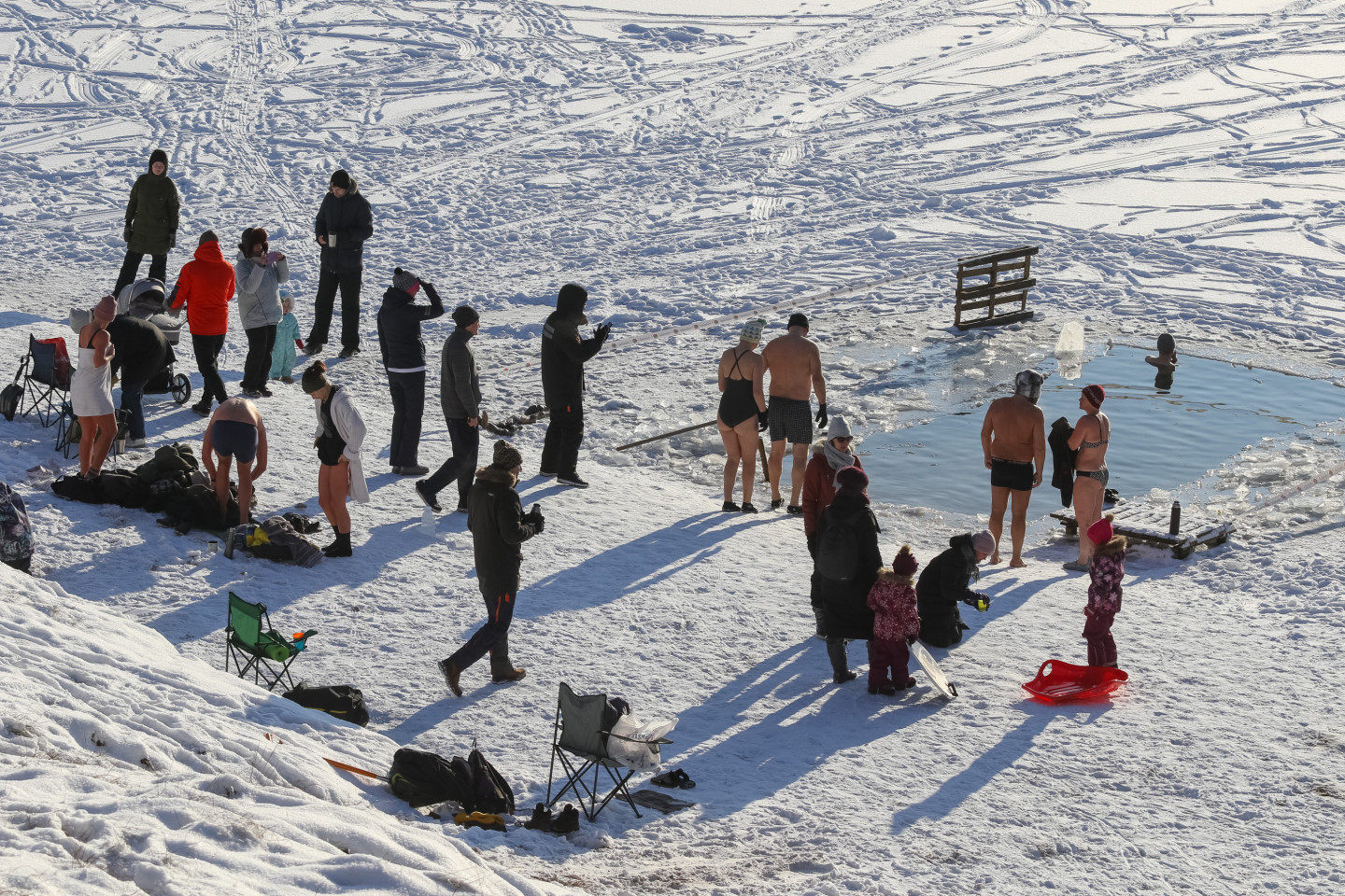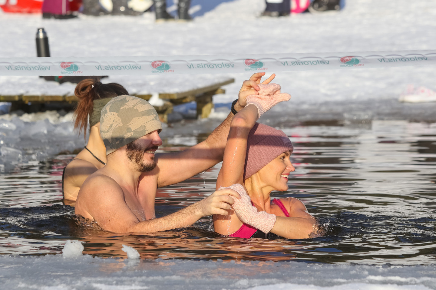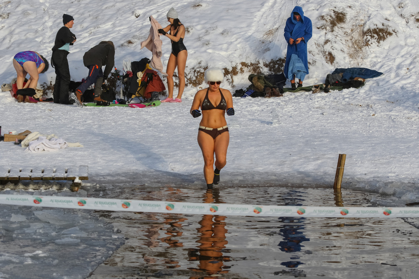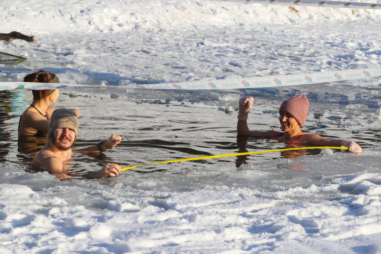 Nedēļas nogalē ziemas peldētāji baudīja atpūtu Beberliņu ūdenskrātuvē Liepājā, kur ledus biezums sasniedzis 9 centimetrus.