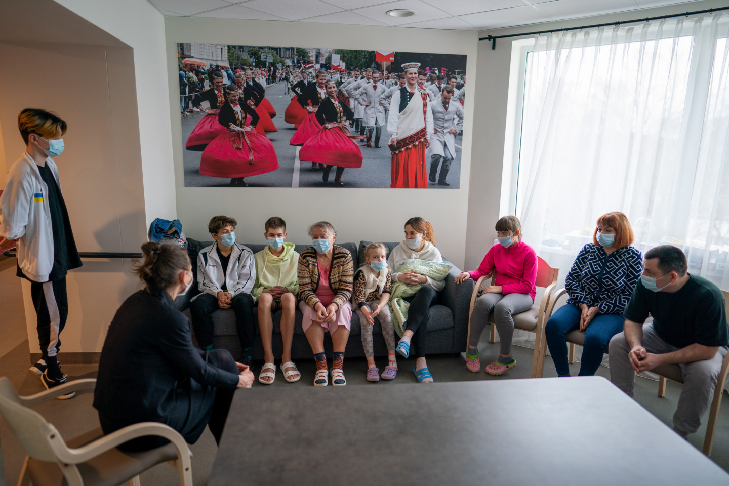 Valsts prezidenta kundze Andra Levite tiekas ar Ukrainas kara bēgļu grupu - 16 cilvēkiem, kuri no kara postītās valsts Latvijā ieradās 2.martā