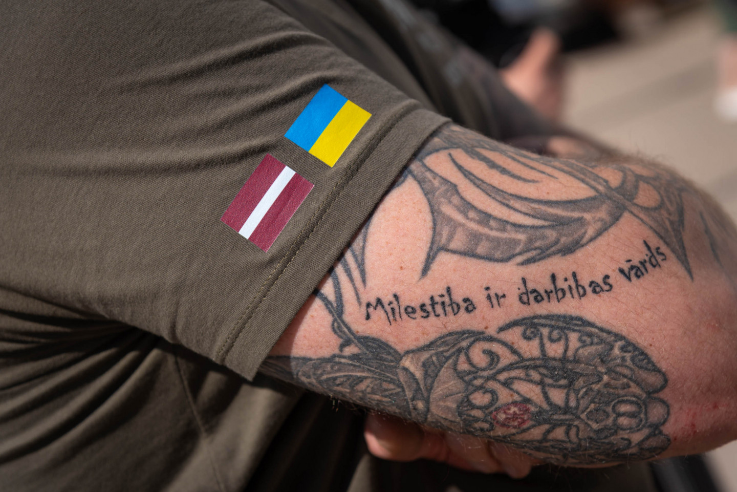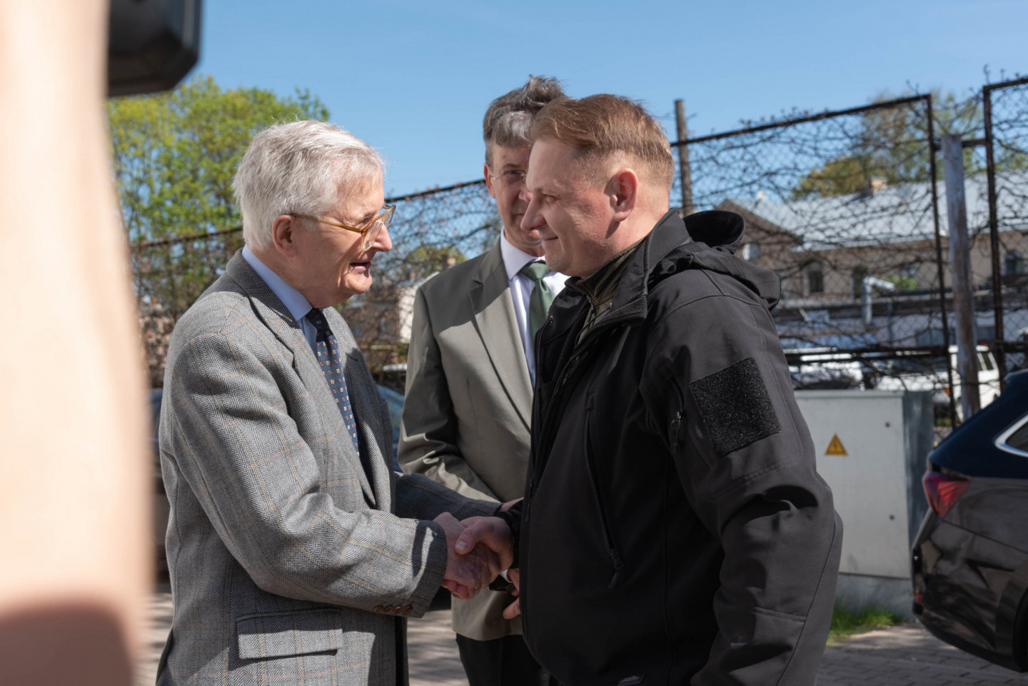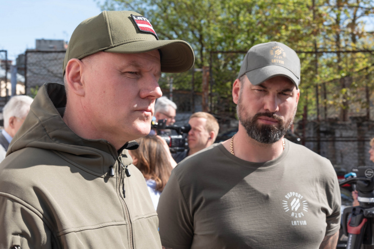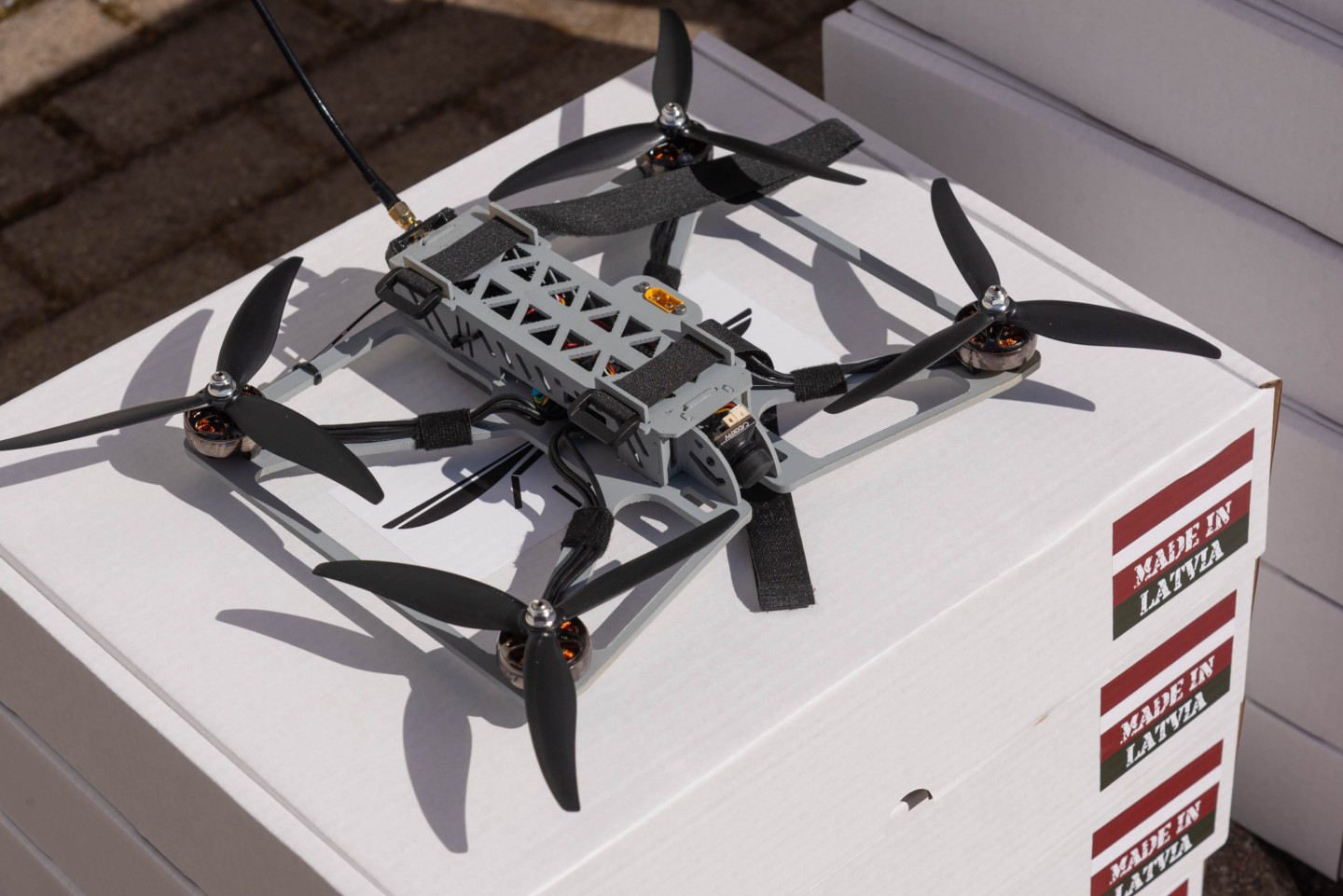 Organizācijas "Ziedot.lv" pagalmā norisinājies pasākums par godu Latvijā ražoto dronu "Irsis" nosūtīšanai uz Ukrainu.
