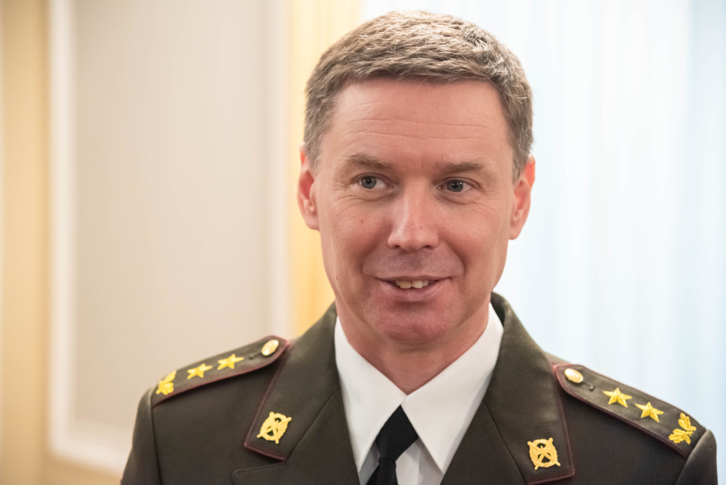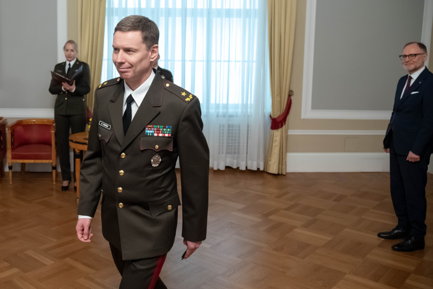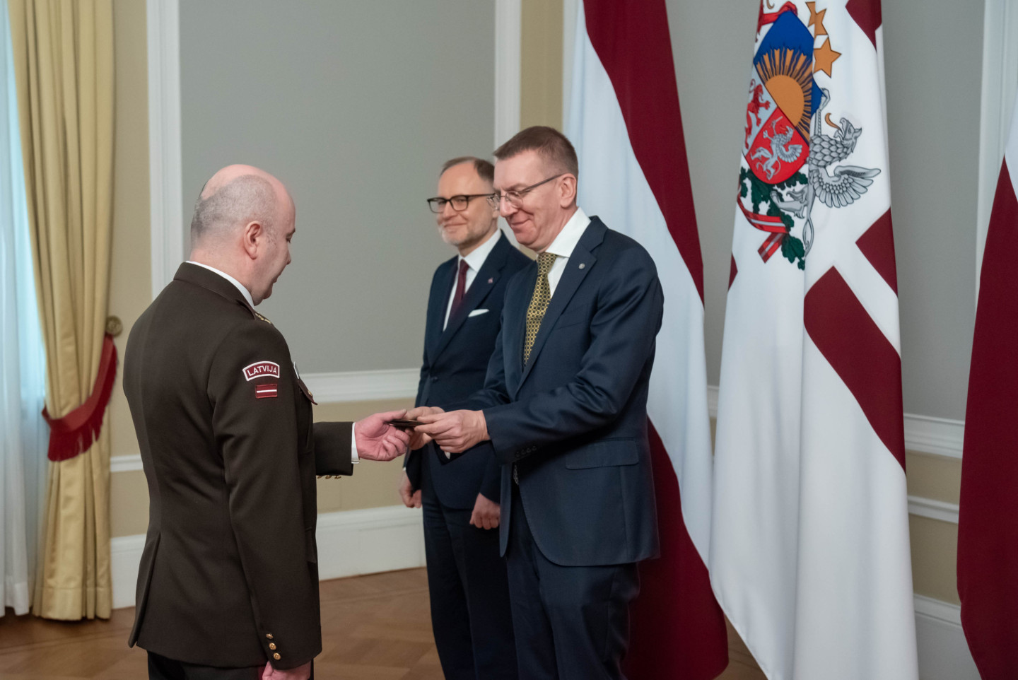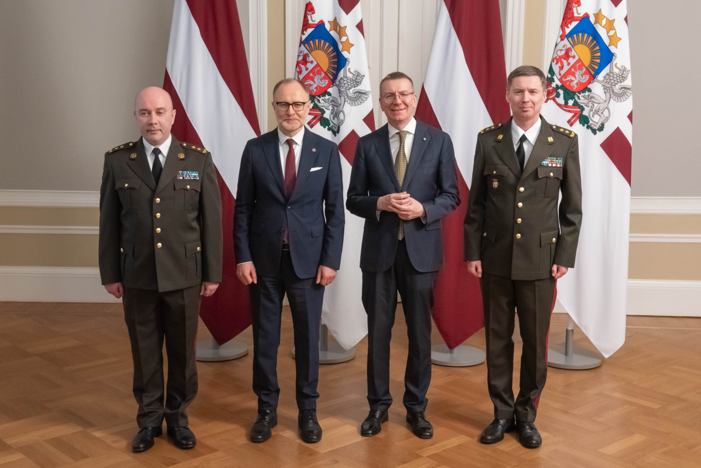 Rīgas pilī šodien norisinājās svinīgs pasākums, kura ietvaros Valsts prezidents Edgars Rinkēvičs pasniedza ģenerālmajora dienesta pakāpi NBS ģenerālim un NBS Apvienotā štāba priekšniekam brigādes ģenerālim.